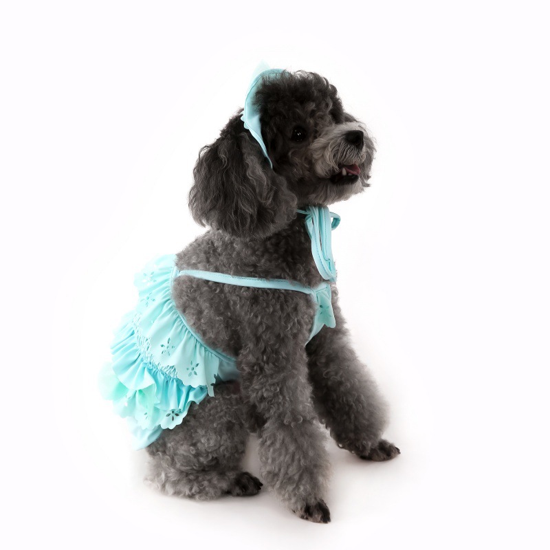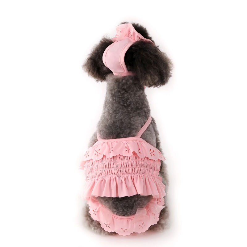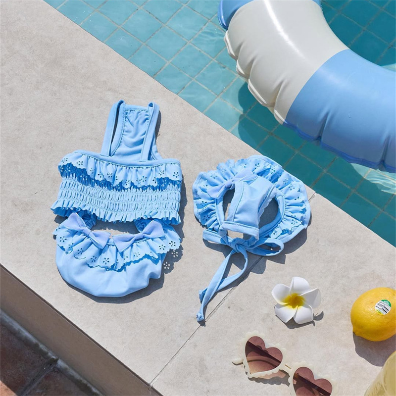 2025 새로운 애완 동물 수영복 고양이 원피스 서스펜더 비키니 개 조끼 수영복 고양이 옷 + 수영 모자
