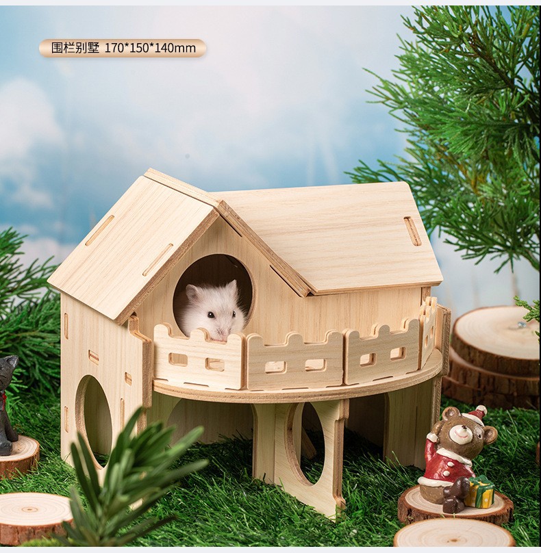 햄스터 장난감 용품 햄스터 나무 단단한 나무 작은 집 스윙 수면 둥지 시소 골든 베어 더블 레이어 빌라