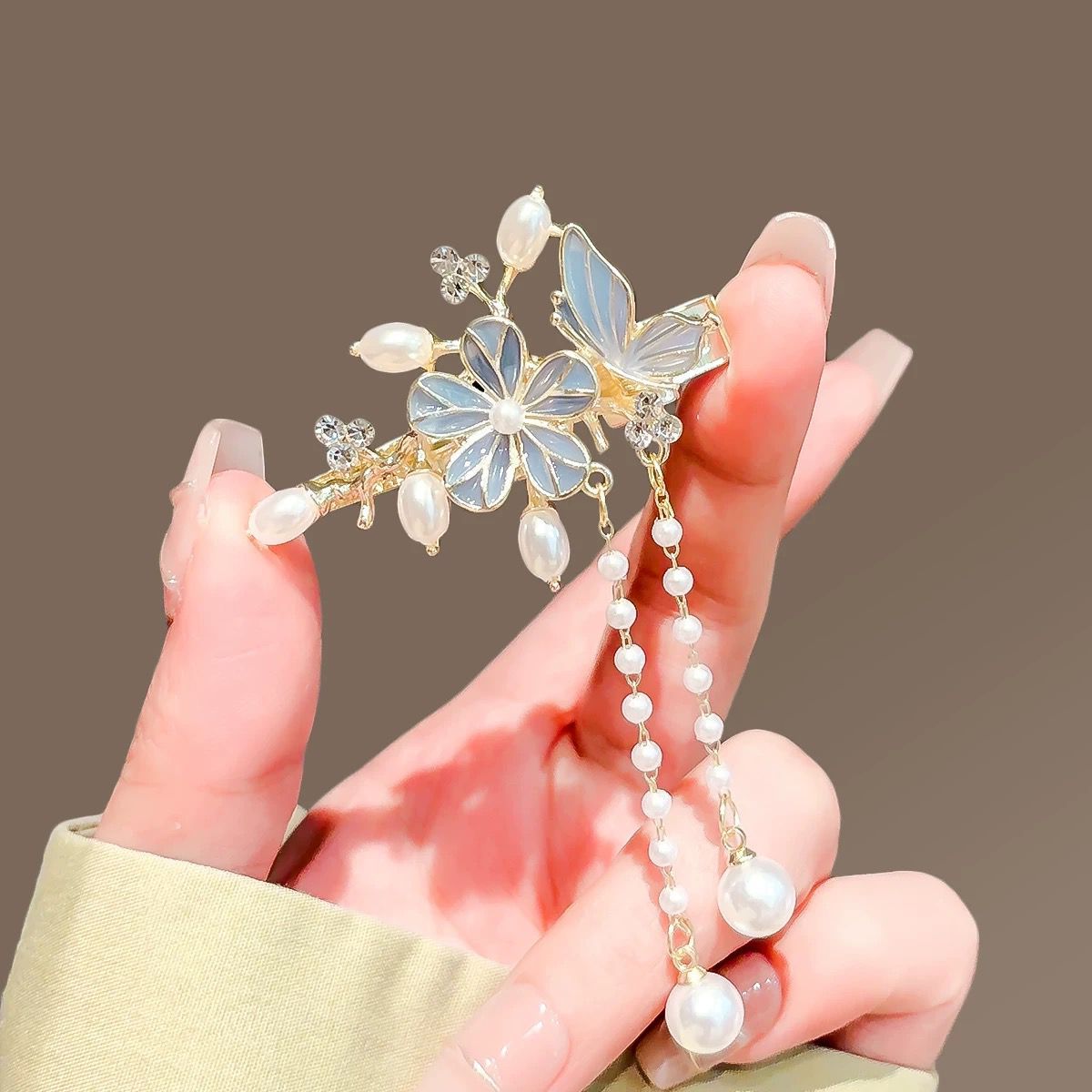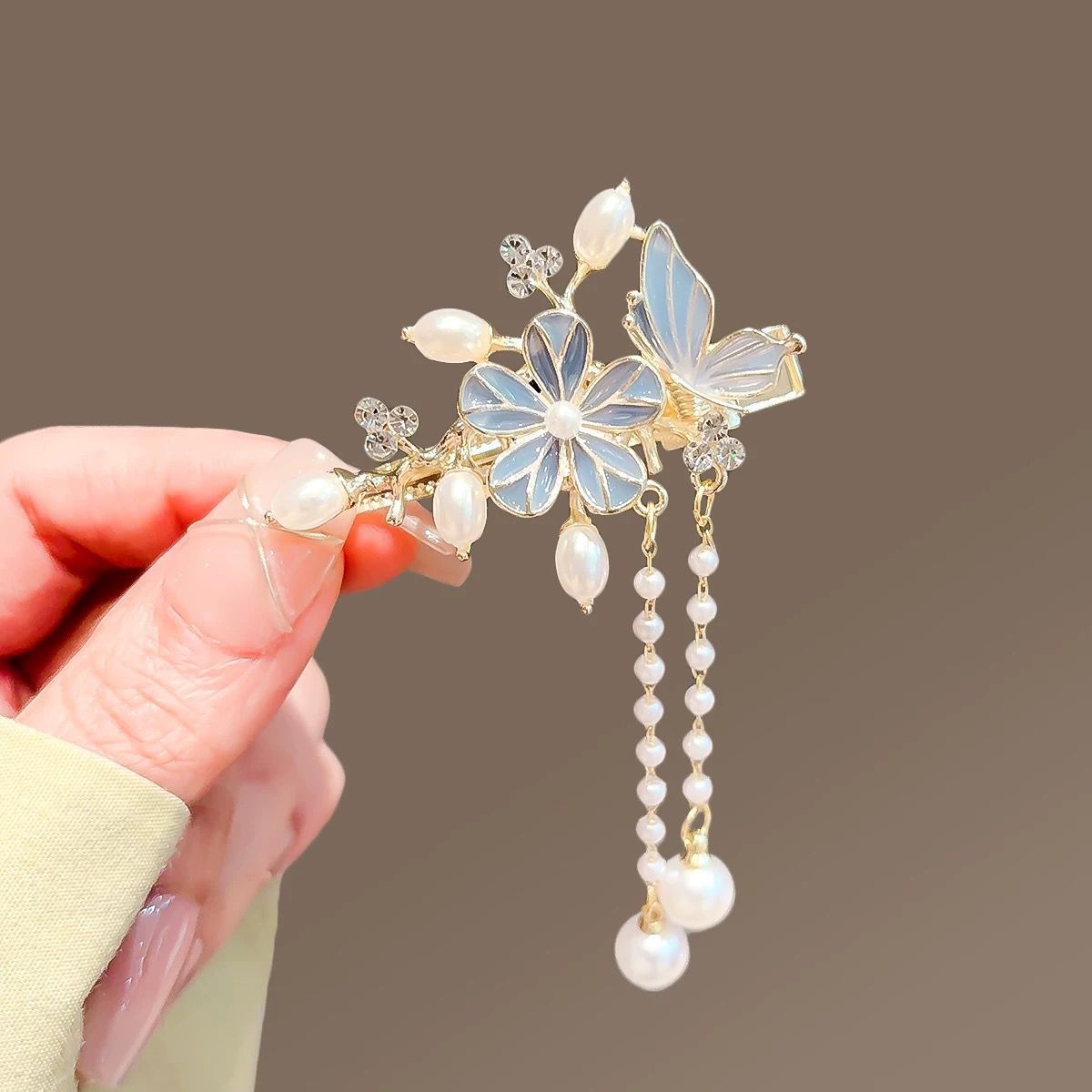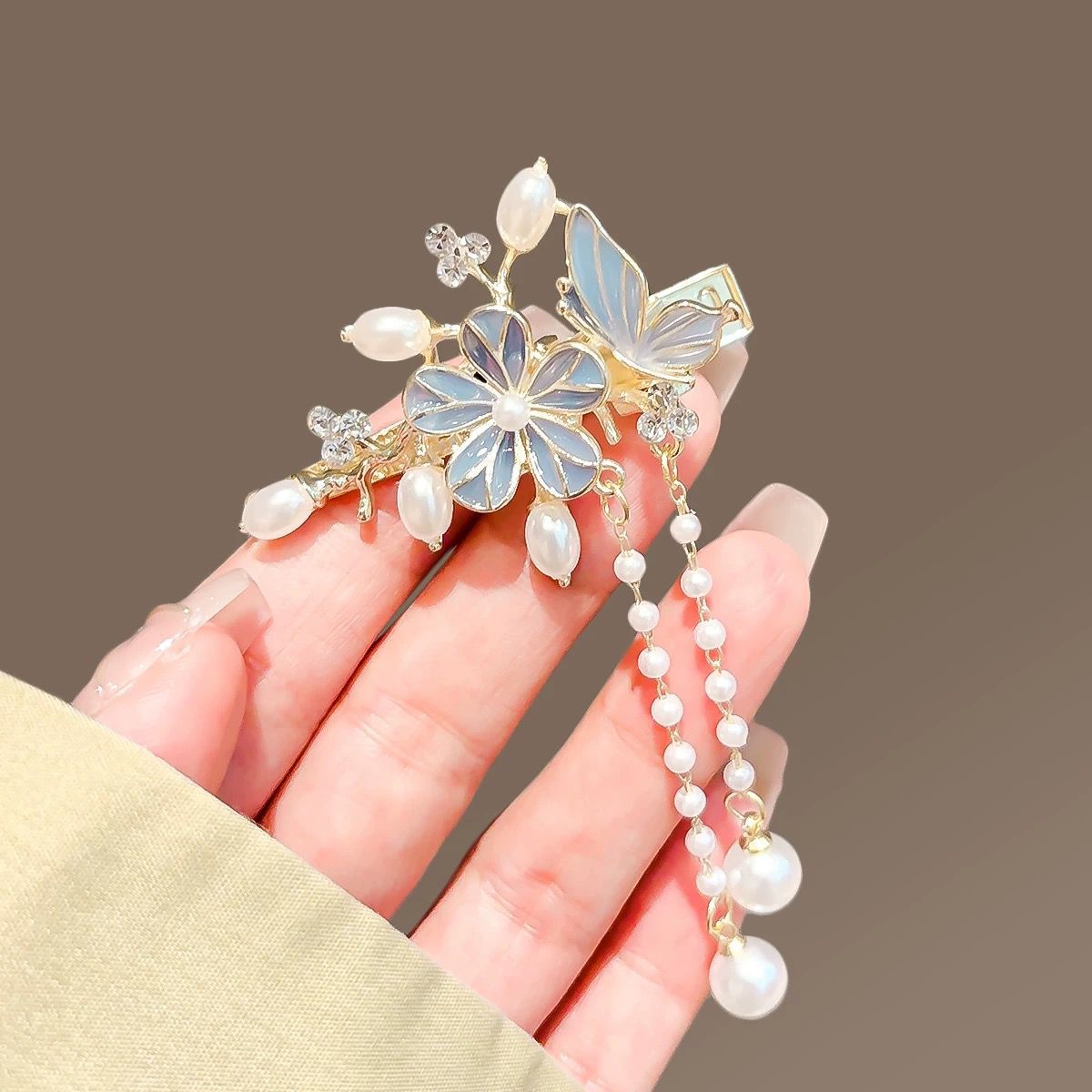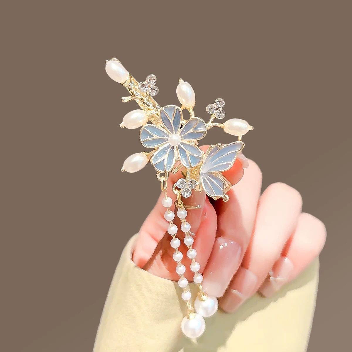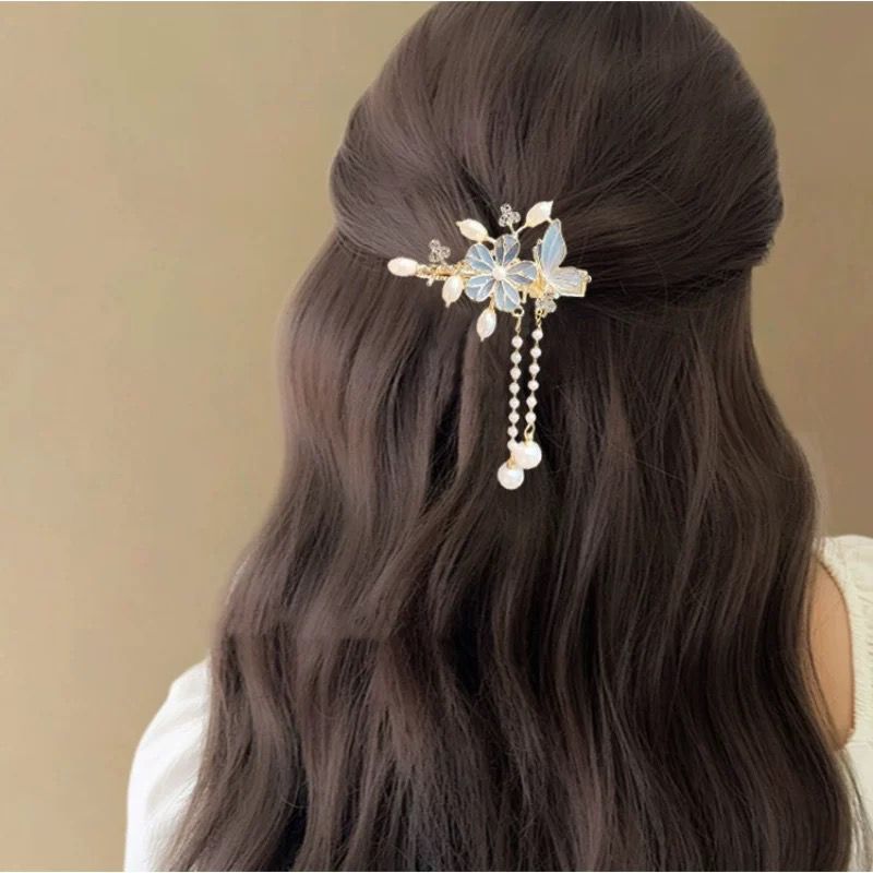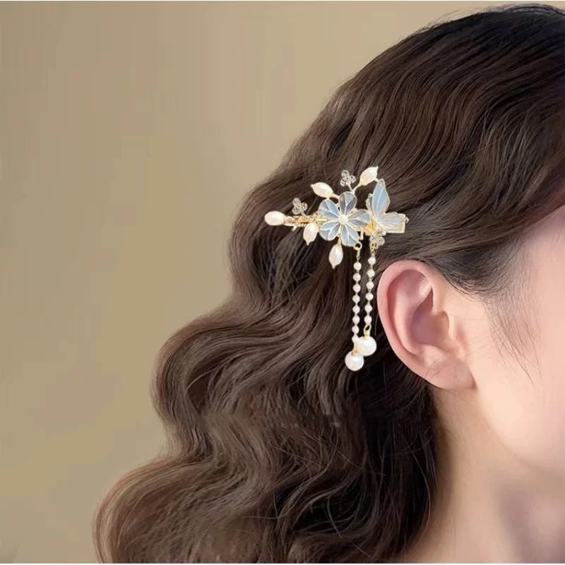 • 새로운 중국 스타일의 꽃 술 가장자리 클립-라이트 블루(1개)