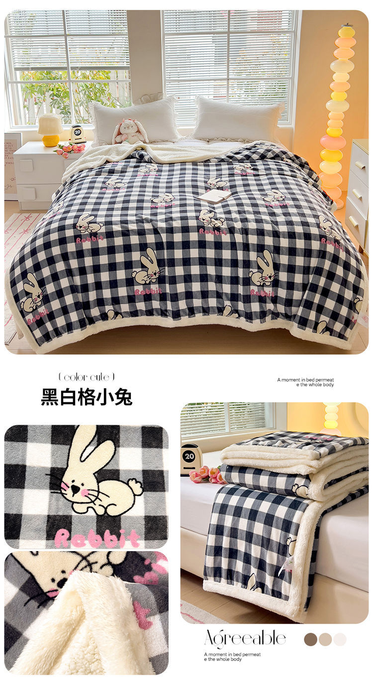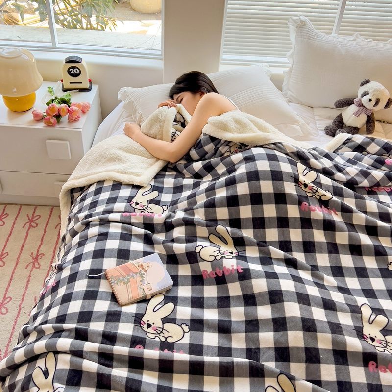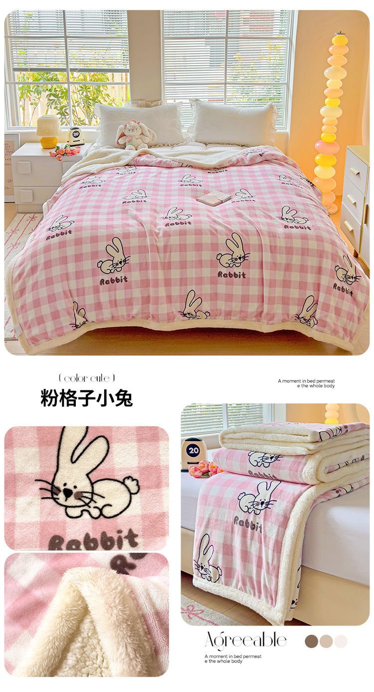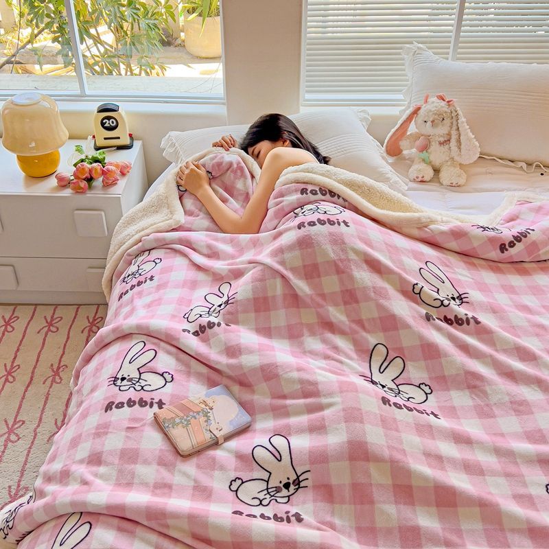 • 핑크 체크 무늬 토끼 두께의 정전기 방지 우유 벨벳 + 양 벨벳