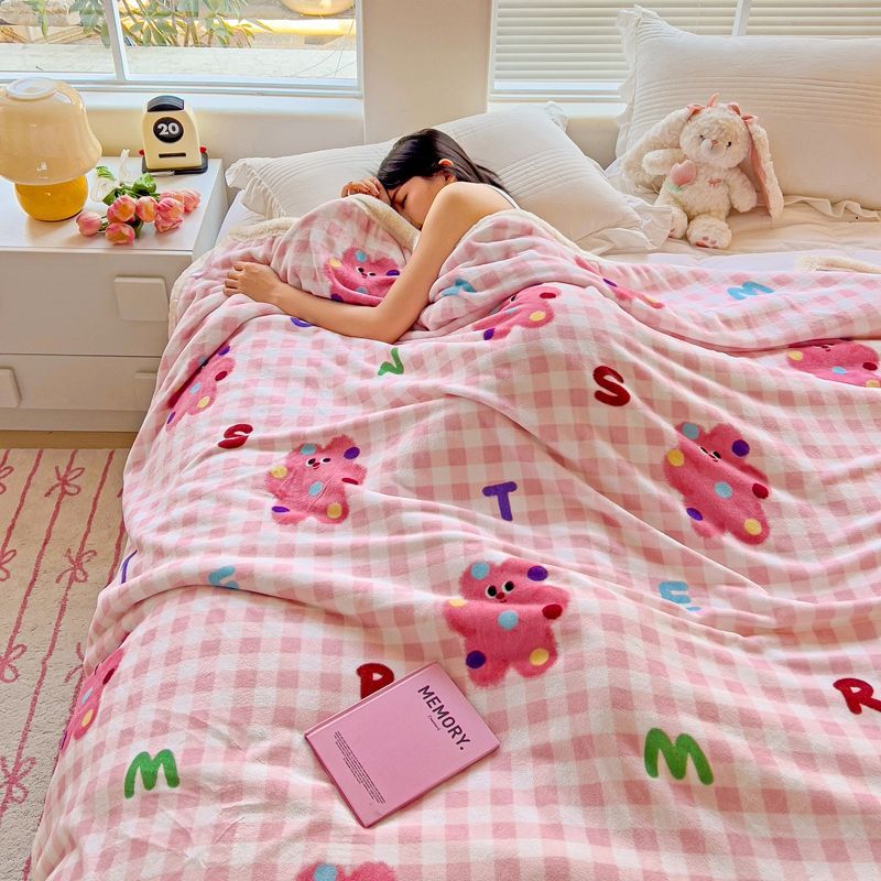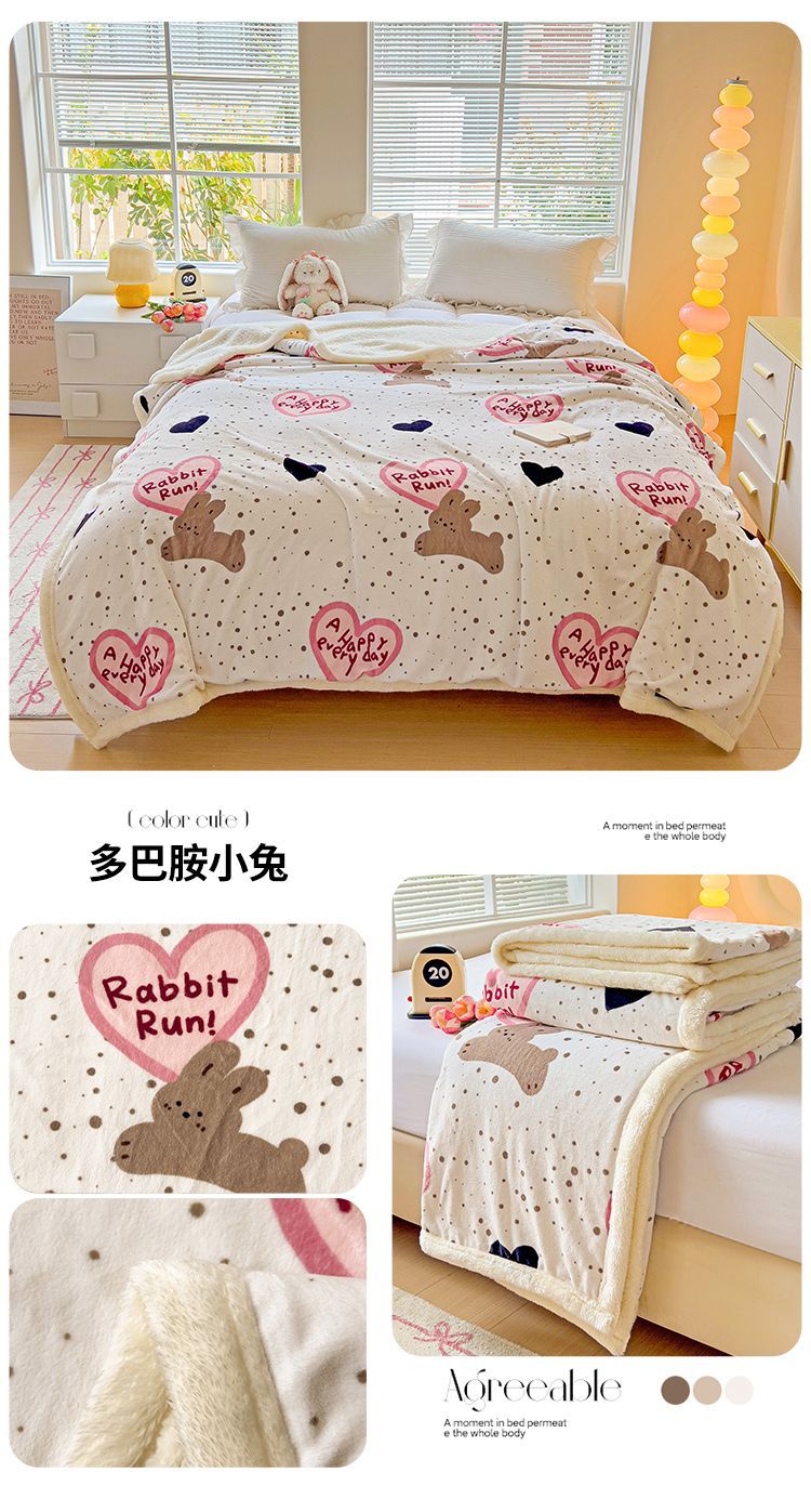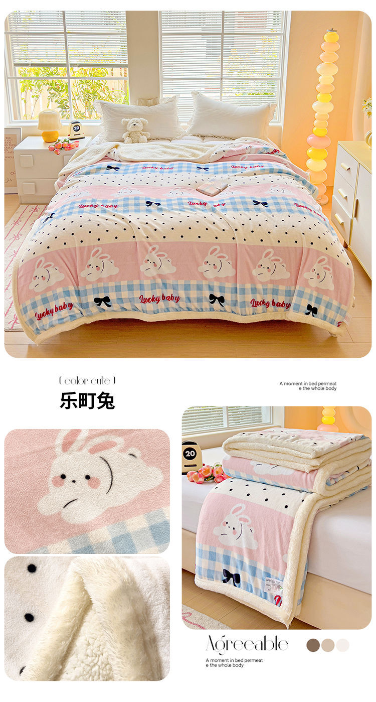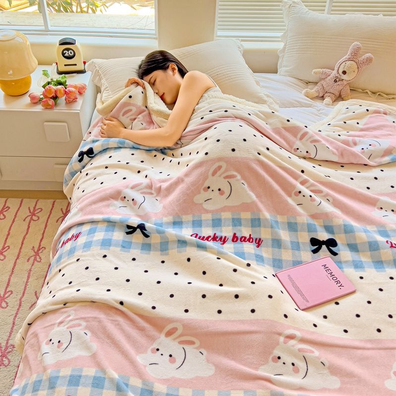 • 핑크 체크 무늬 토끼 두께의 정전기 방지 우유 벨벳 + 양 벨벳