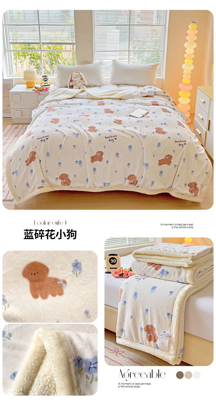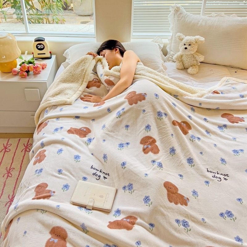 • 블루 플로럴 강아지 두께의 정전기 방지 밀크 벨벳 + 램스울