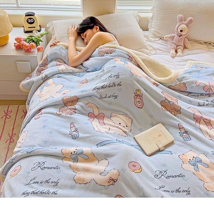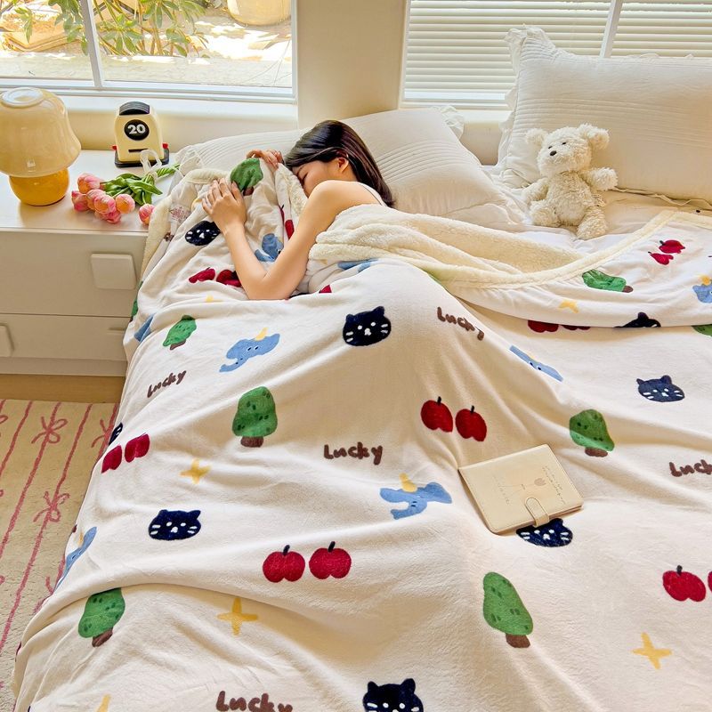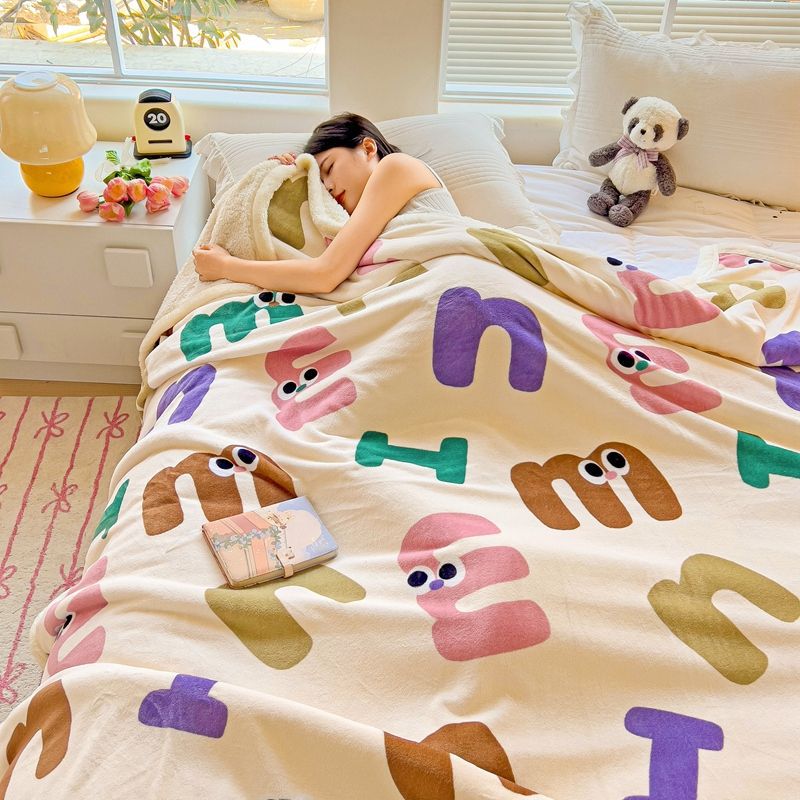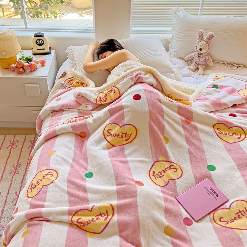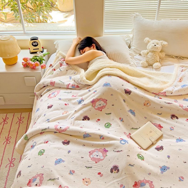 두꺼운 양고기 양털 담요 사무실 낮잠 정전기 방지 우유 양털 캐주얼 숄 담요 만화 소파 커버 담요스토어 가기