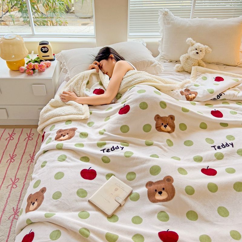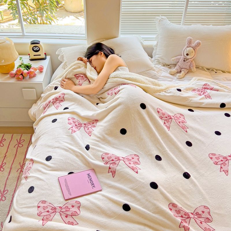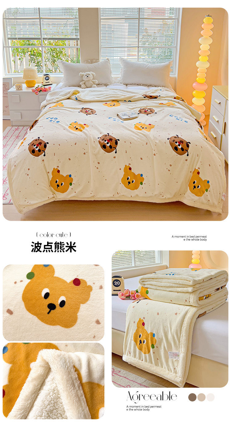 • 폴카 도트 베어 라이스 두꺼운 정전기 방지 밀크 벨벳 + 램 벨벳