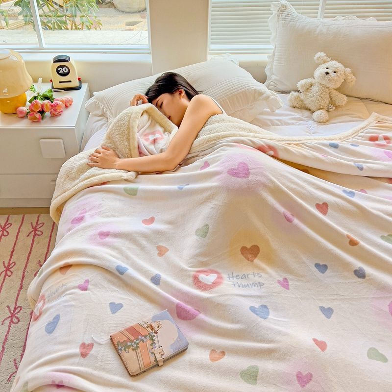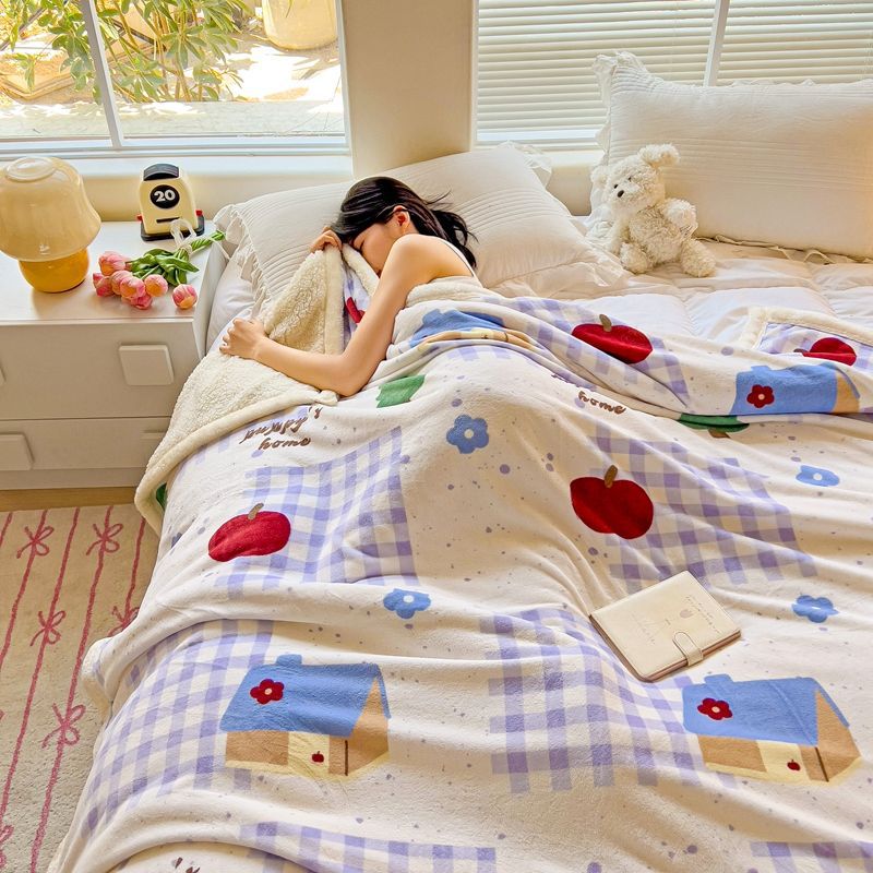 두꺼운 양고기 양털 담요 사무실 낮잠 정전기 방지 우유 양털 캐주얼 숄 담요 만화 소파 커버 담요