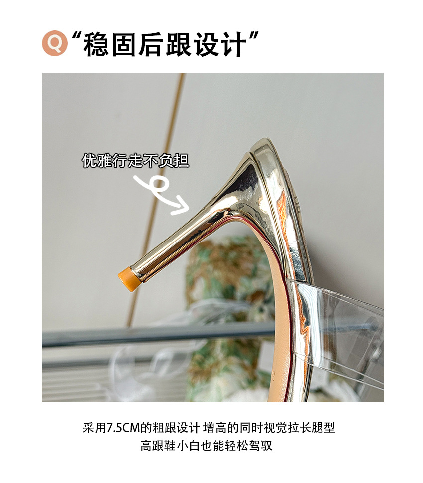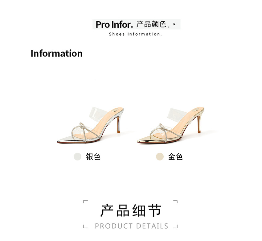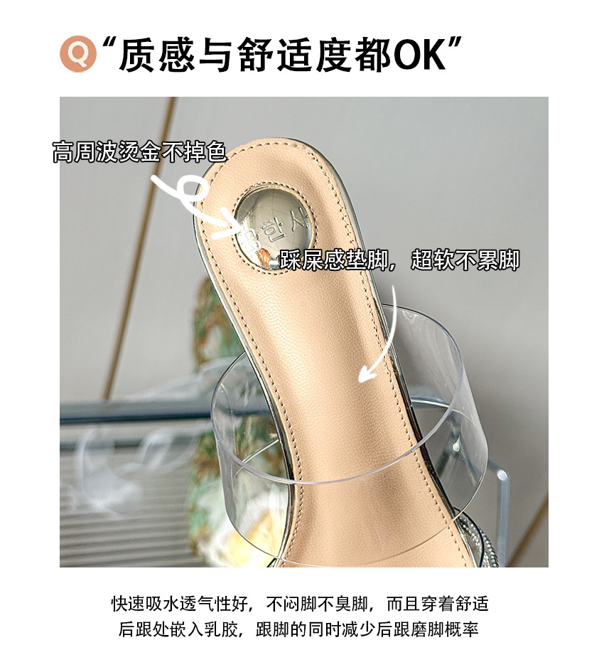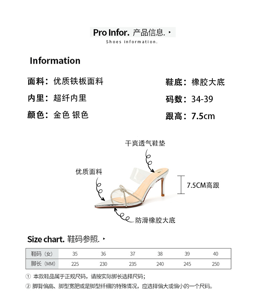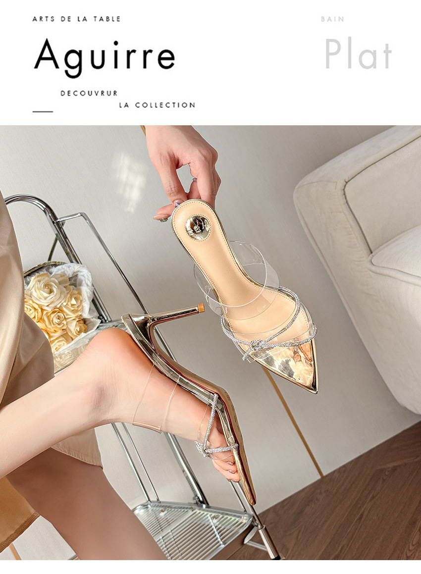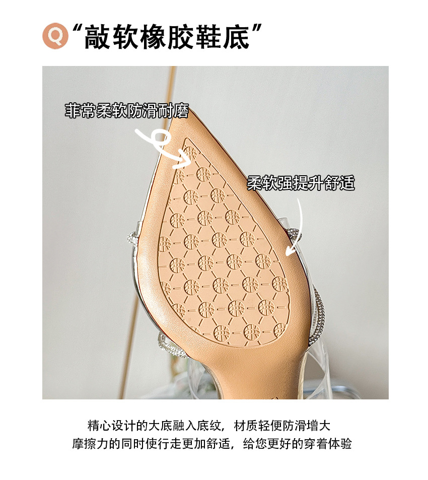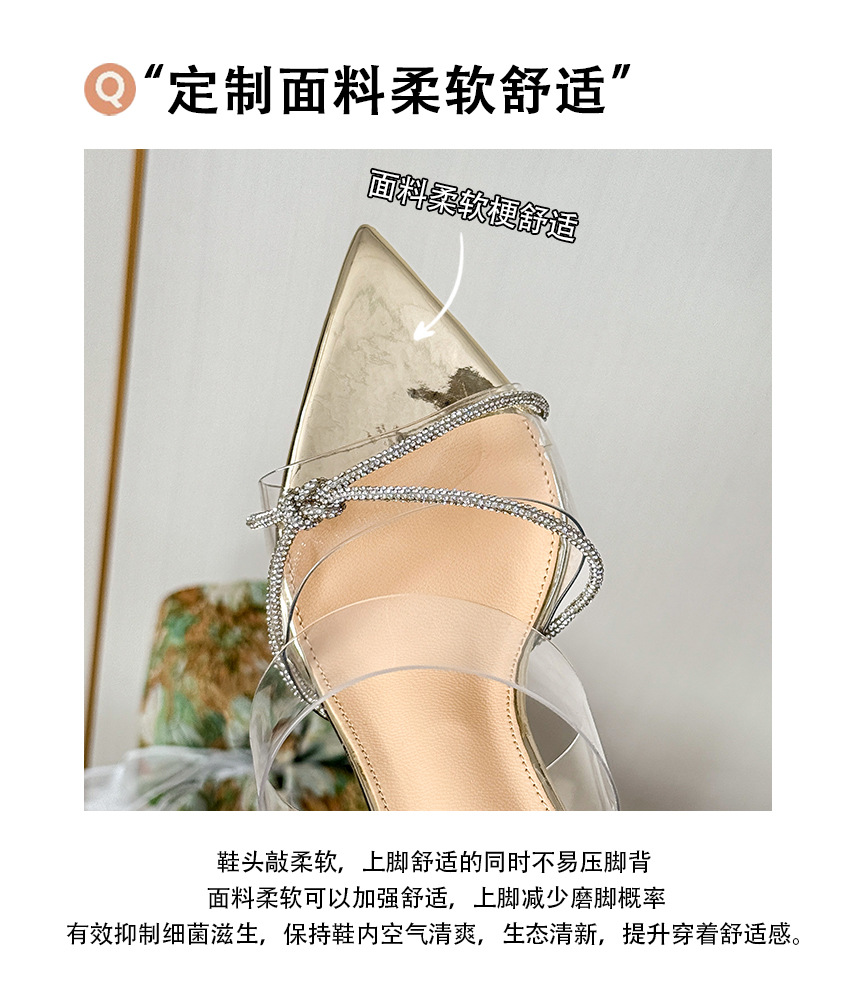 유행 뾰족한 얇은 뒤꿈치 라인스톤 여름 투명한 샌들 하이힐 2025 새로운 여성 아웃웨어 슬리퍼 실버스토어 가기