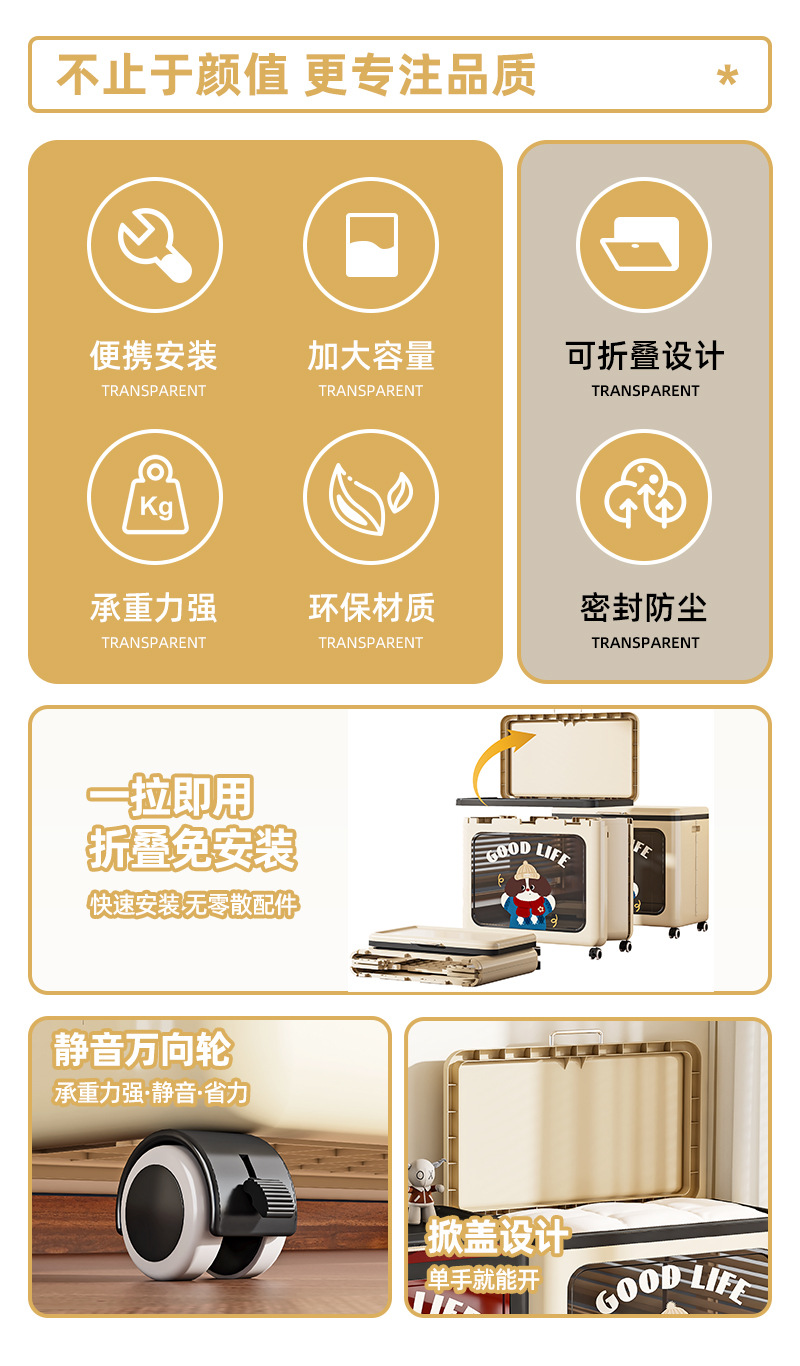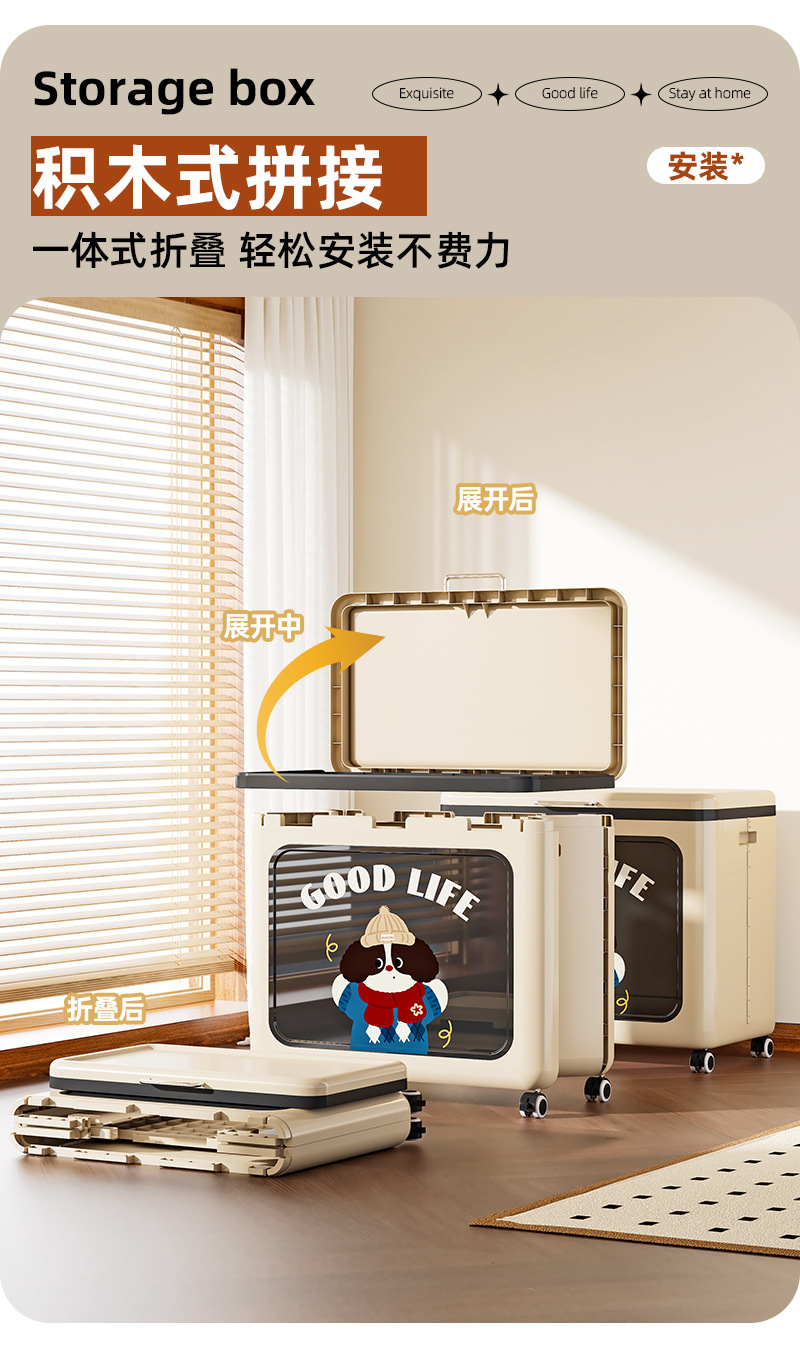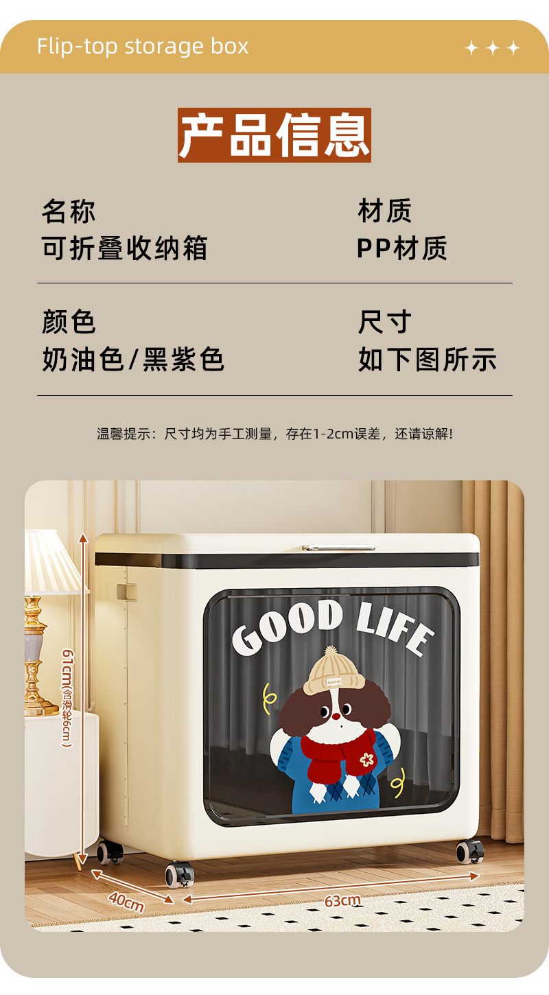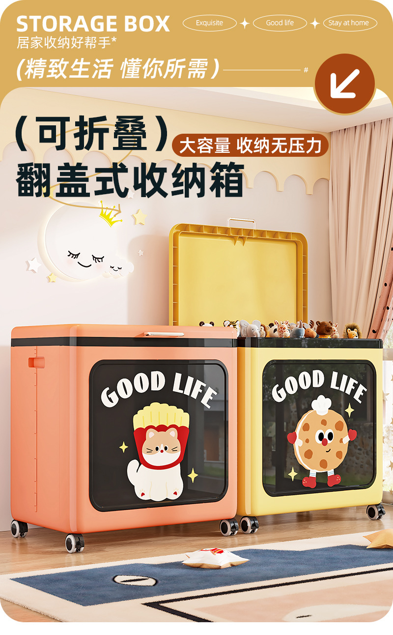플립 의류 보관 상자 가정용 대용량 장난감 바구니 퀼트 마감 상자 접이식 보관 캐비닛 풀리