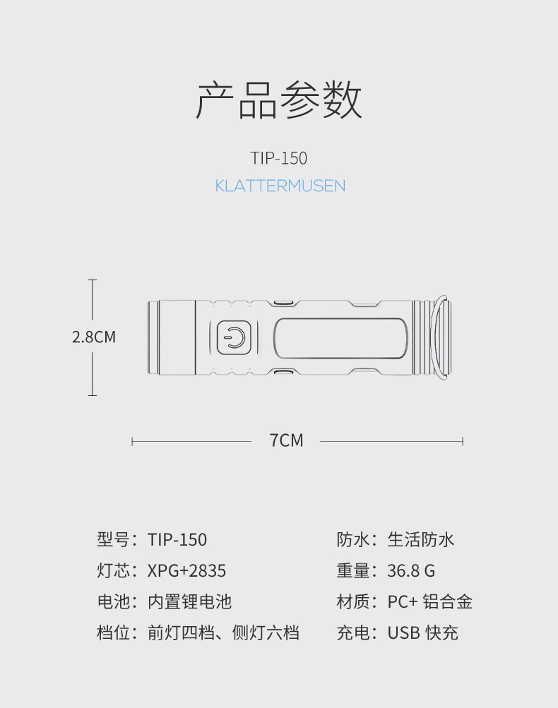 • TIP-150 휴대용 미니 손전등 - 밀랍색