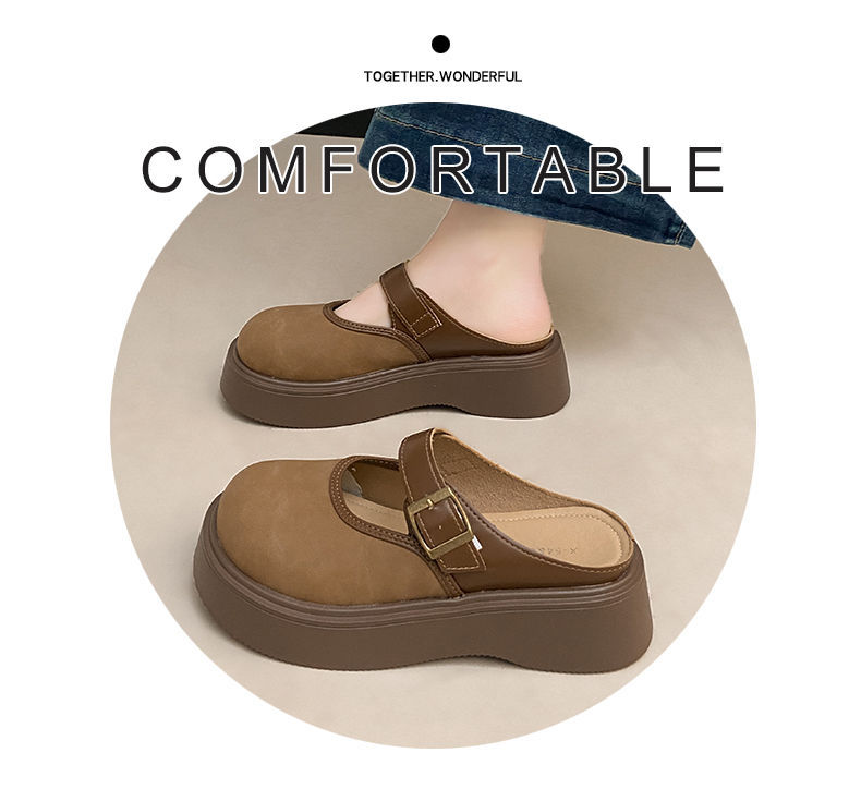 여성용 인조가죽 두꺼운 밑창 버켄스탁 하프슬리퍼 2025 신작 봄, 가을 메리제인 여성화 소형 가죽신 여성 싱글 슈즈스토어 가기