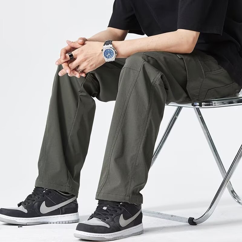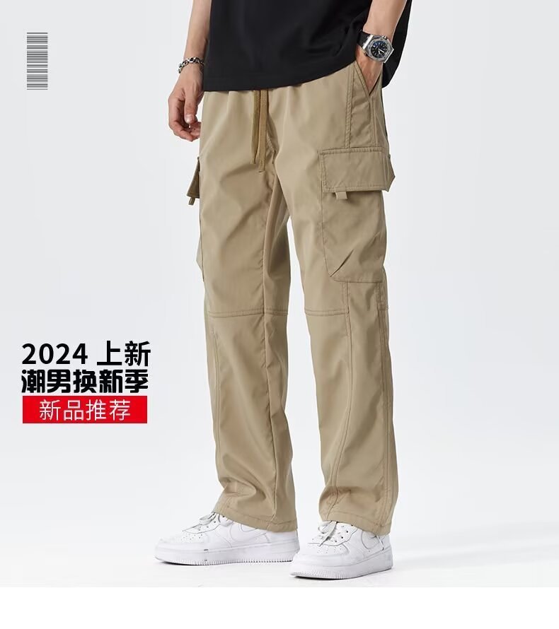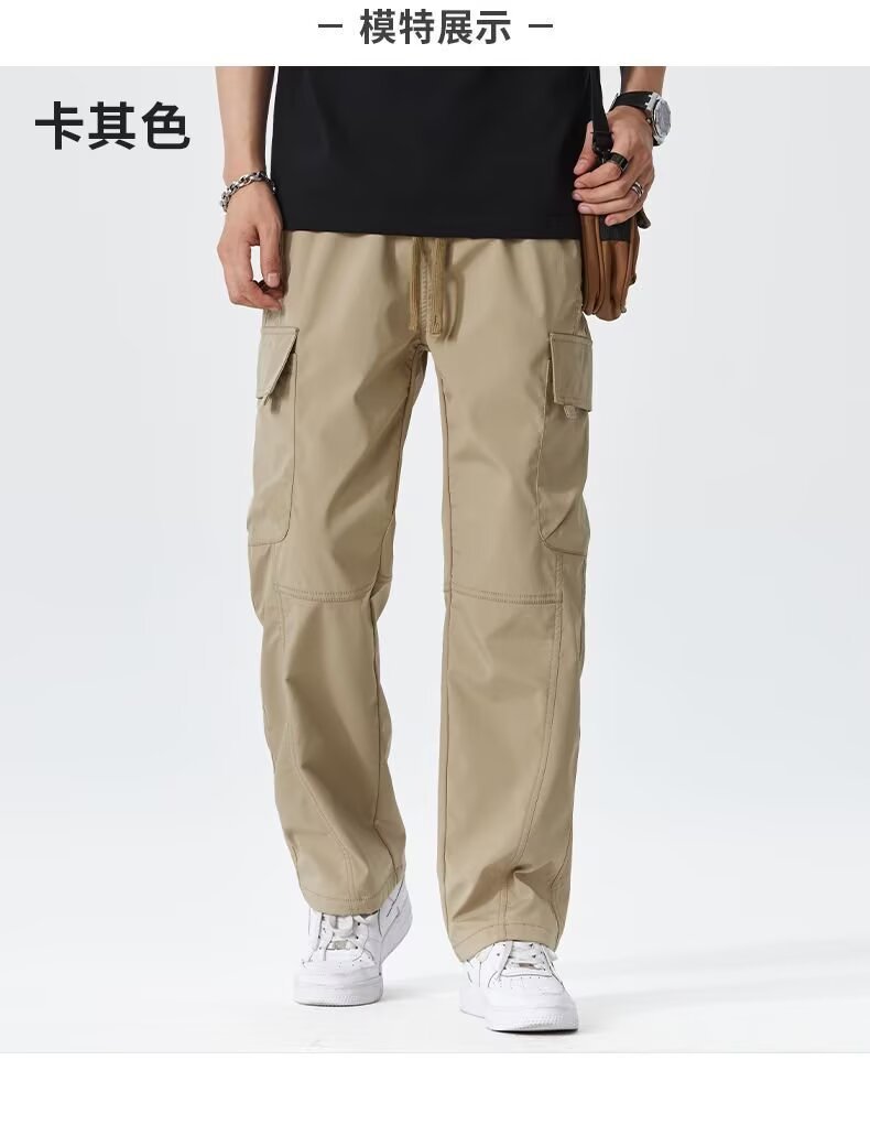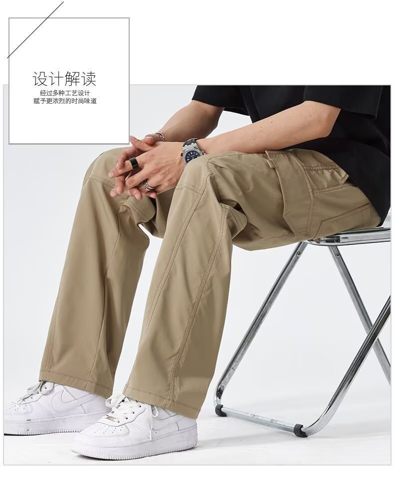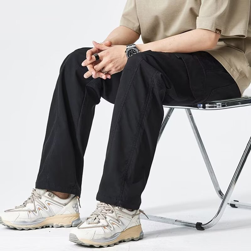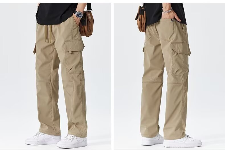 2025 미국 트렌디 브랜드 작업복 남성 봄, 가을 새로운 느슨한 스트레이트 와이드 레그 남성 바지 야외 소프트 쉘 충전 바지스토어 가기