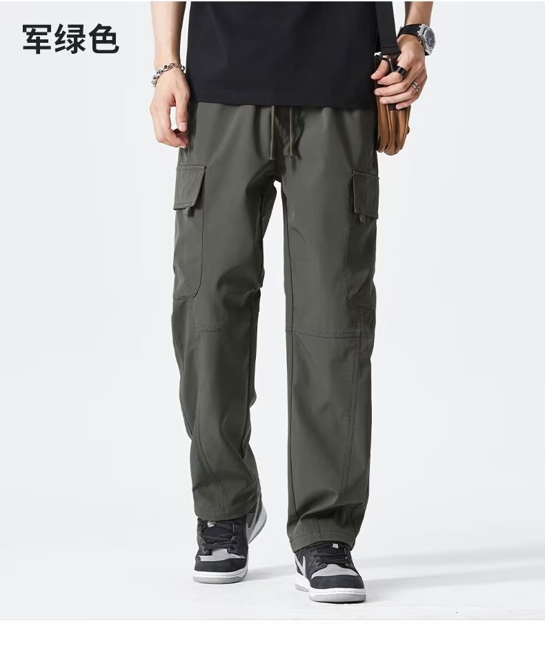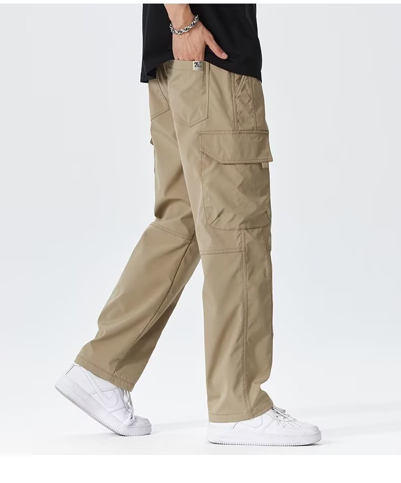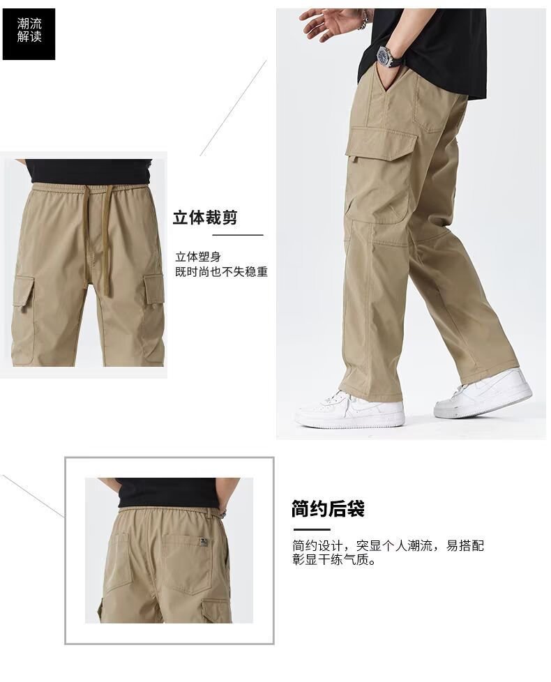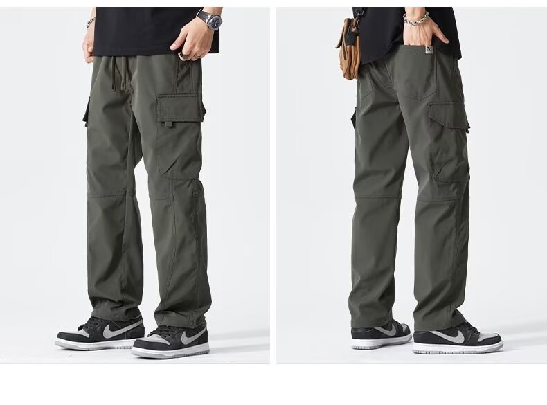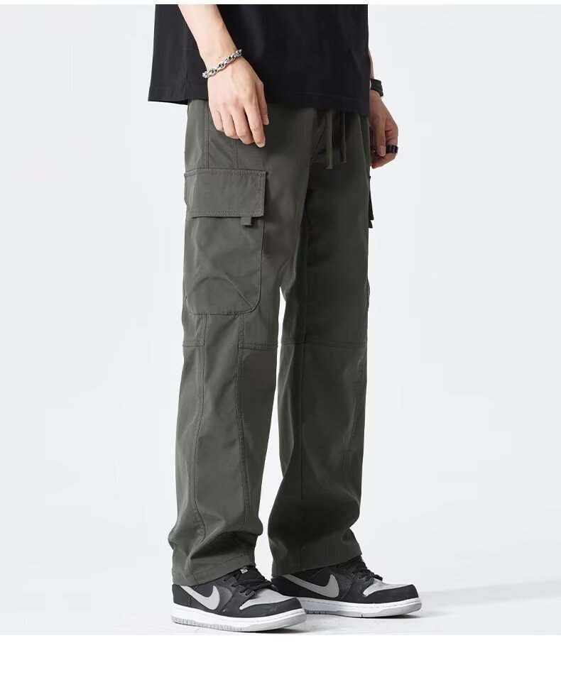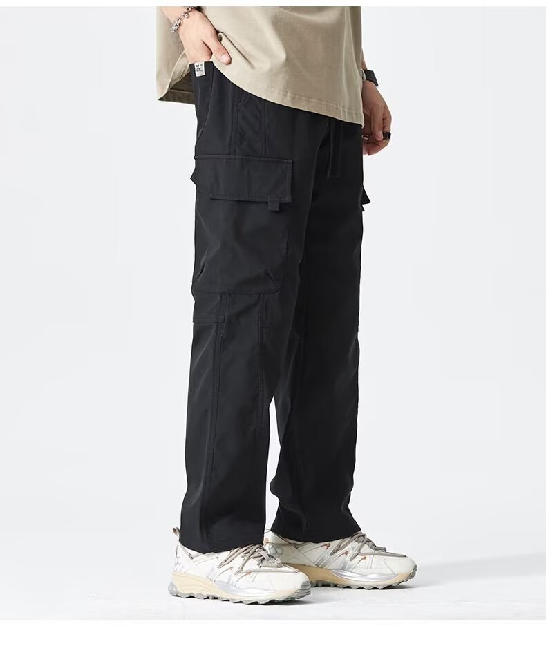 2025 미국 트렌디 브랜드 작업복 남성 봄, 가을 새로운 느슨한 스트레이트 와이드 레그 남성 바지 야외 소프트 쉘 충전 바지스토어 가기