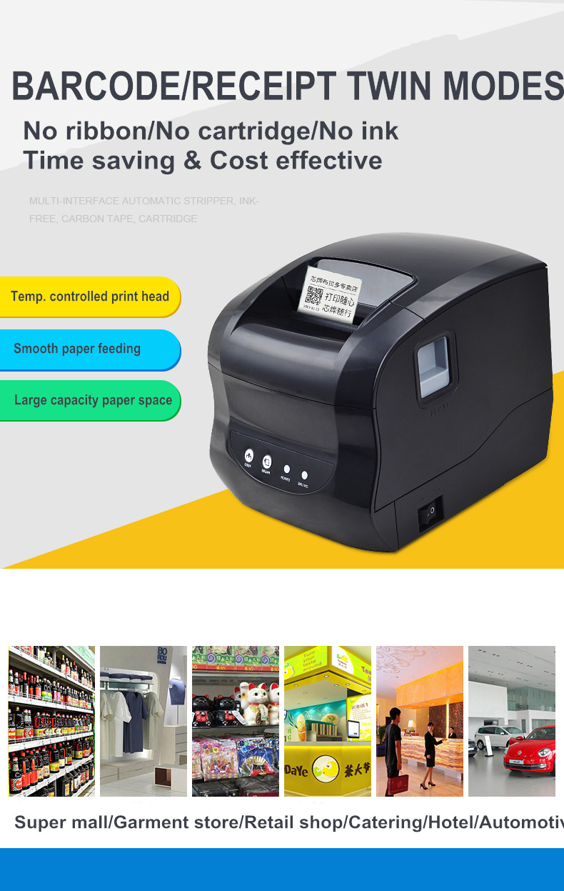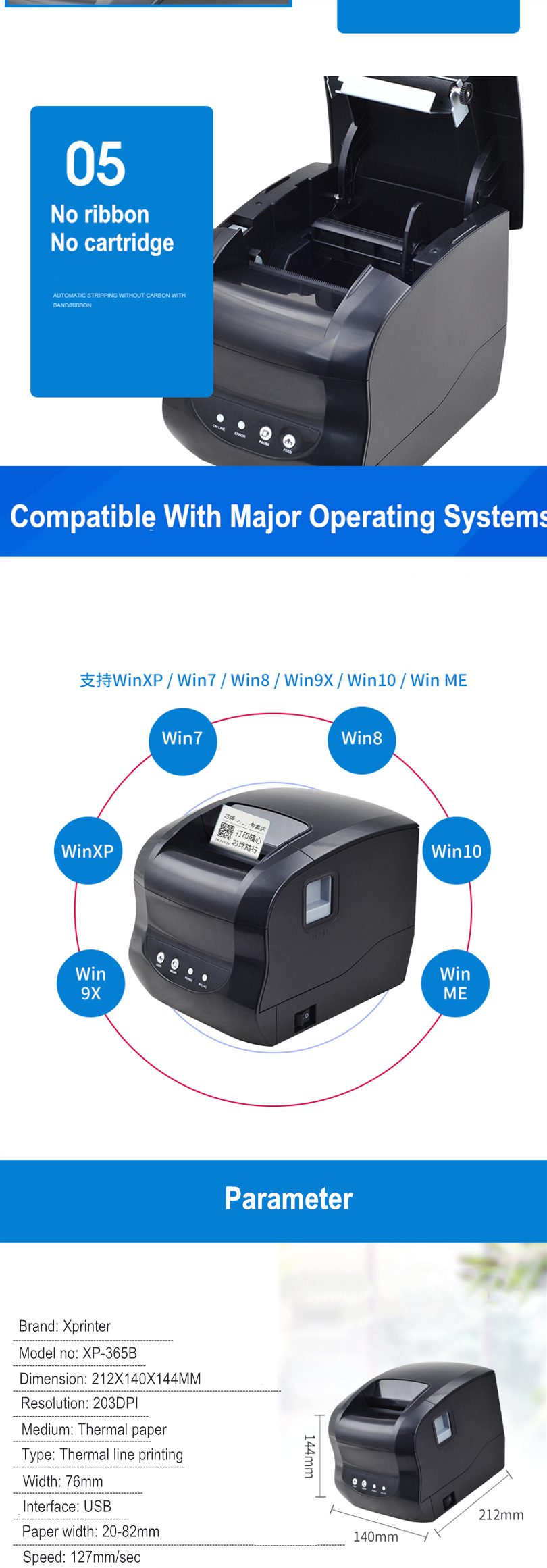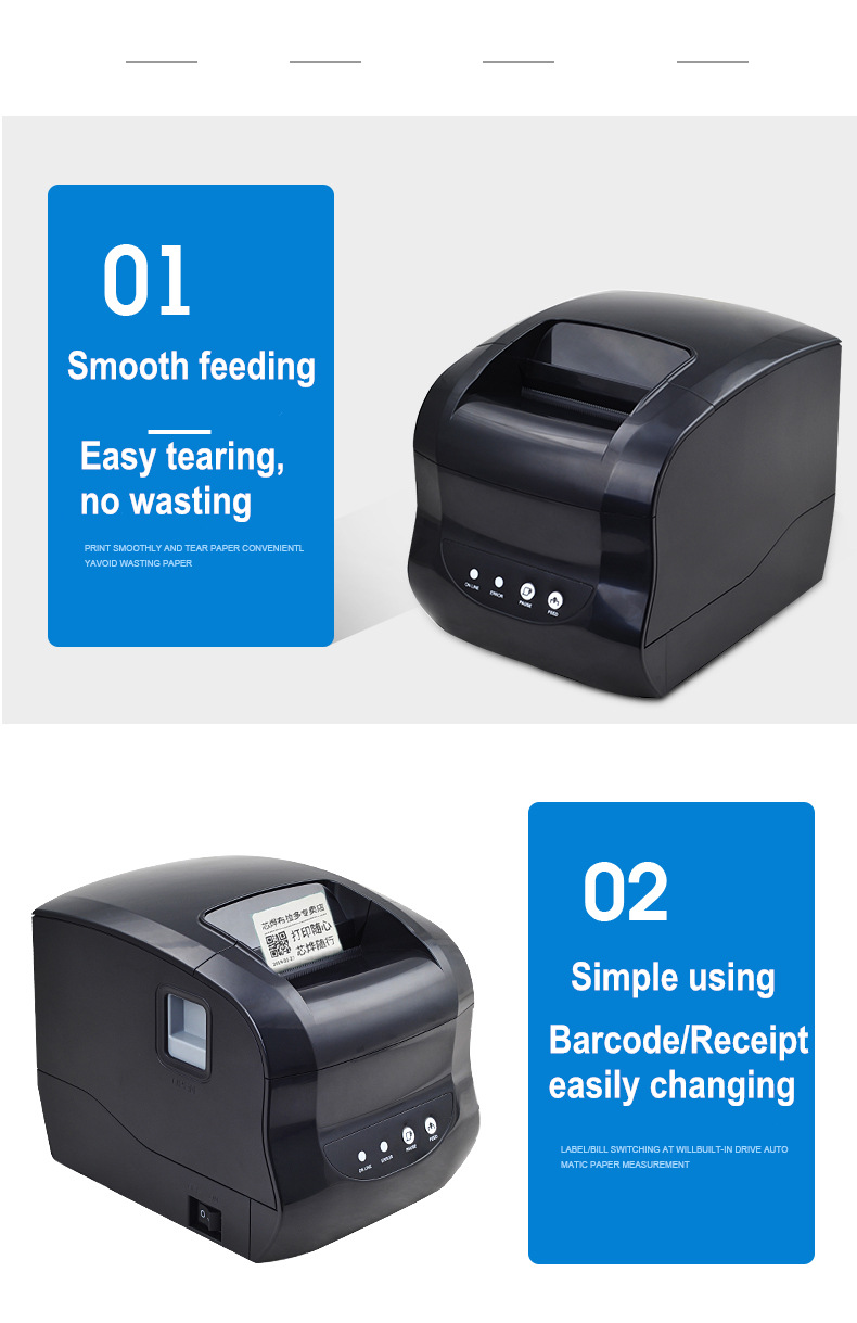 국경 간 뜨거운 판매 XP365B 라벨 프린터 자체 접착 프린터 80mm 열 바코드 가격 프린터스토어 가기