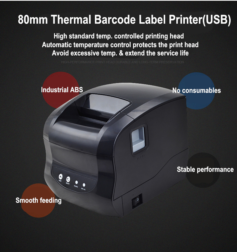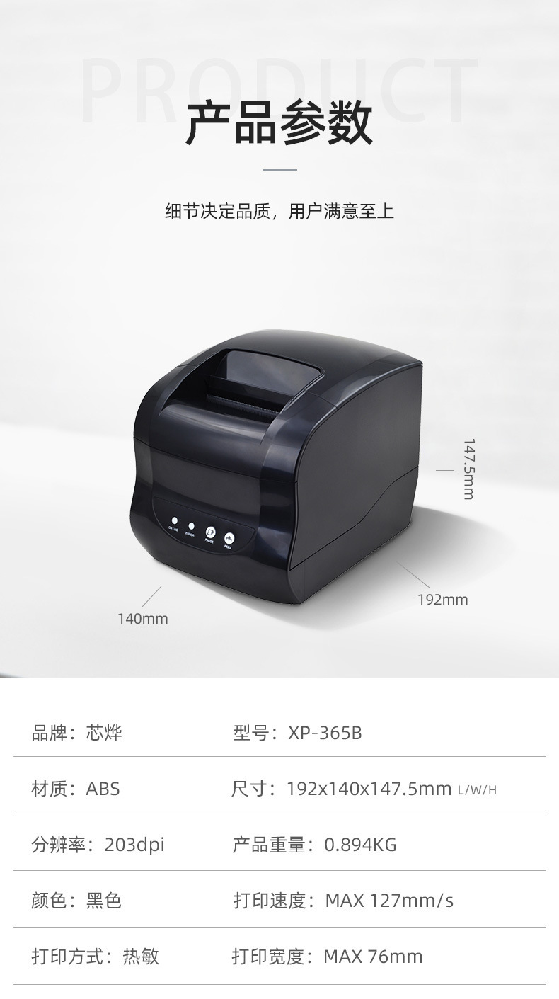 跨境热销XP-365B标签打印机不干胶打印机80mm热敏条形码价格打印机