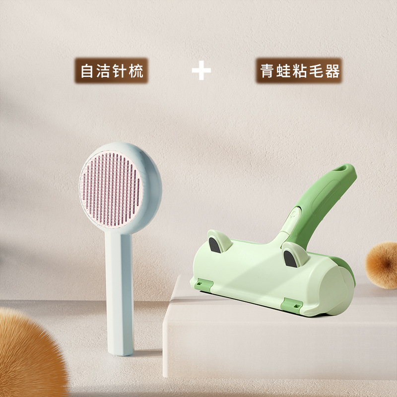 • 개구리 헤어스틱 업그레이드 모델 + 원클릭 제모 바늘빗 [크림 미스트 블루]