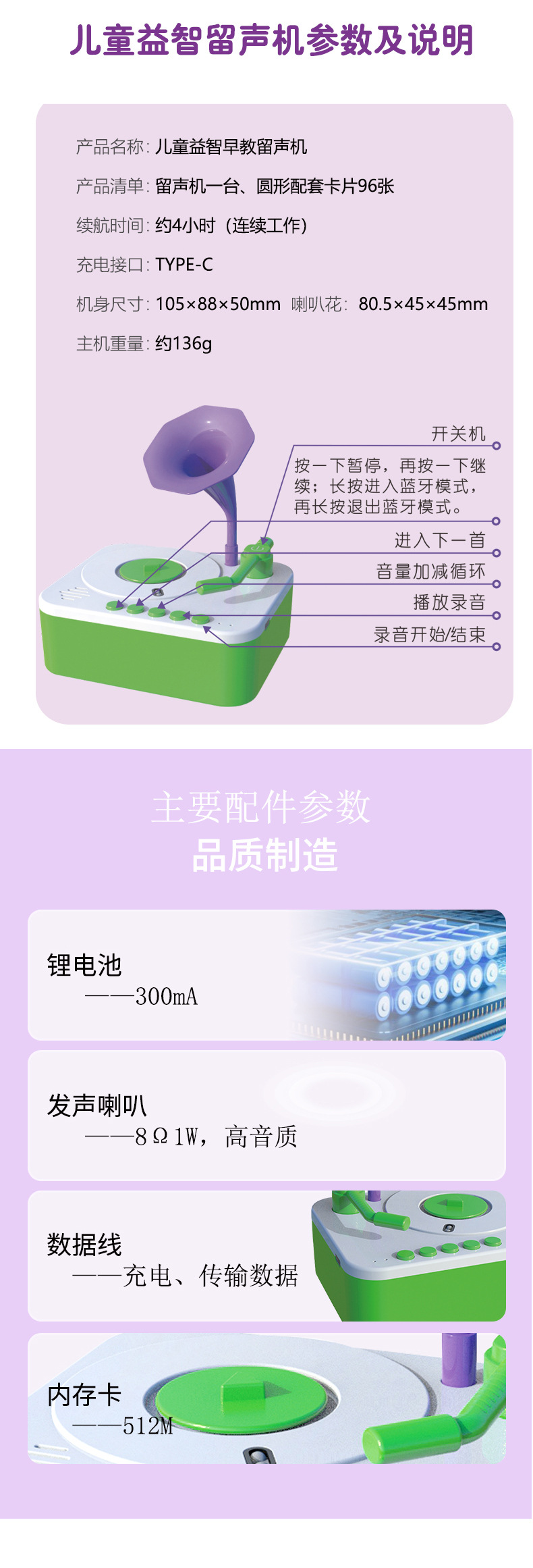• 어린이교육용 조기교육 축음기 기본모델 [중국어카드 96장]