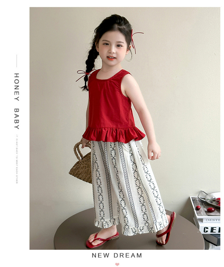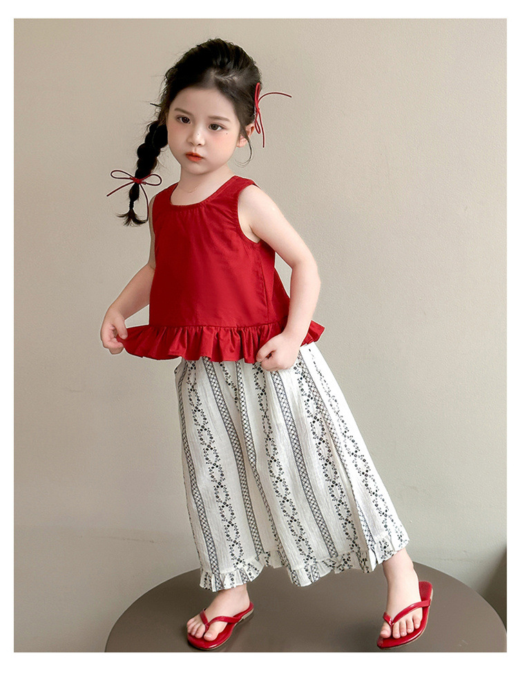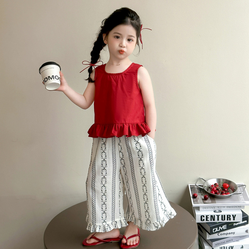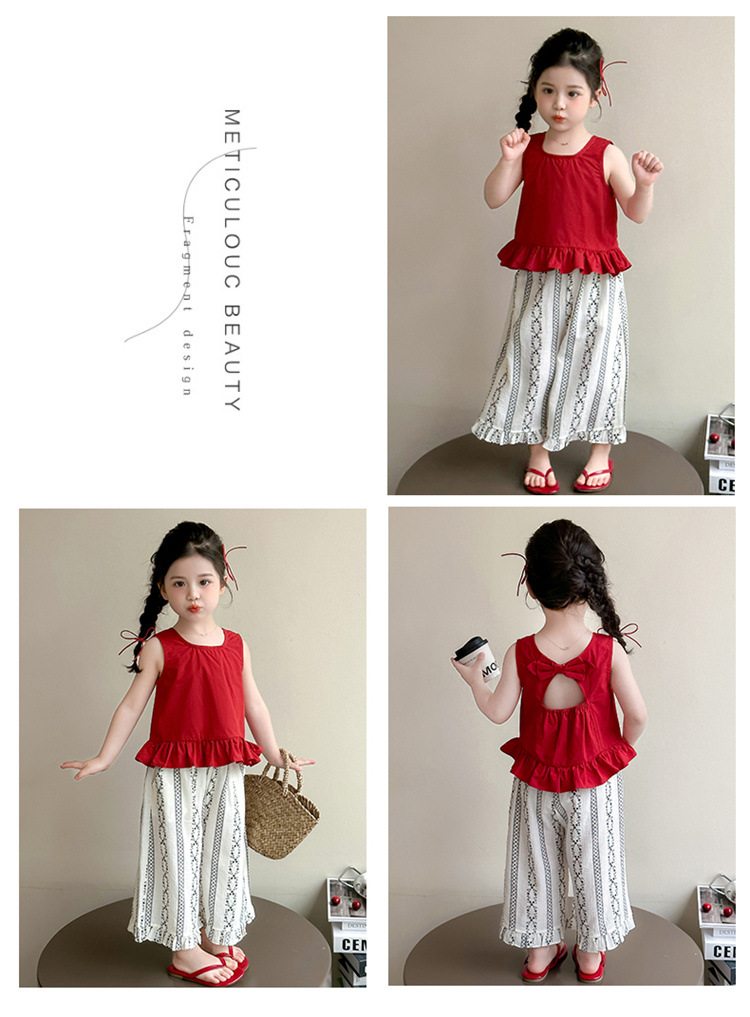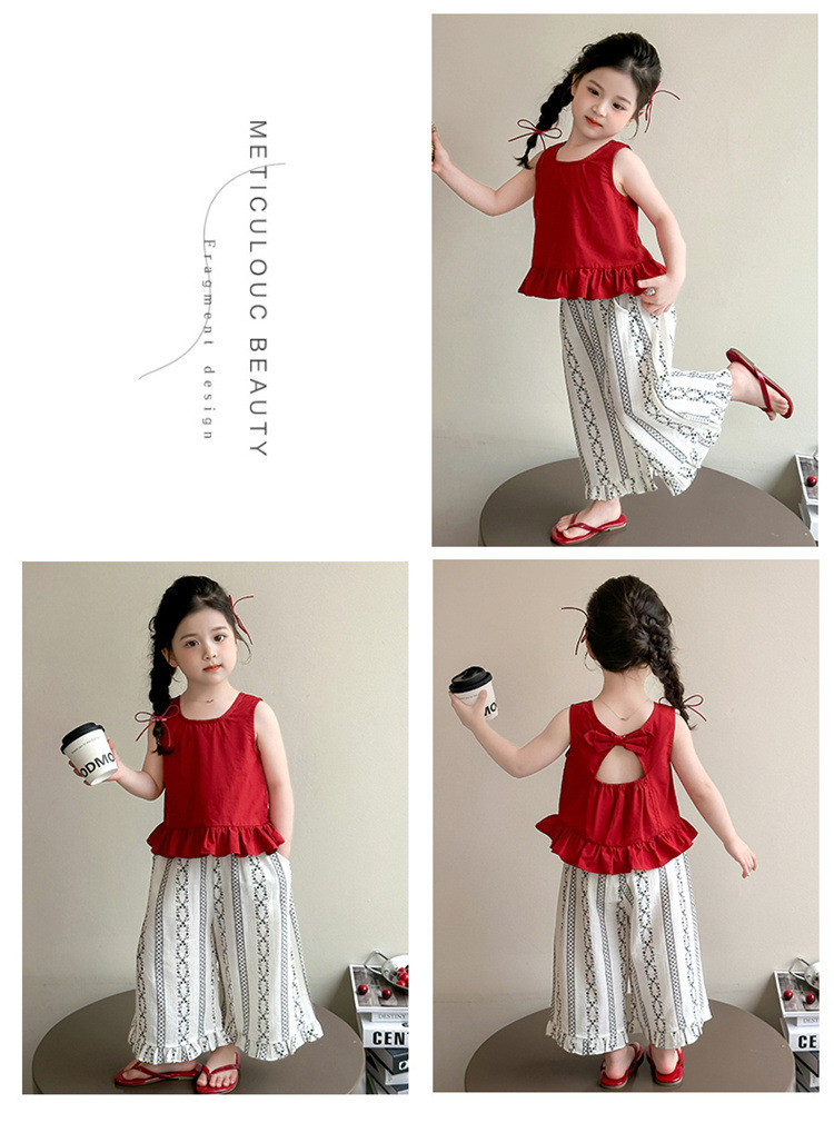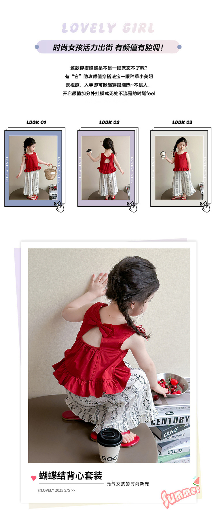 소녀 백 할로우 아웃 세트 2025 여름 새로운 패션 소녀 세련된 투피스 세트 중소 어린이 여름 원피스스토어 가기