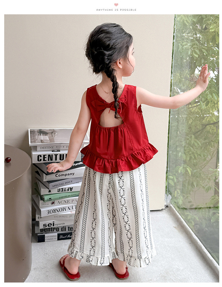 소녀 백 할로우 아웃 세트 2025 여름 새로운 패션 소녀 세련된 투피스 세트 중소 어린이 여름 원피스