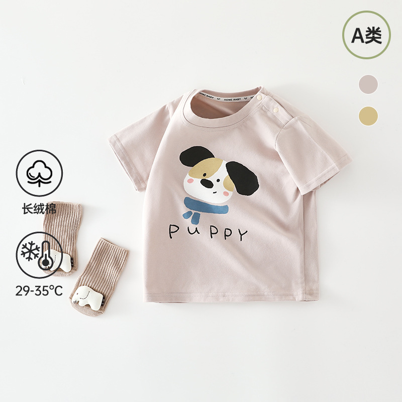 아동복 어린이 아기 반팔 티셔츠 여아 소년 2025 년 새 여름 의류 아기의 순면 클래스 어깨 버클 탑 옷스토어 가기