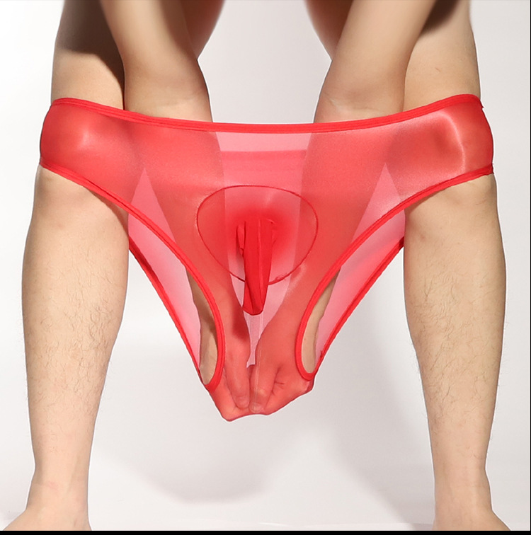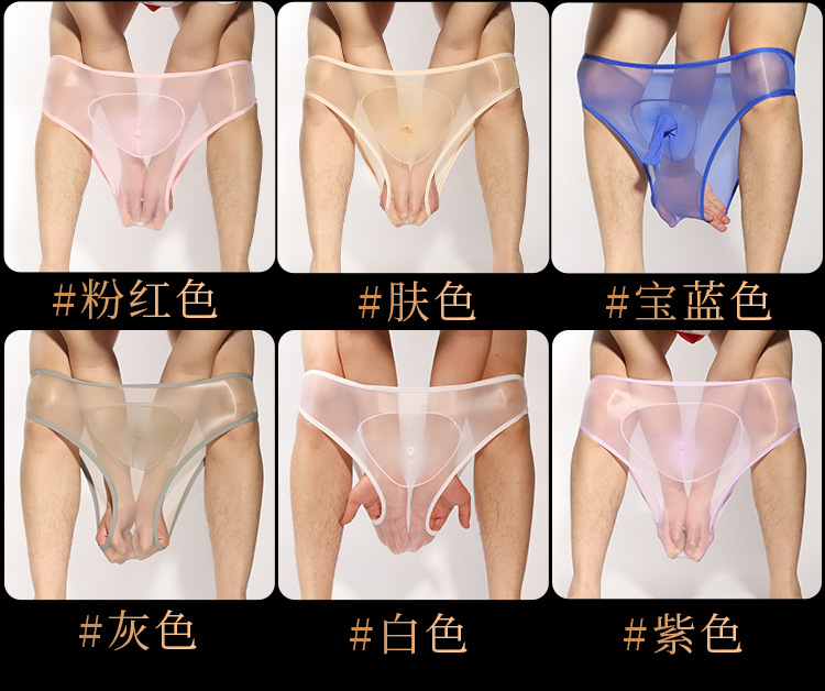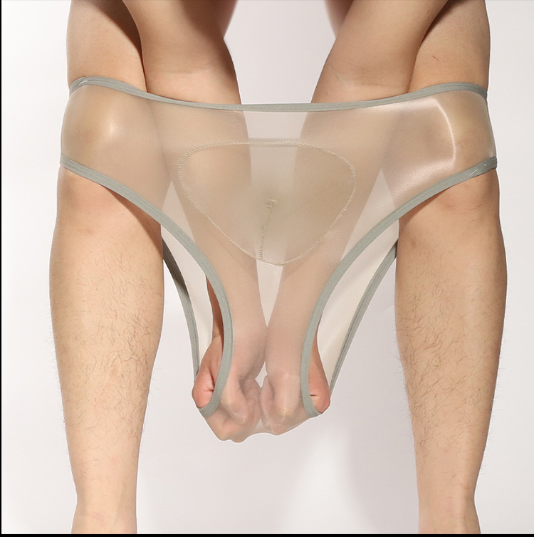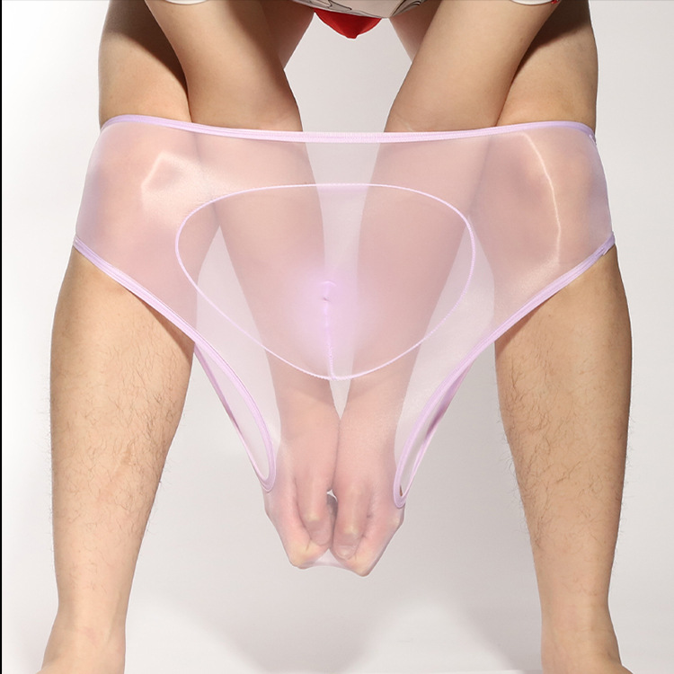 남성용 초박형 섹시한 오일 샤이니 완전 투명 통기성 실키 트라이앵글 섹시 팬티 총알 분리 코끼리 JJ 팬티스토어 가기
