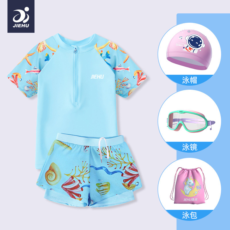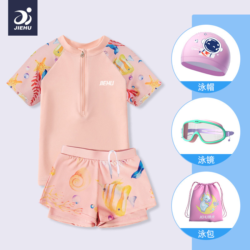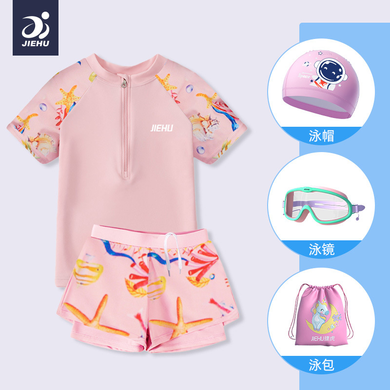 아동 수영복 소녀 스플릿 수영복 2025 새로운 여름 소녀 중대형 어린이 전문 자외선 차단 훈련 수영복스토어 가기