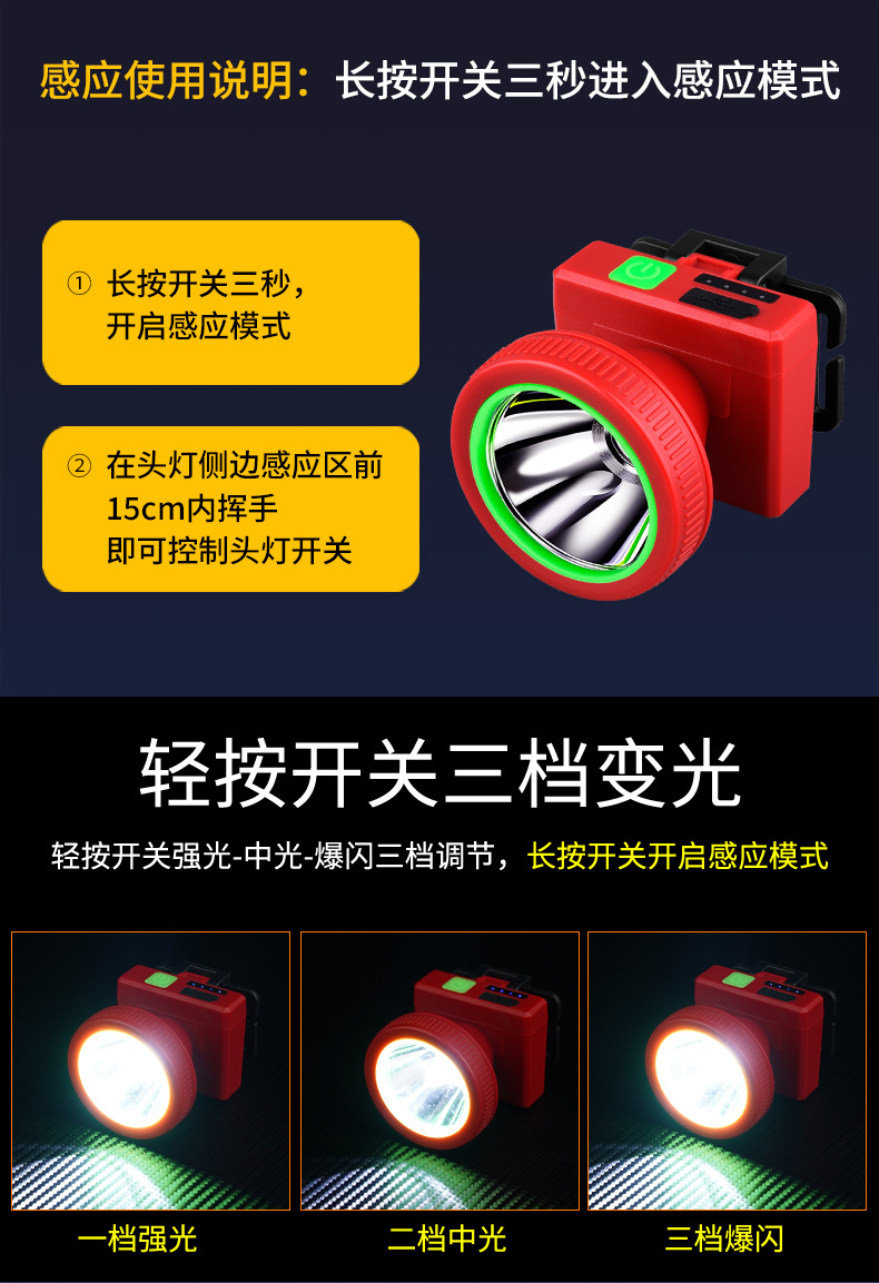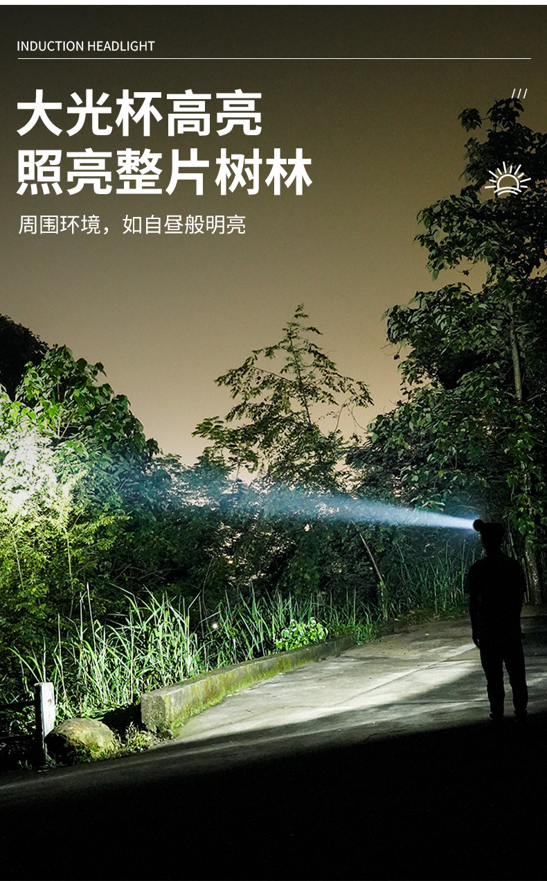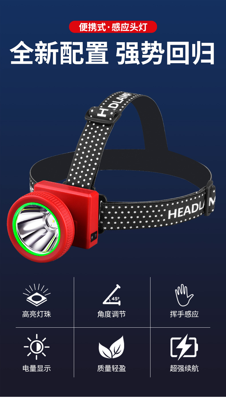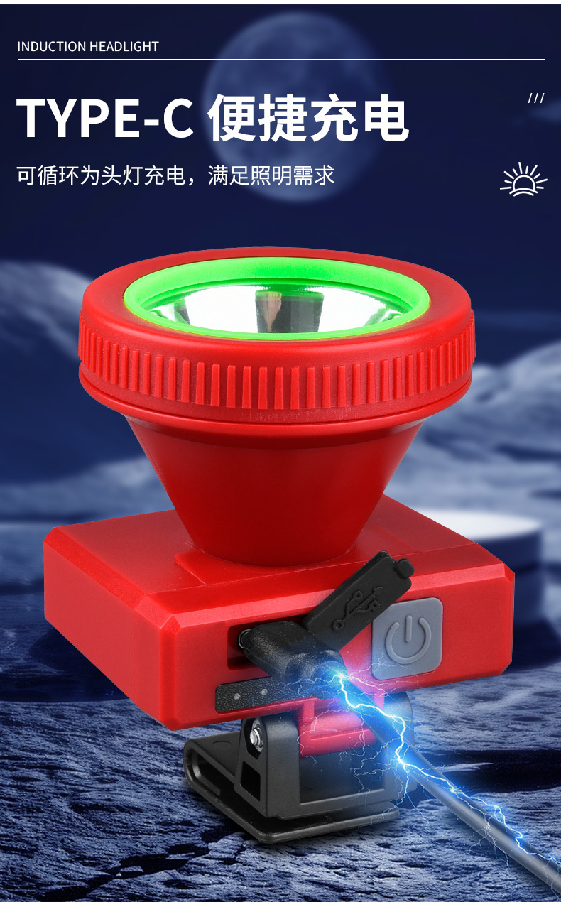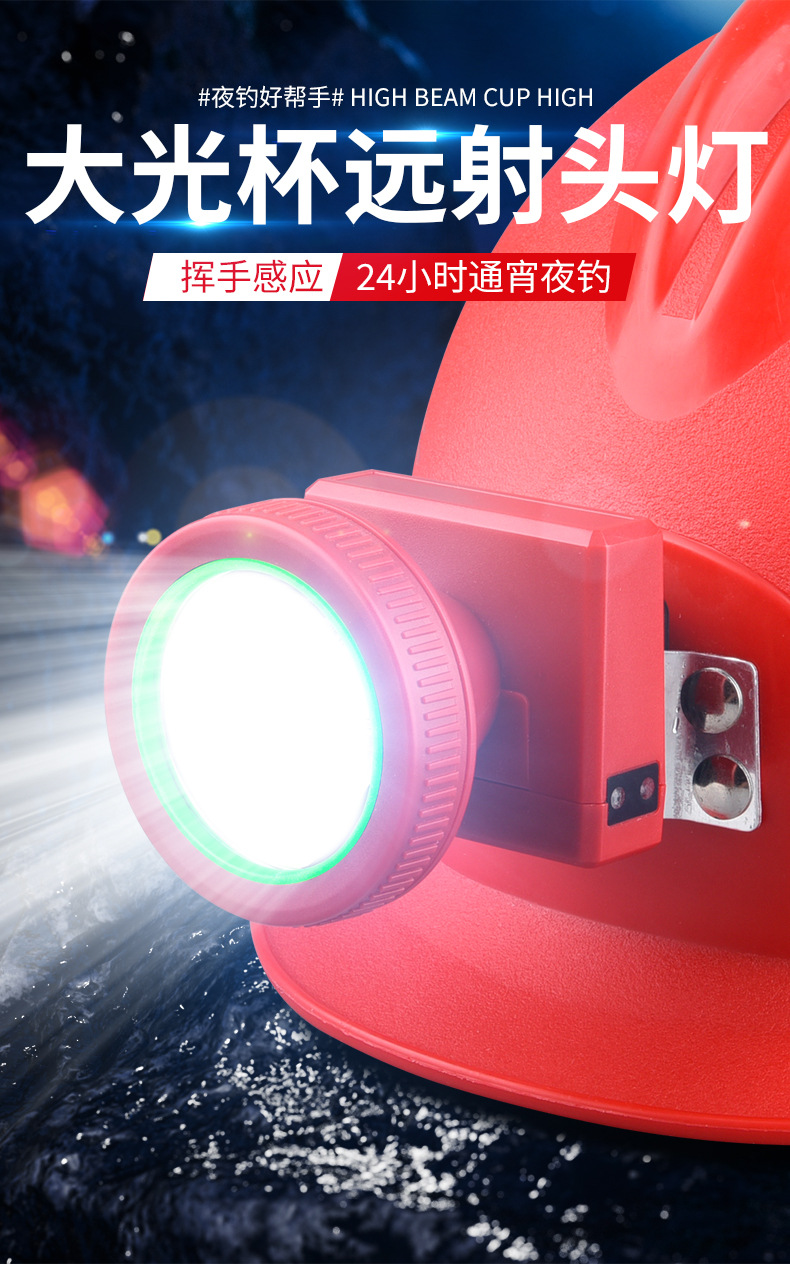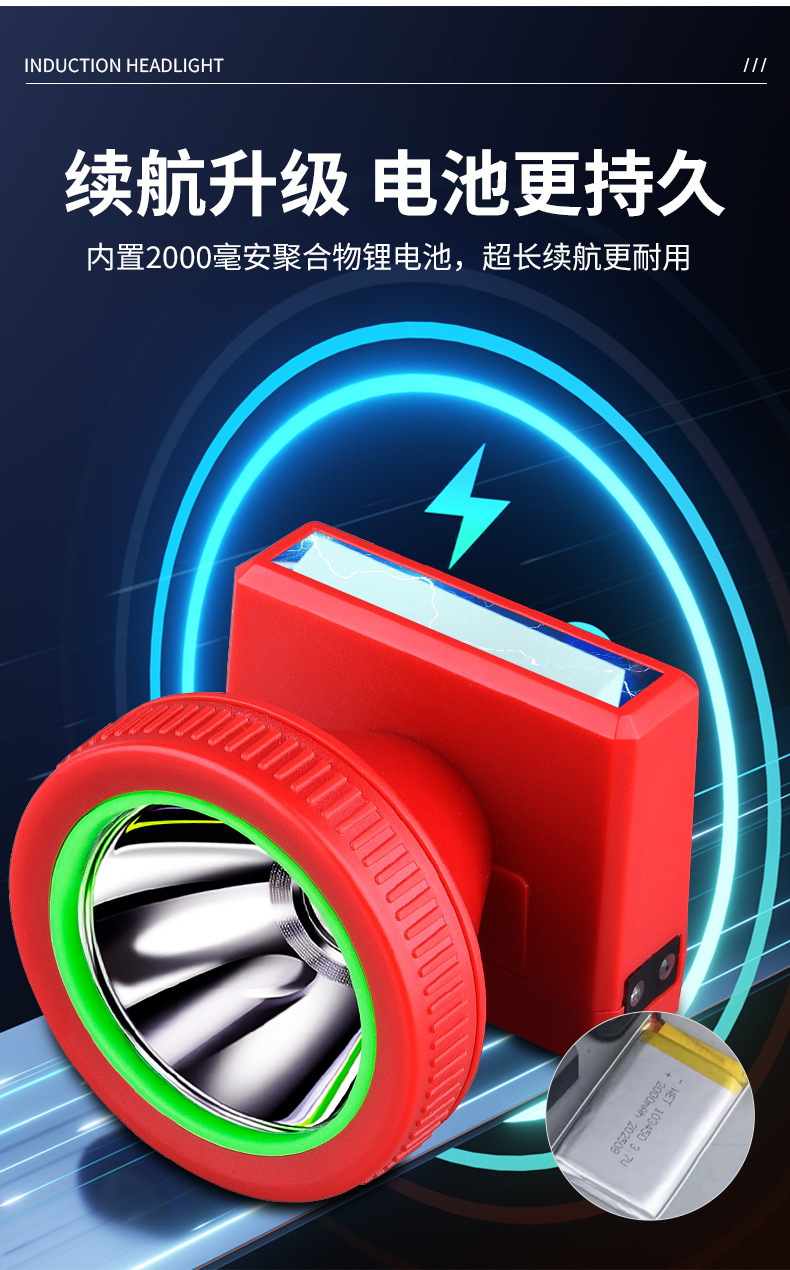LED 낚시 헤드라이트, 긴 배터리 수명, 충전식, 야외용 초고휘도 광산 램프, 헤드 장착형 조명, 손 흔드는 센서