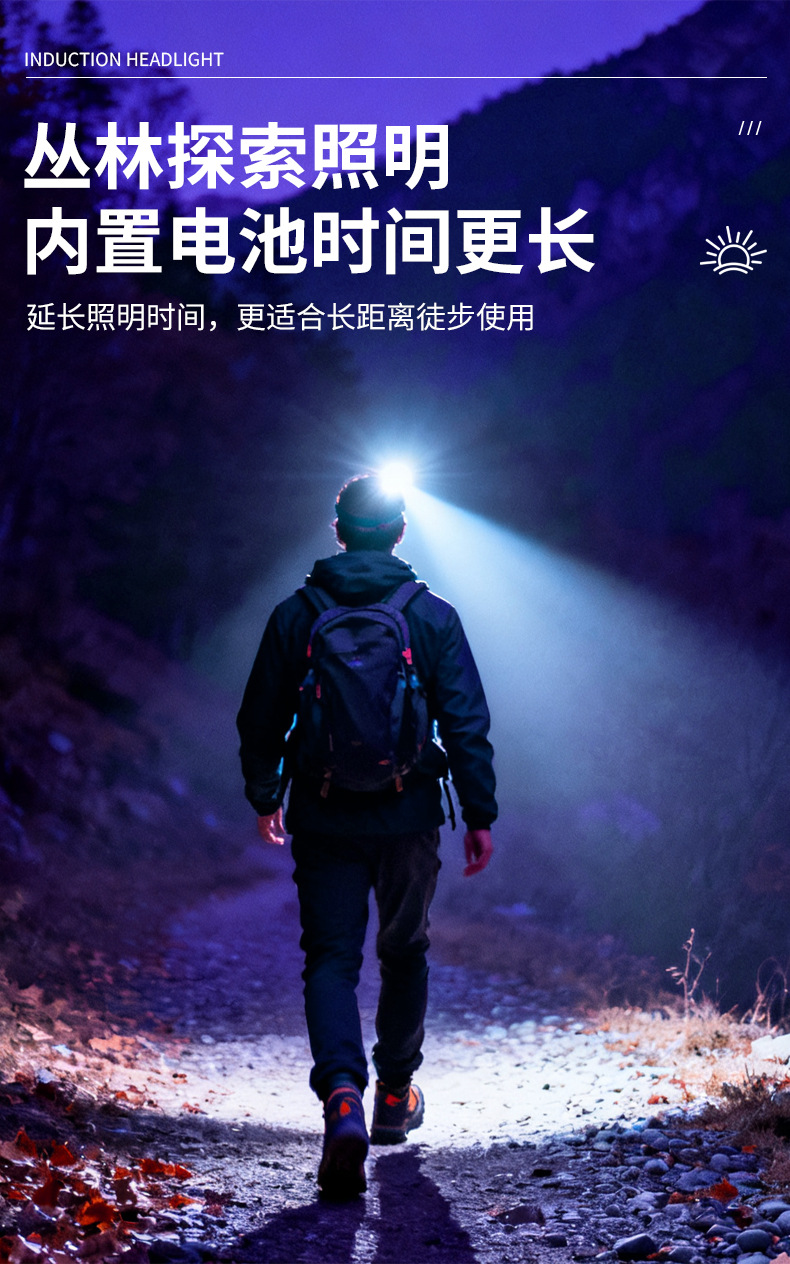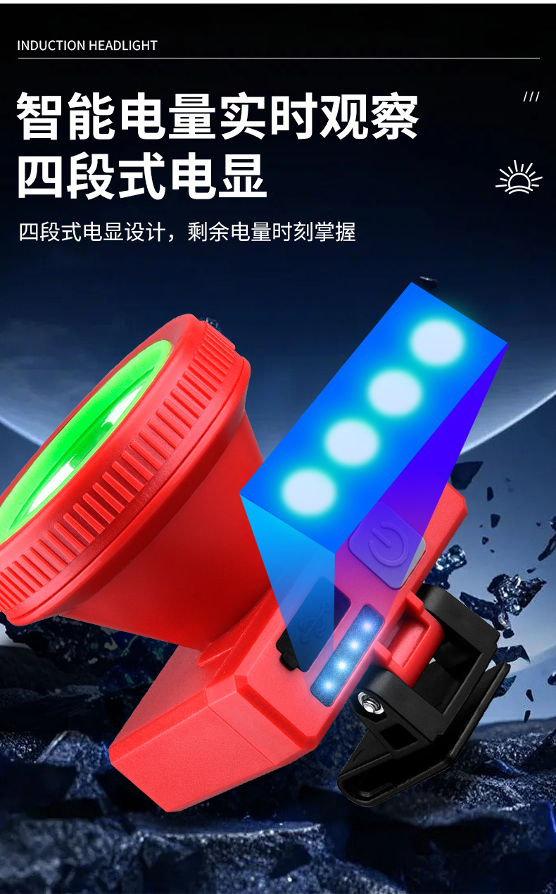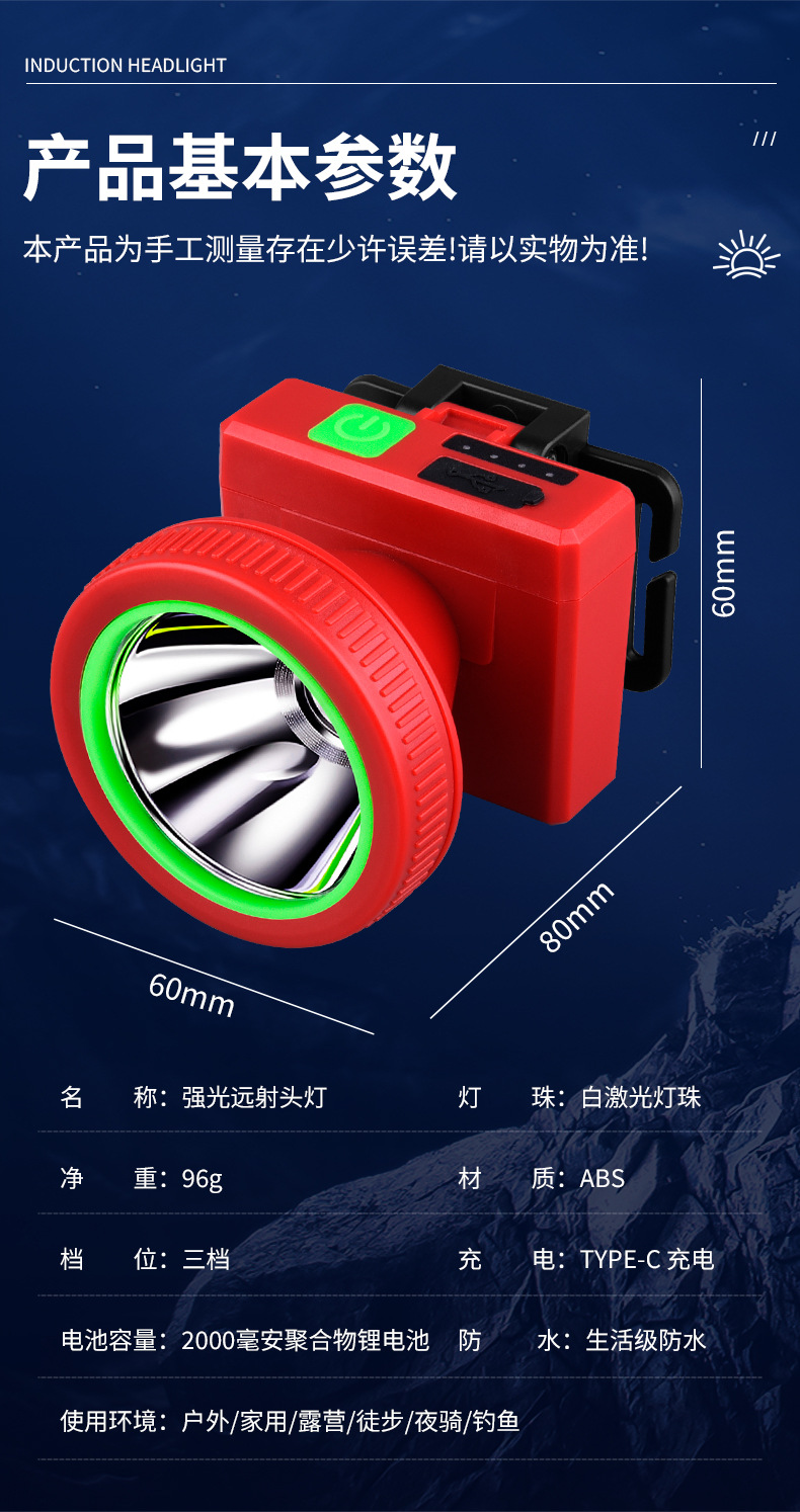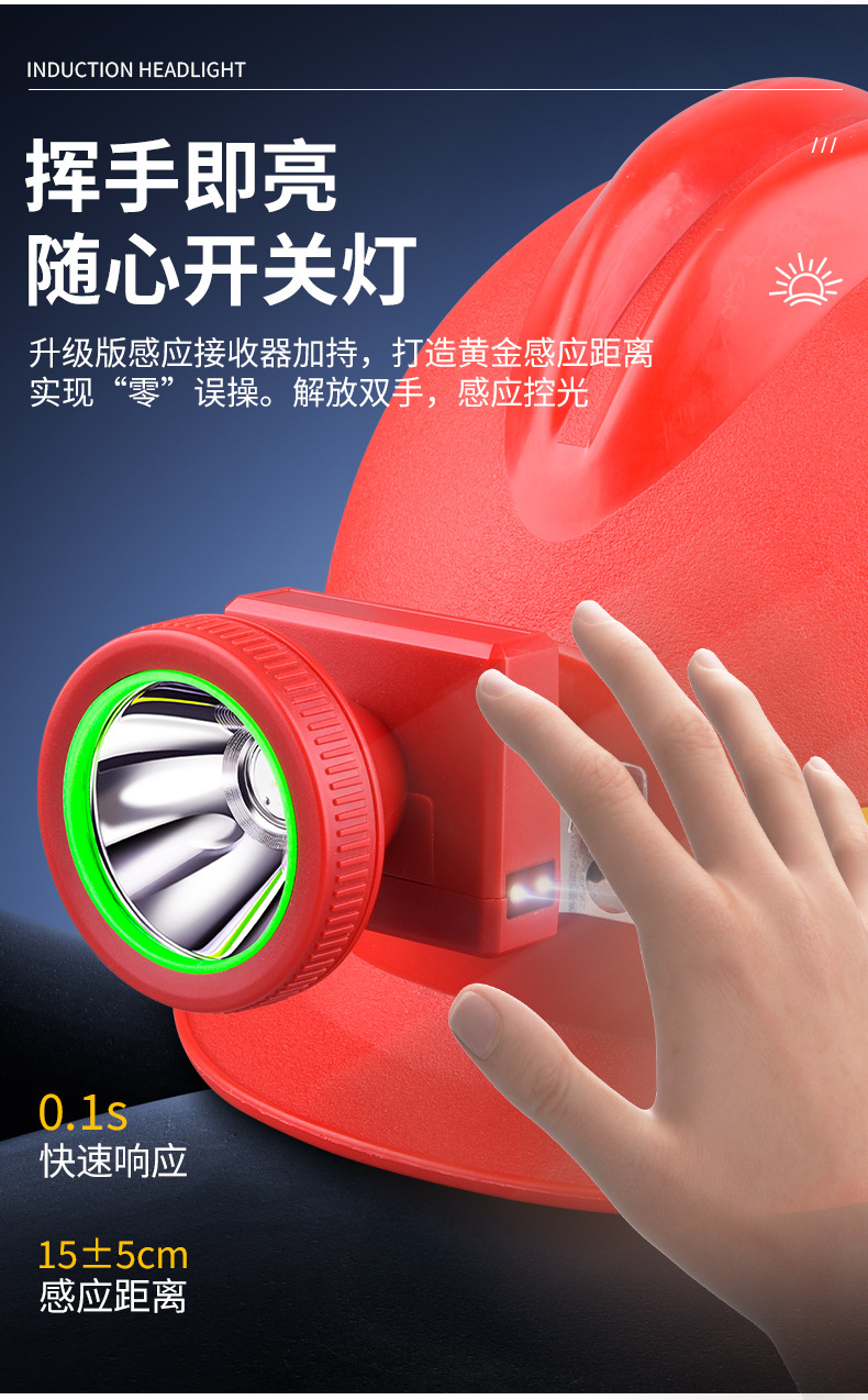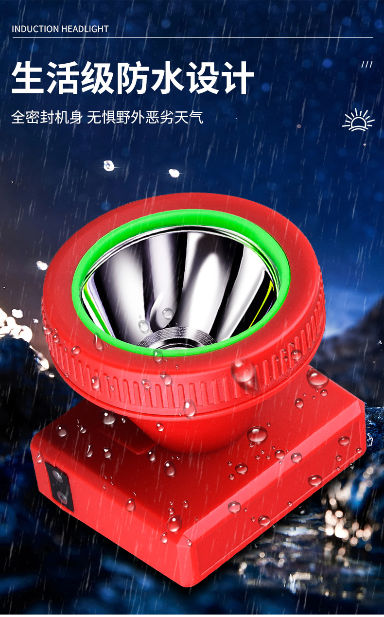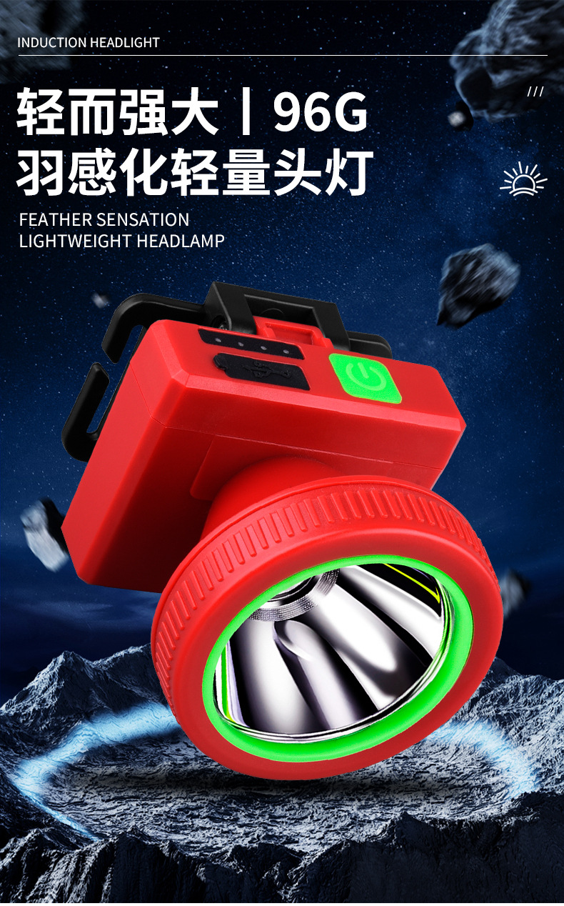 LED 낚시 헤드라이트, 긴 배터리 수명, 충전식, 야외용 초고휘도 광산 램프, 헤드 장착형 조명, 손 흔드는 센서