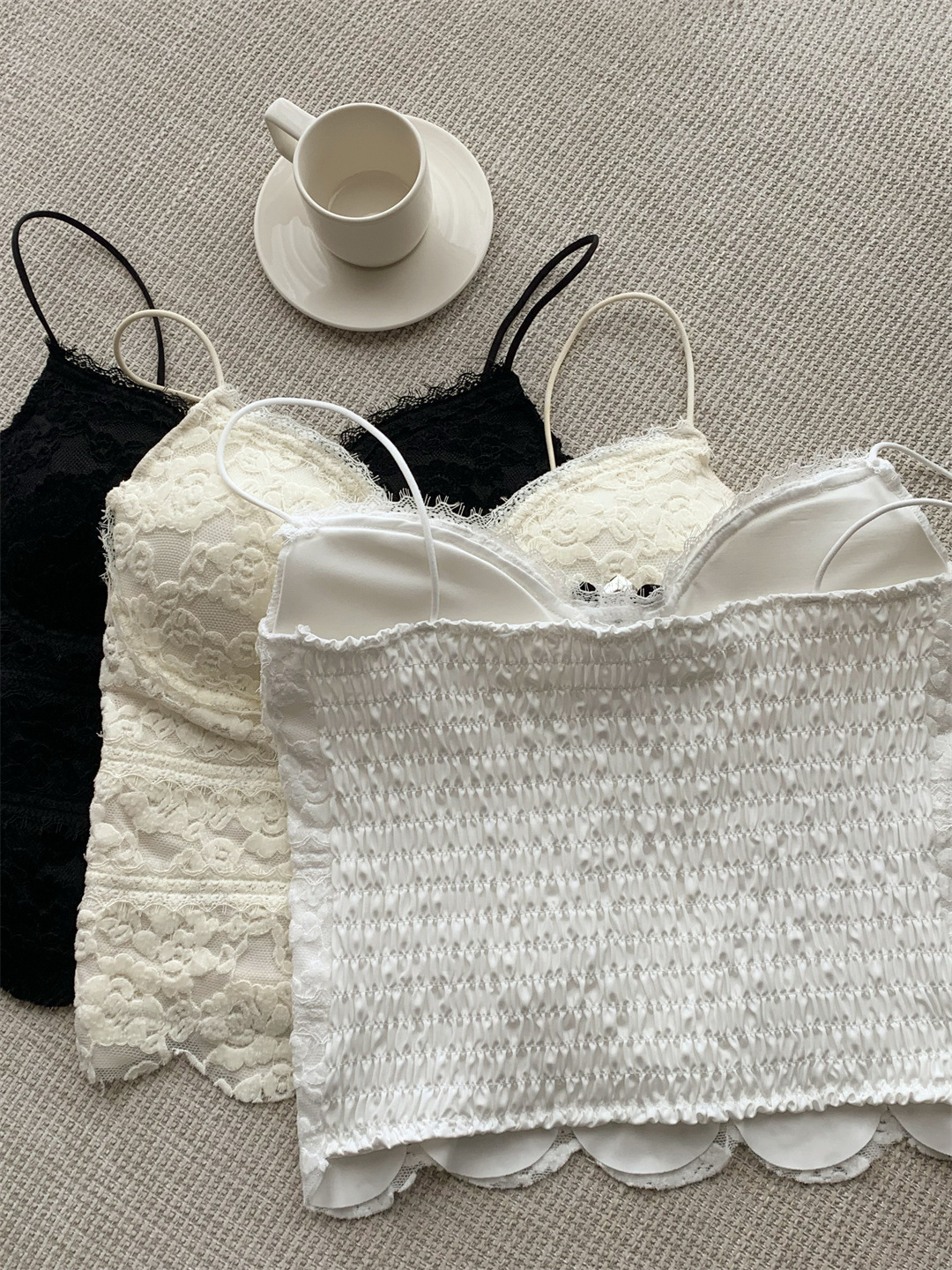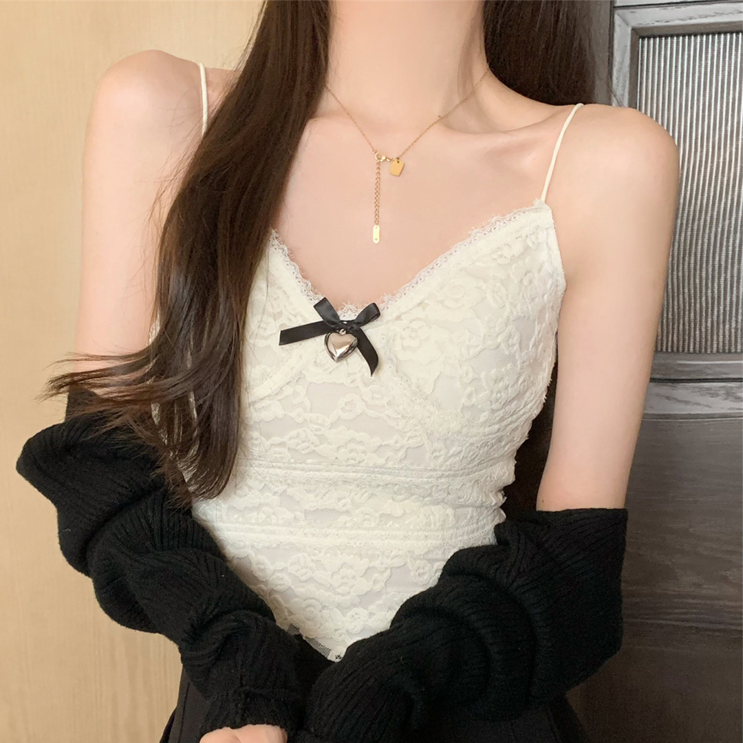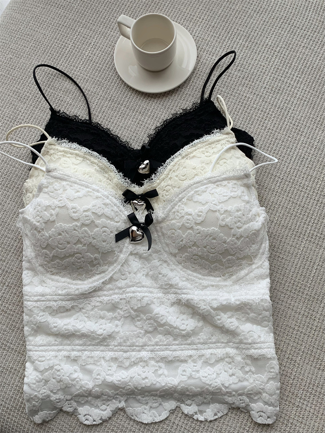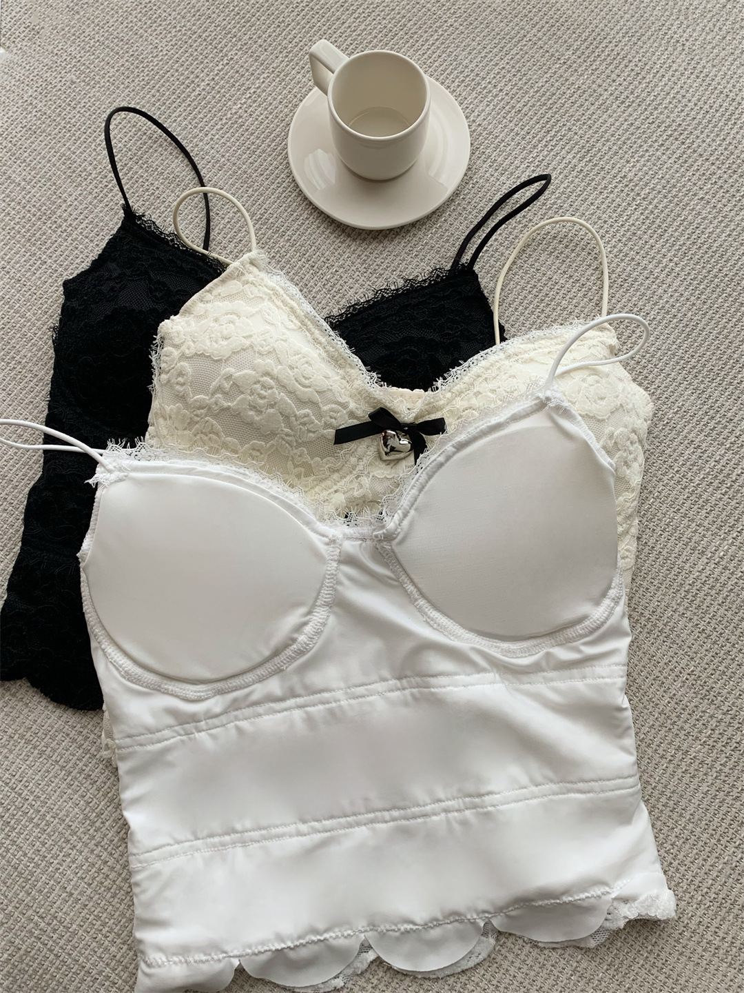 2218 # 달콤한 핫걸 레이스 아름다운 등 캐미솔 여성용 아우터 리본 아우터웨어 내부 가슴 패드 바닥
