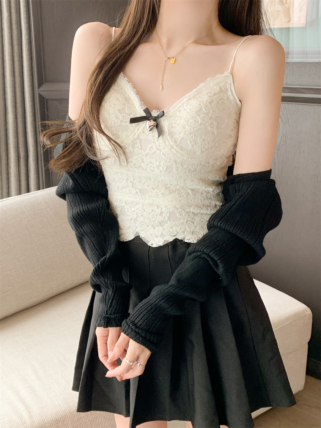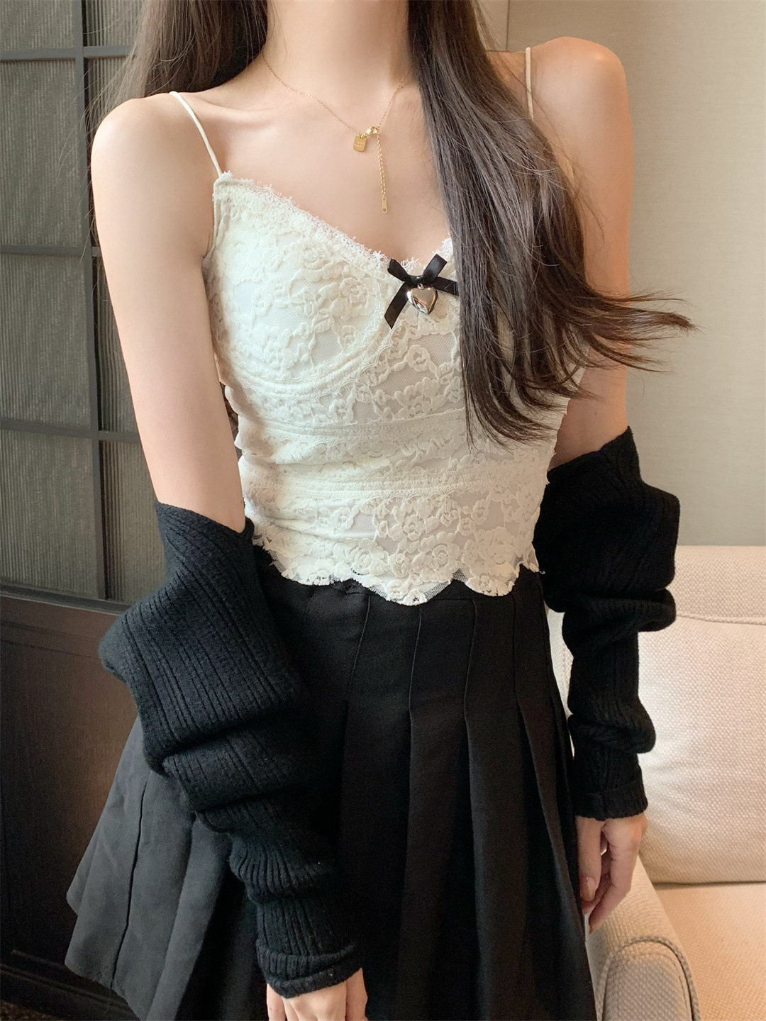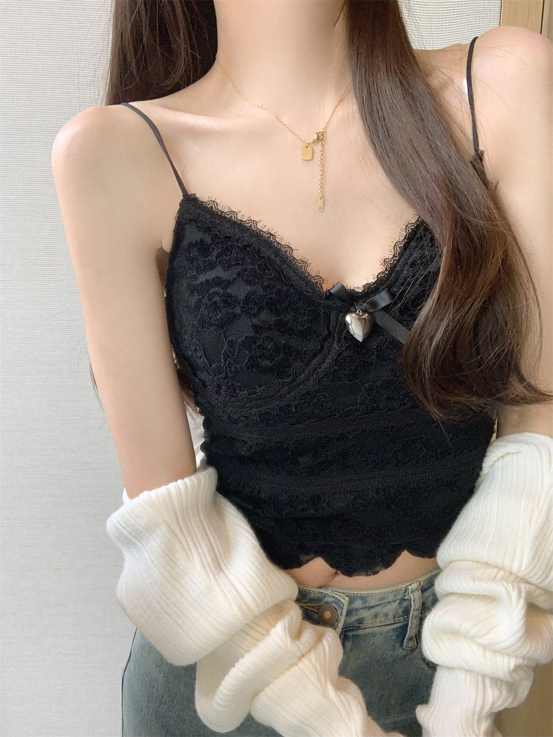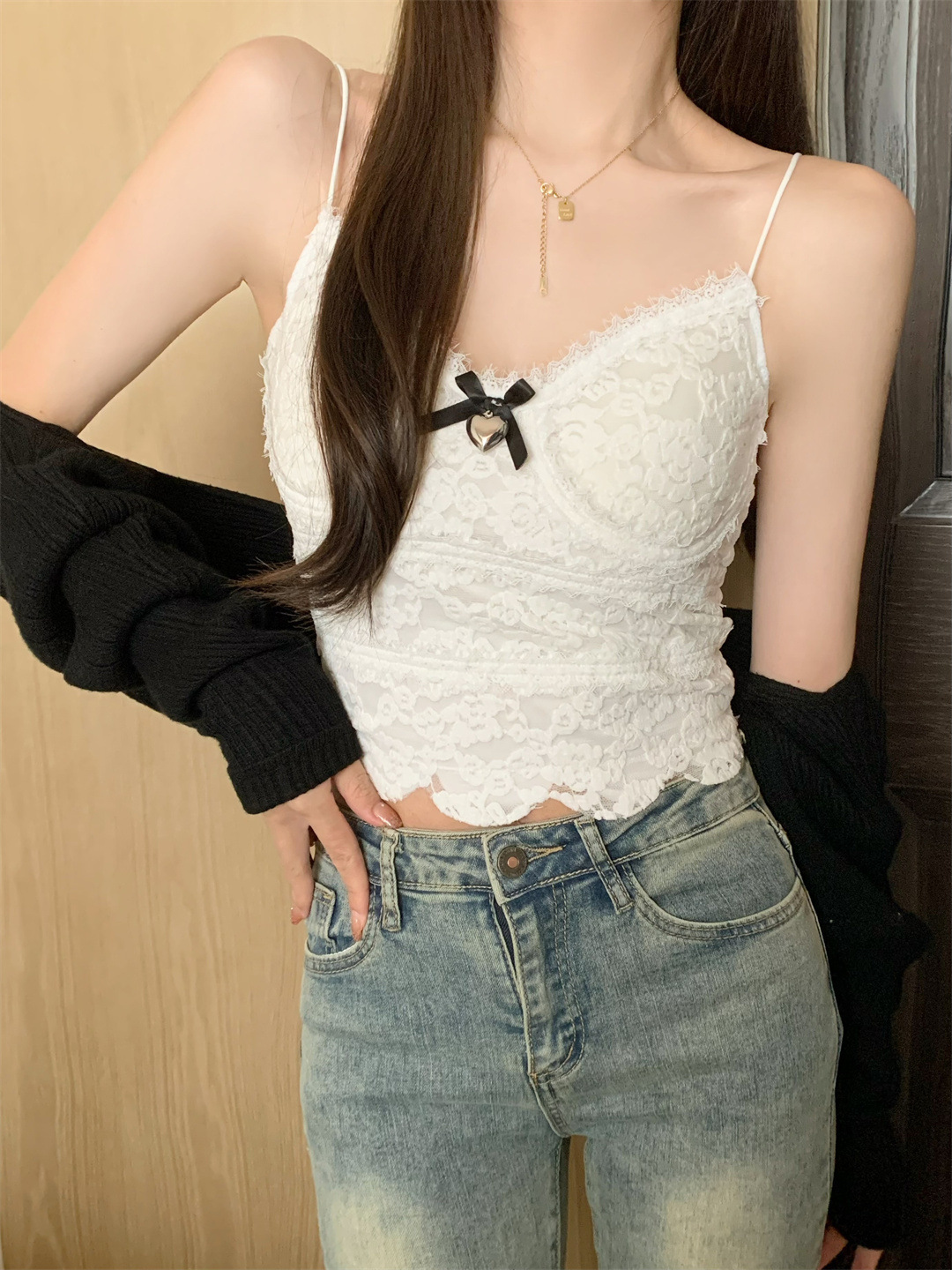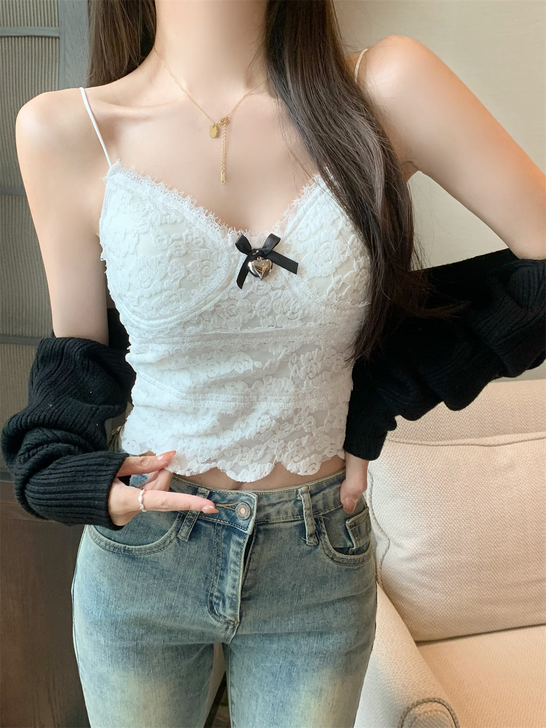 2218 # 달콤한 핫걸 레이스 아름다운 등 캐미솔 여성용 아우터 리본 아우터웨어 내부 가슴 패드 바닥스토어 가기