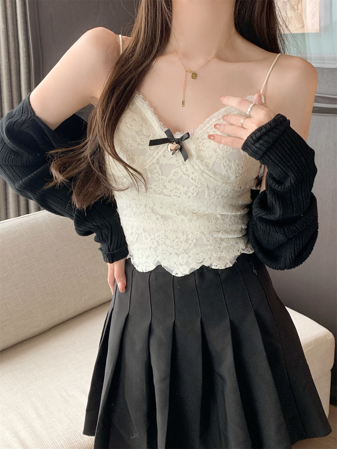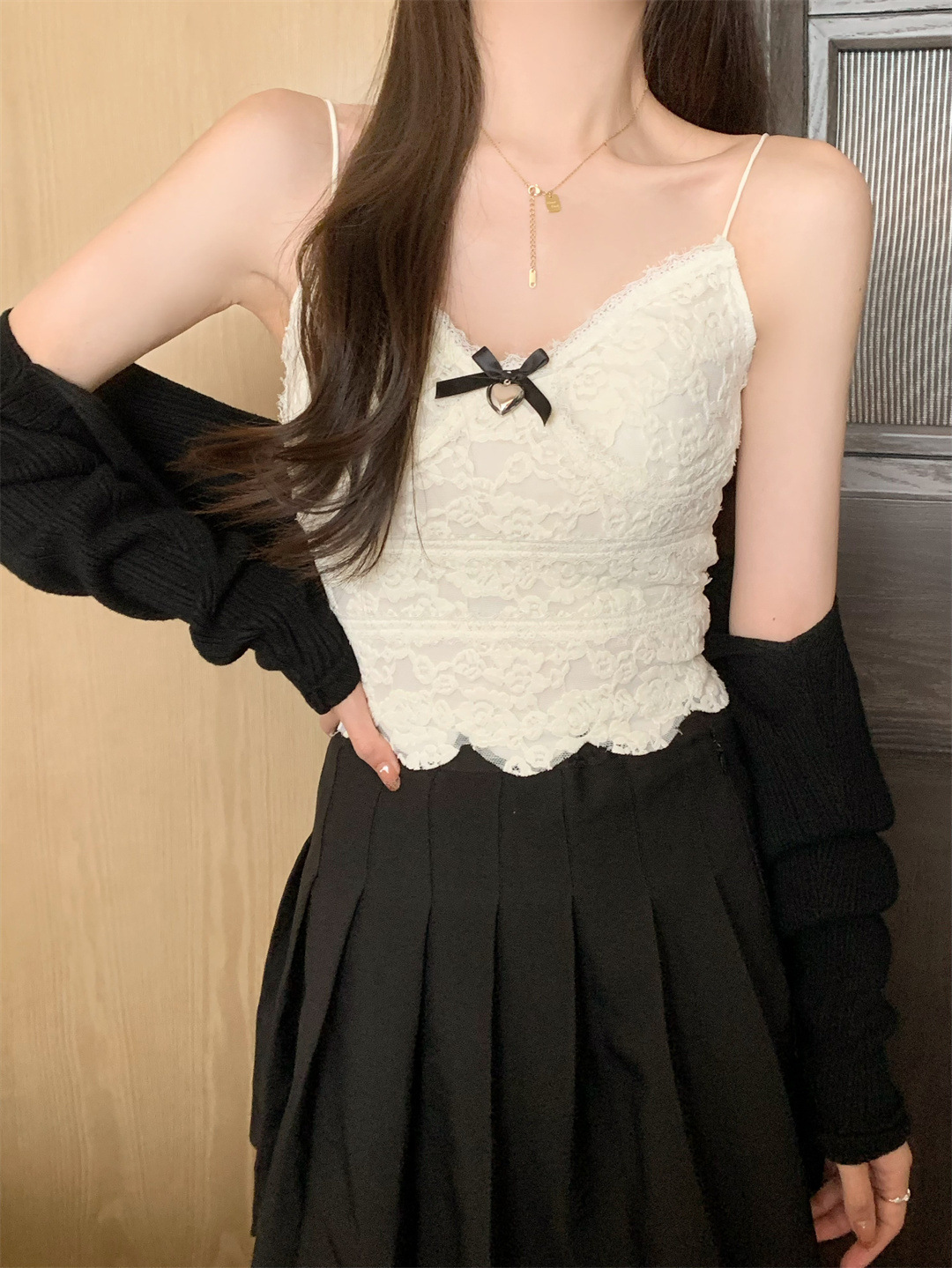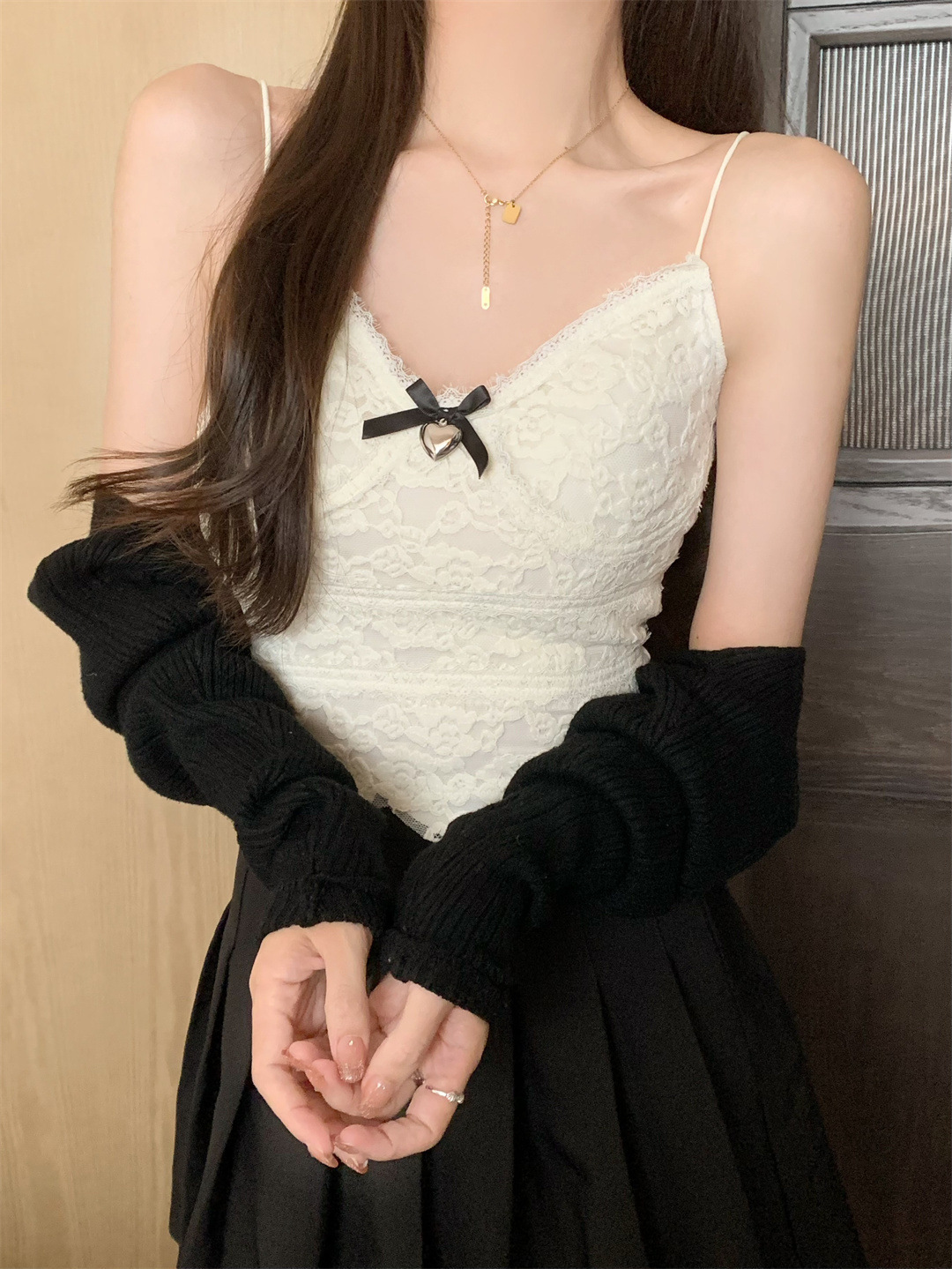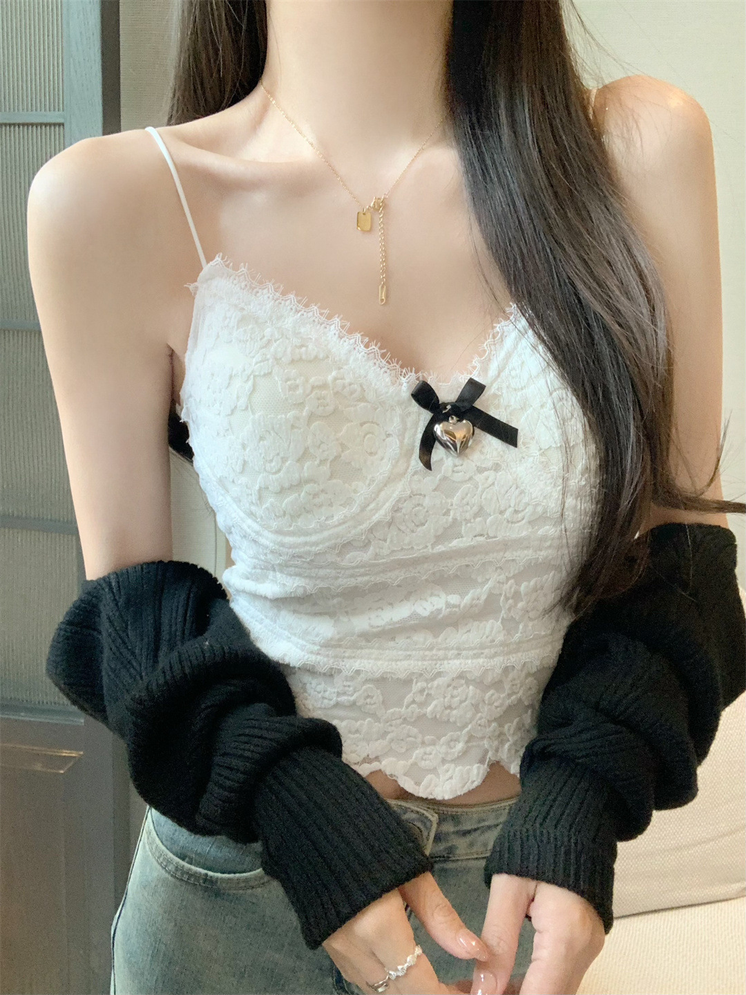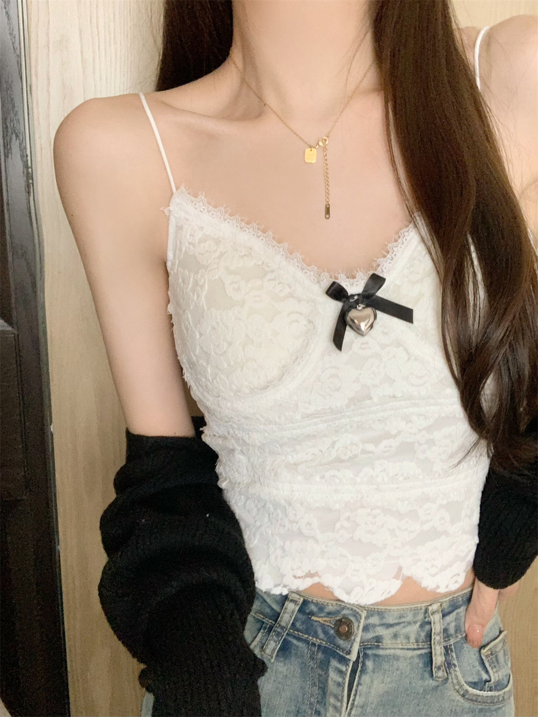 2218 # 달콤한 핫걸 레이스 아름다운 등 캐미솔 여성용 아우터 리본 아우터웨어 내부 가슴 패드 바닥스토어 가기