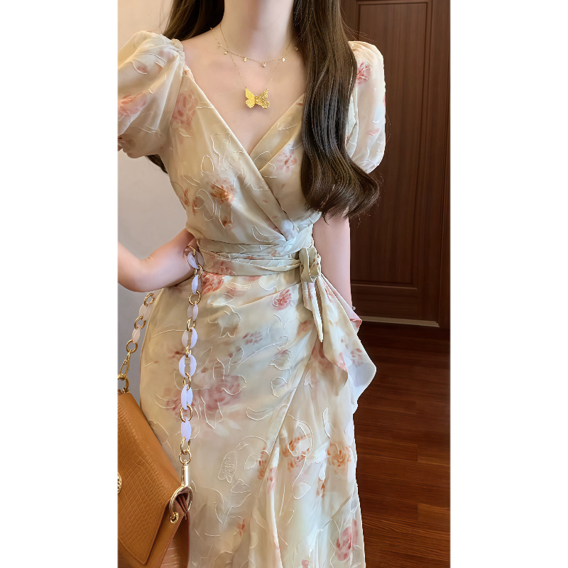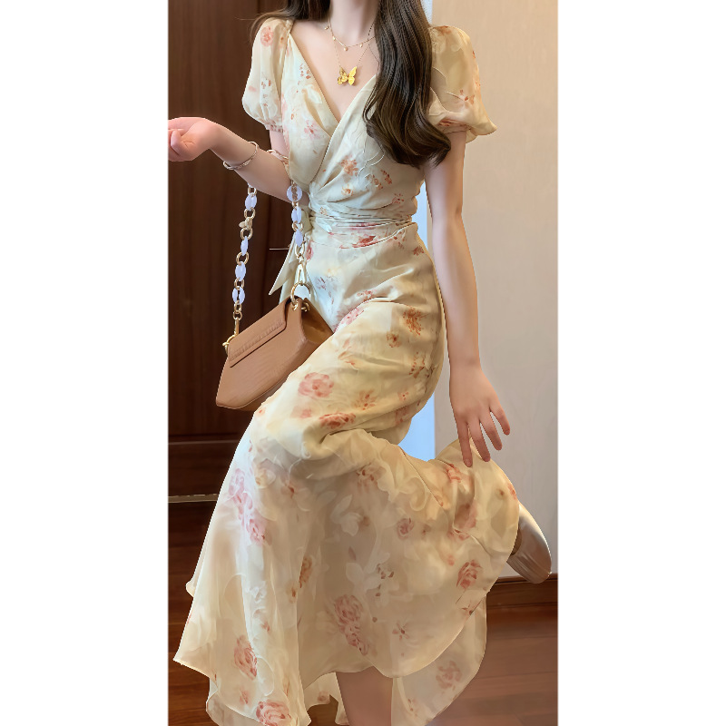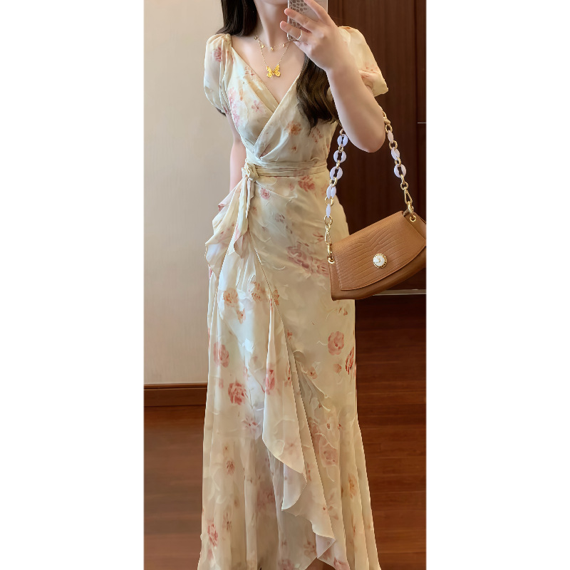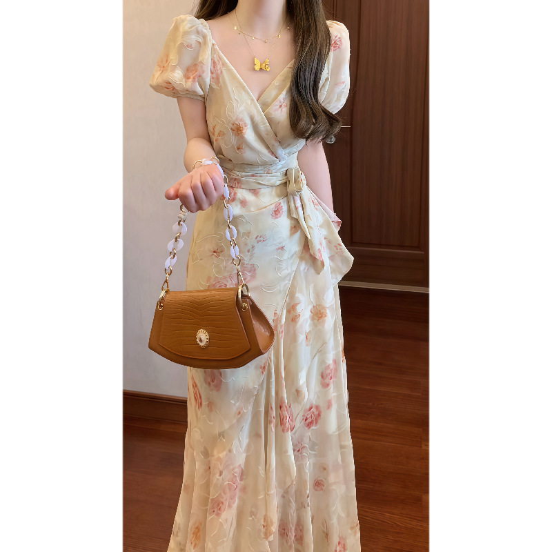 프랑스 스타일 꽃 원피스 여성 여름 2025 신년 올해 인기 폭발 해변 휴일 우아한 긴 원피스
