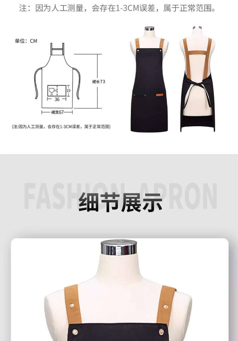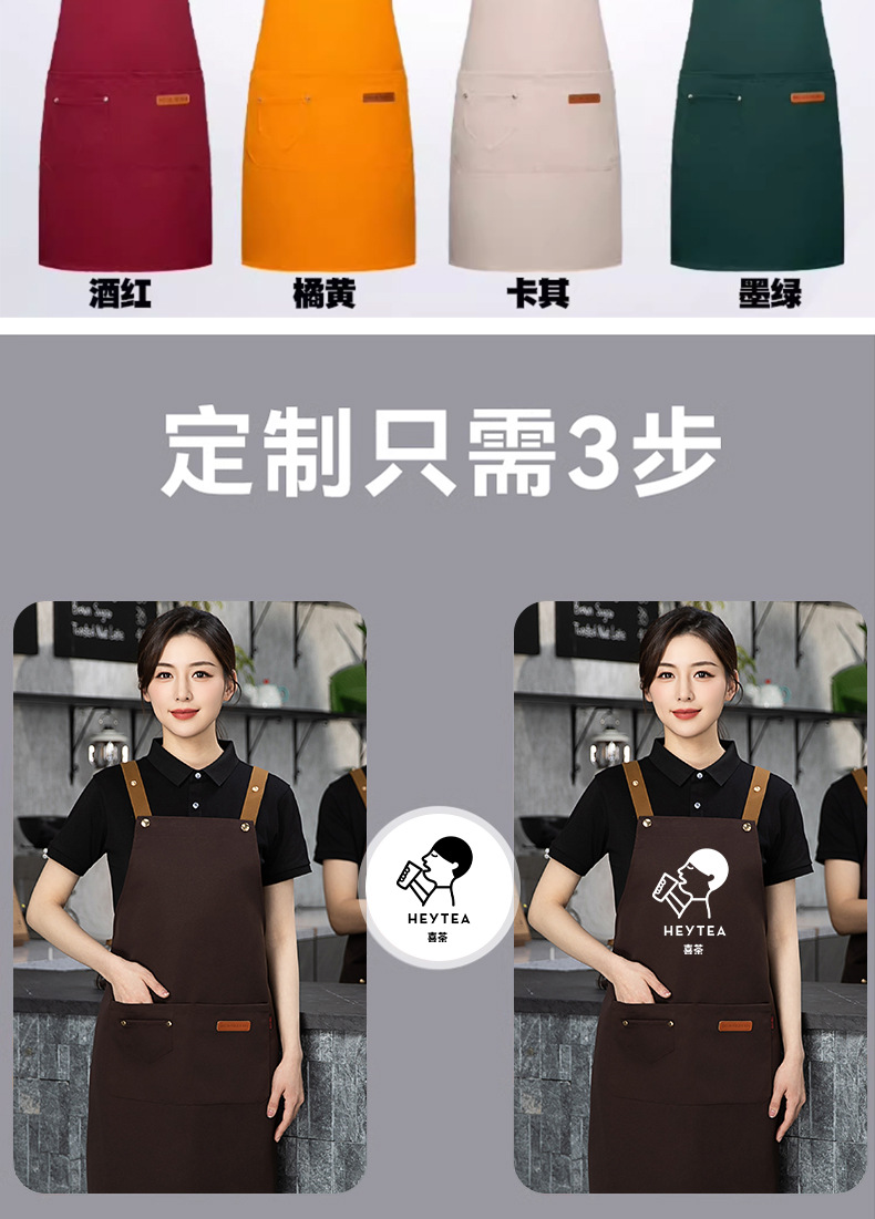 맞춤형 인쇄 방수 및 내유성 케이터링 커피 및 밀크티 샵 도매 작업복이 포함된 스팟 캔버스 앞치마스토어 가기