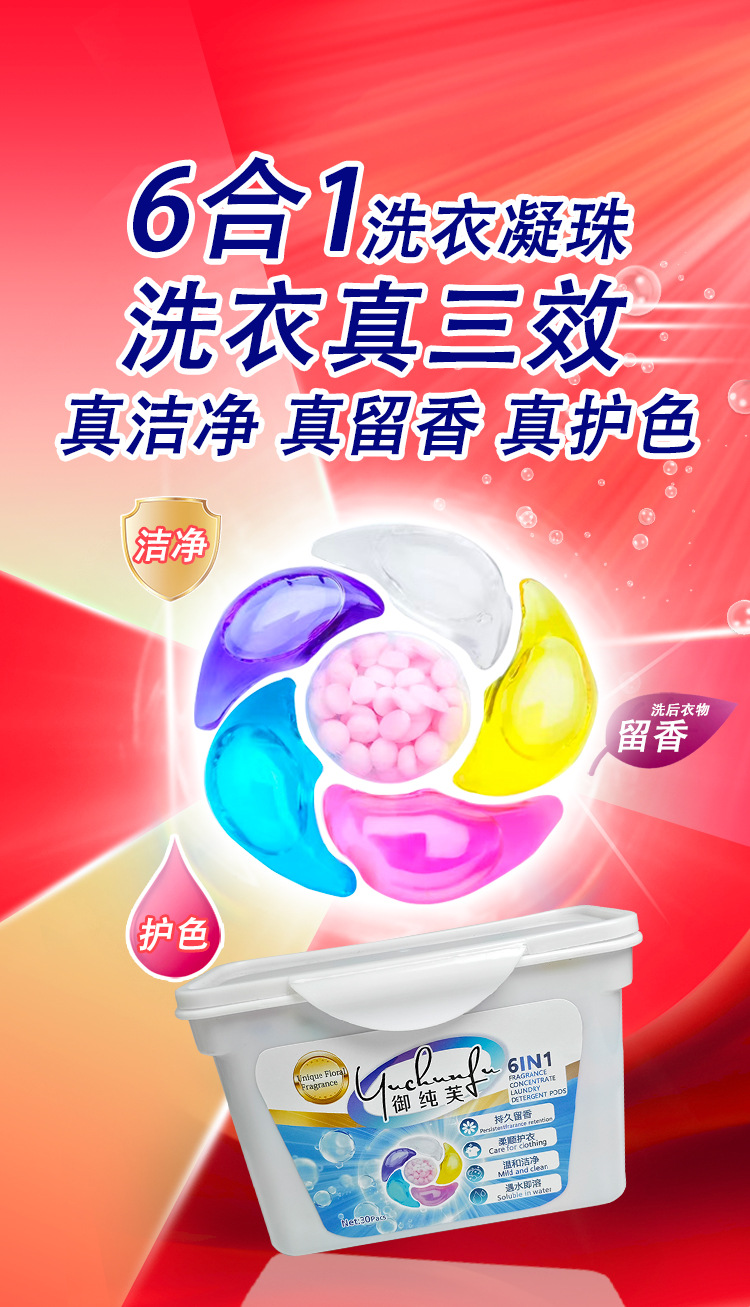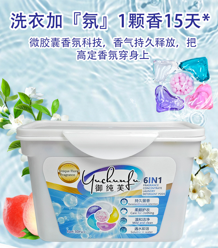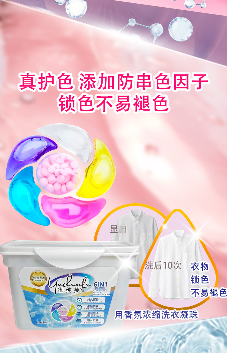 Yuchunfu 농축 4 챔버 세탁 비즈는 청소, 오염 제거 및 향기 유지를 제공합니다. 크로스 보더 영어 버전 6-in-one 세탁 비즈 제조업체스토어 가기