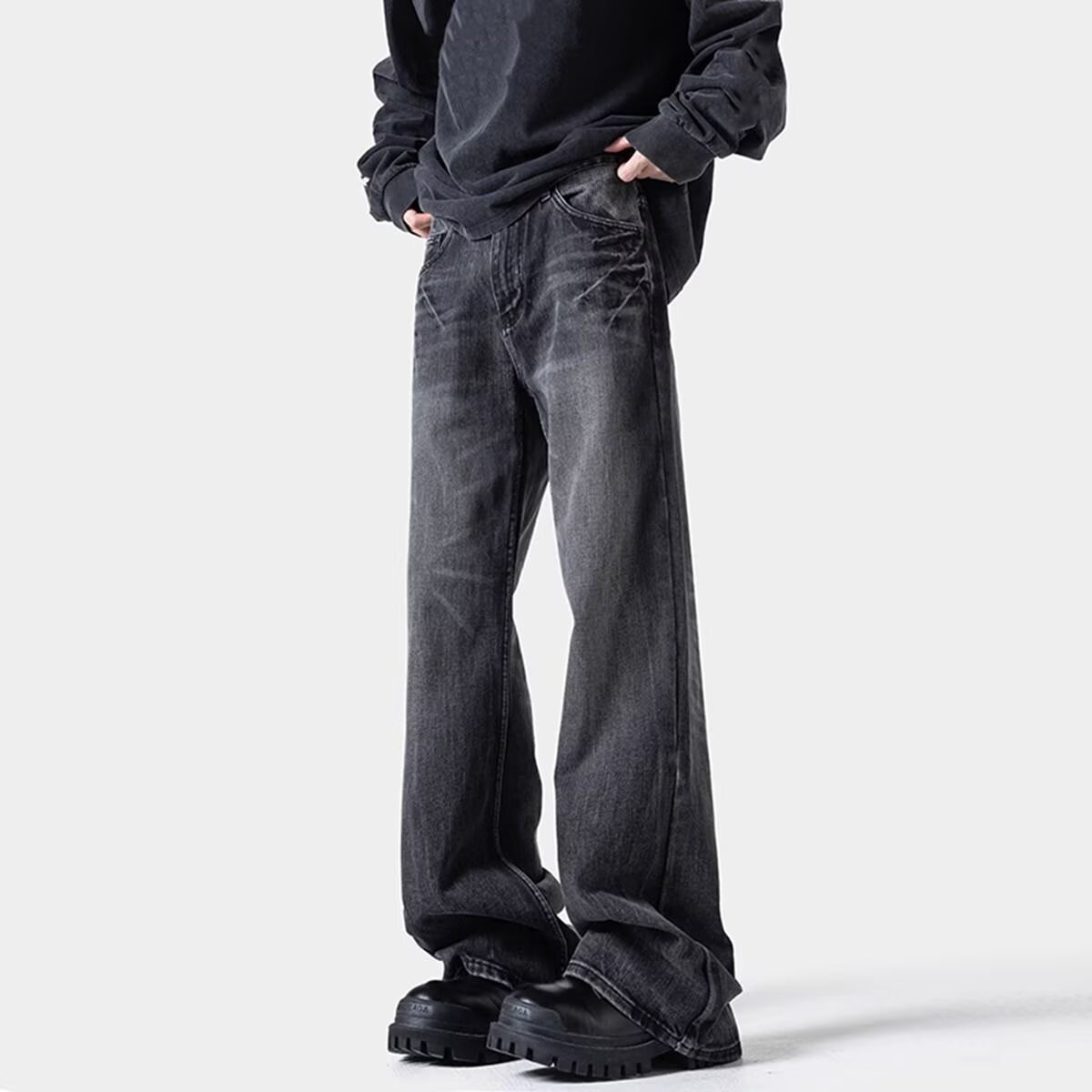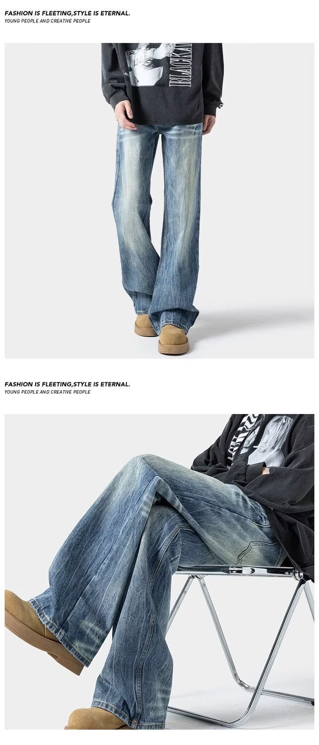 남성용 번개 패턴 마이크로 플레어 청바지 2025 봄 신작 아메리칸 레트로 워시 다용도 루즈 스트레이트 롱 팬츠스토어 가기