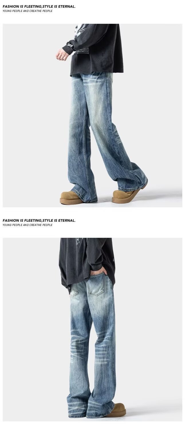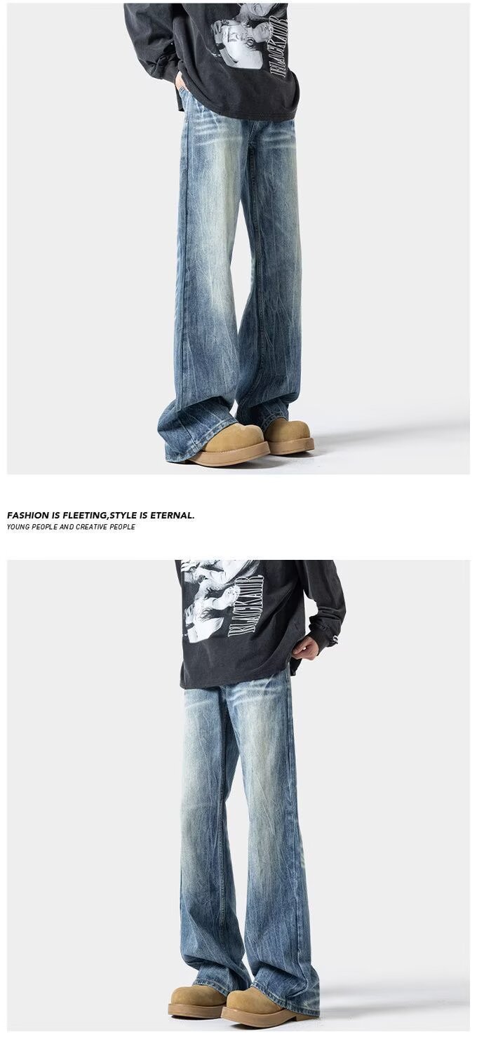 남성용 번개 패턴 마이크로 플레어 청바지 2025 봄 신작 아메리칸 레트로 워시 다용도 루즈 스트레이트 롱 팬츠