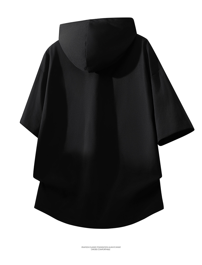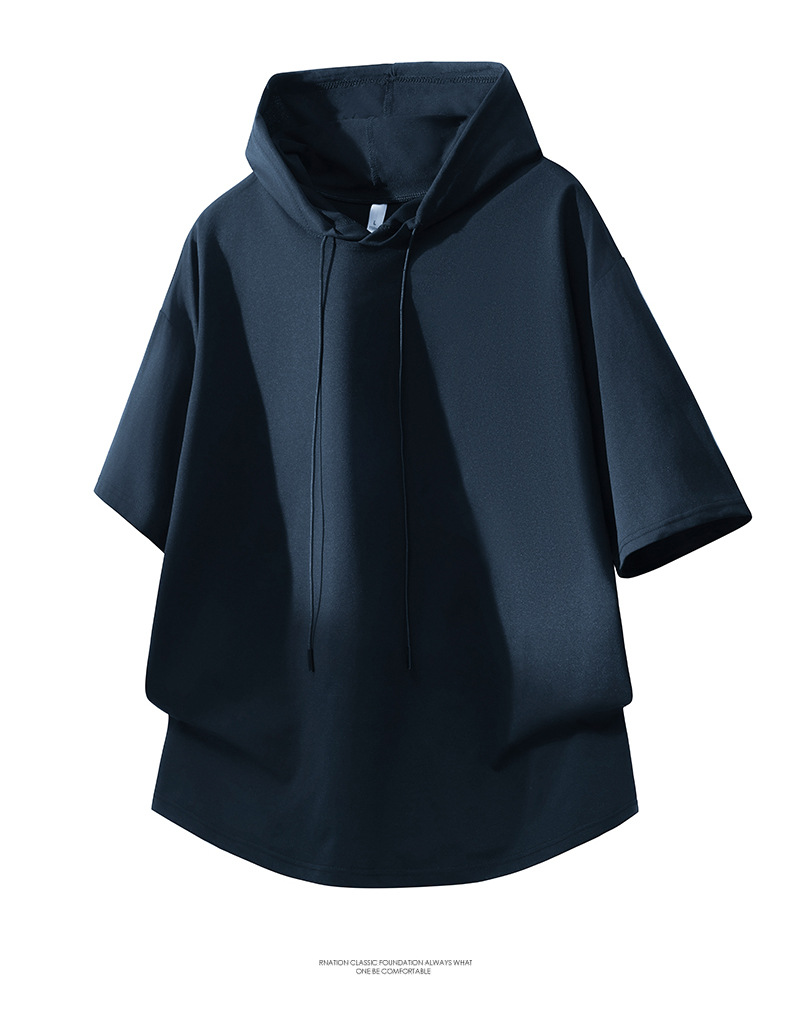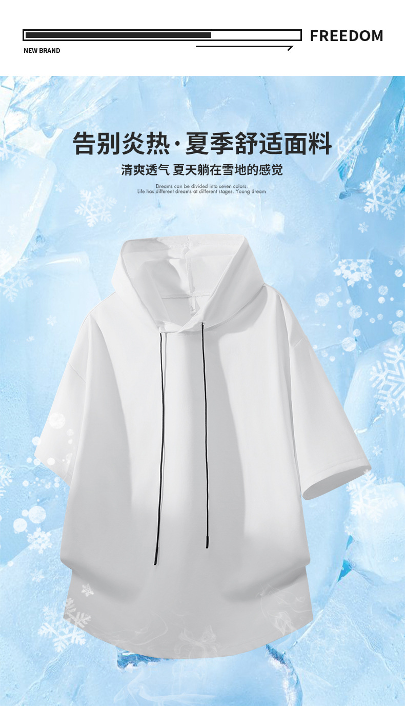 야외 등산 남성용 후드 티셔츠 여름 얼음 실크 속건성 얇은 스포츠 및 레저 탑은 느슨하고 통기성이 뛰어나며 다재다능합니다.