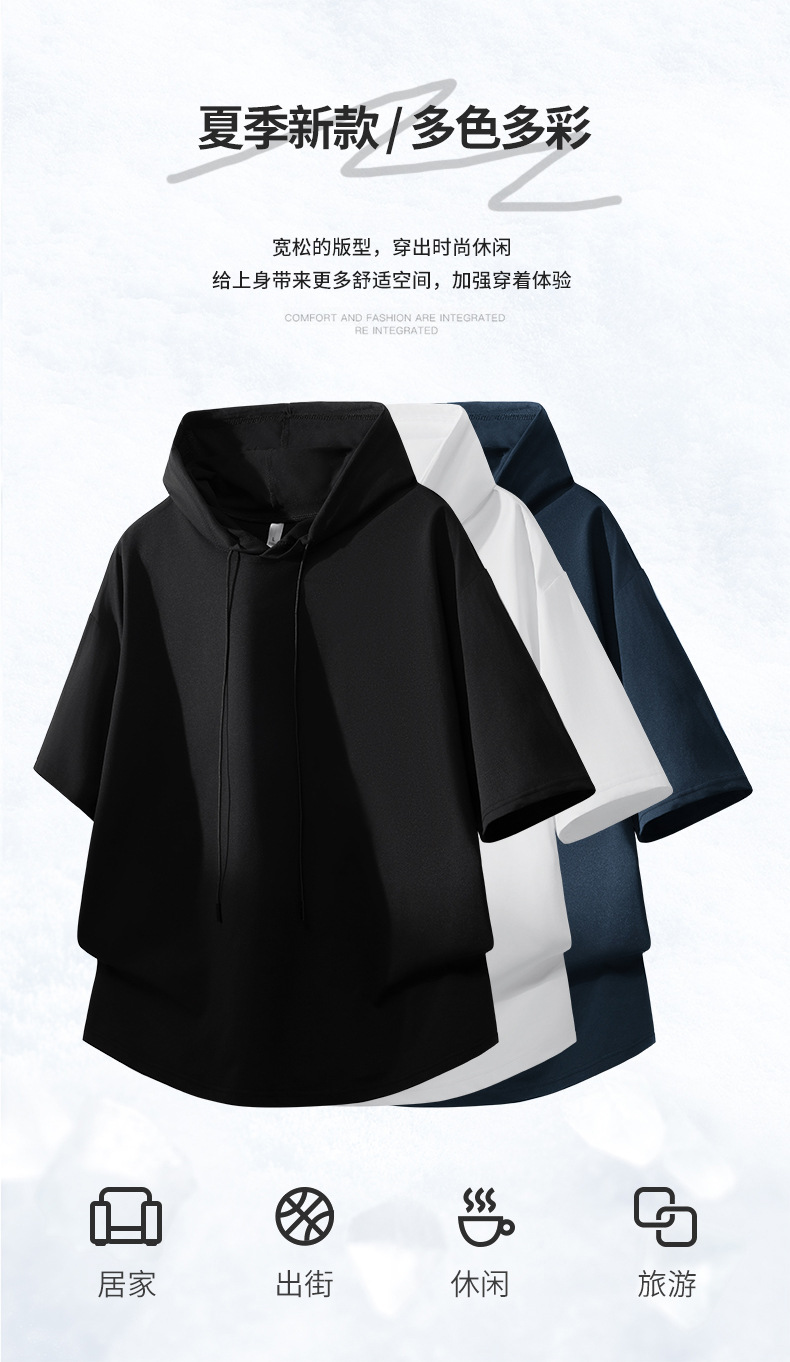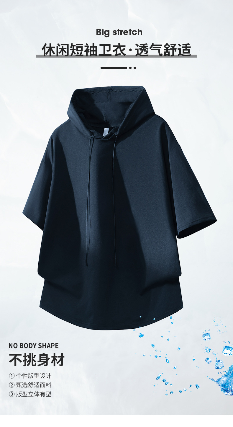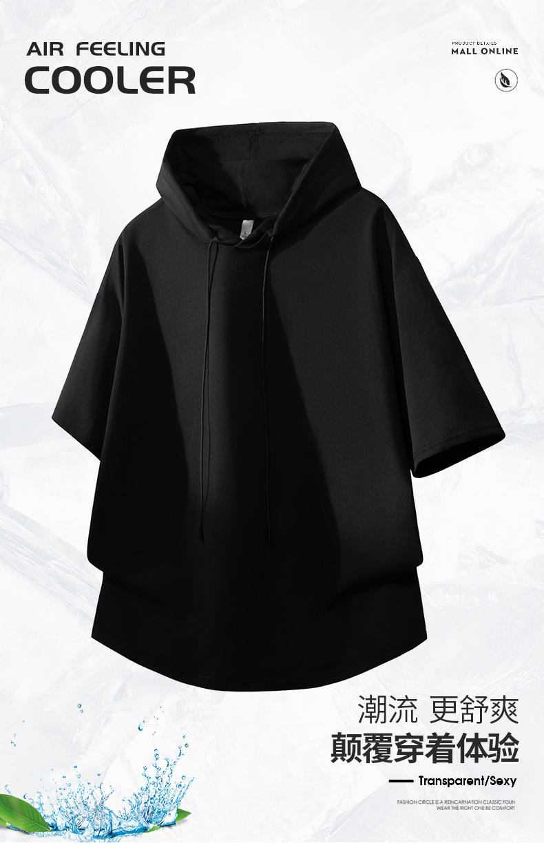 야외 등산 남성용 후드 티셔츠 여름 얼음 실크 속건성 얇은 스포츠 및 레저 탑은 느슨하고 통기성이 뛰어나며 다재다능합니다.스토어 가기