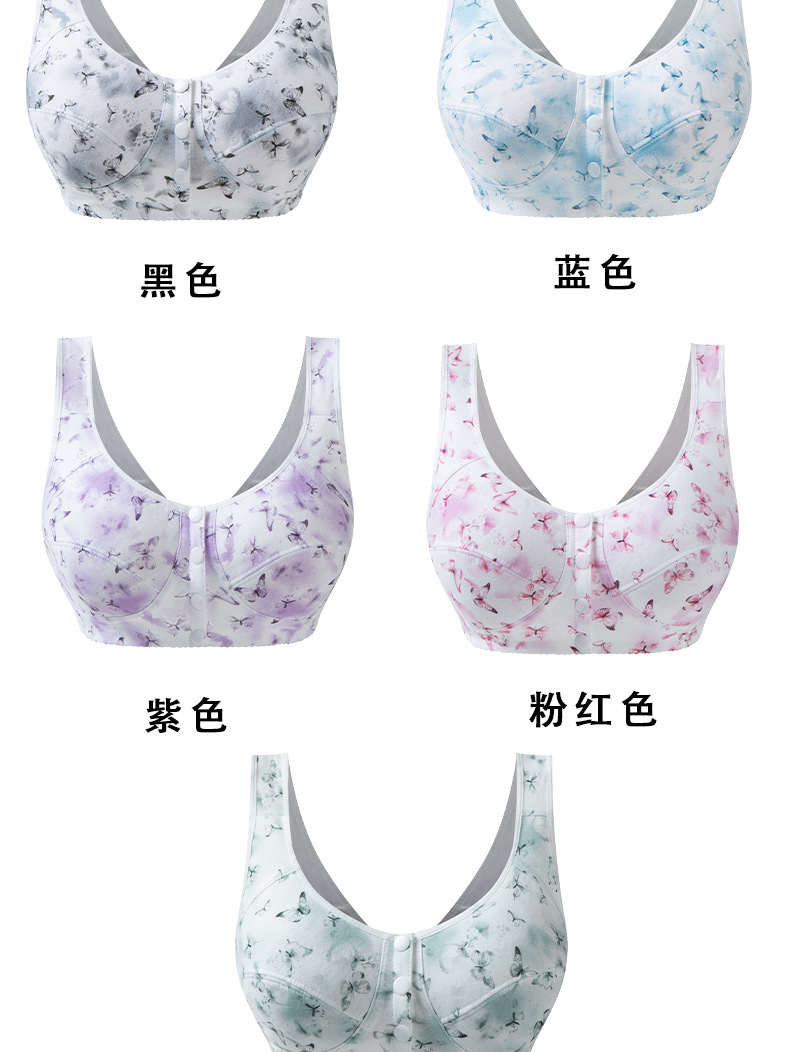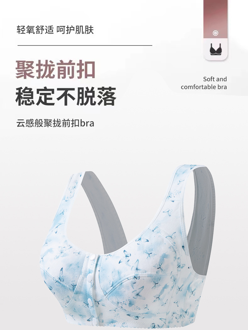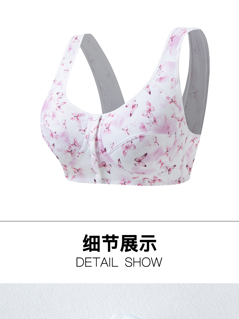 중년 및 노인 어머니 브래지어 순면 중년 및 노인 속옷 여성 와이어 프리 프론트 버클 얇은 조끼 스타일 브래지어