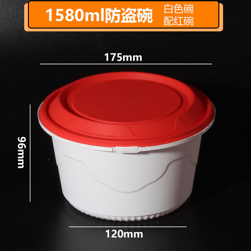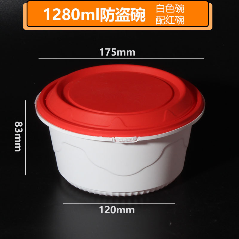 • 플래그십 1280ml 누수방지 도난그릇(150세트) 빨간뚜껑이 있는 흰색 그릇