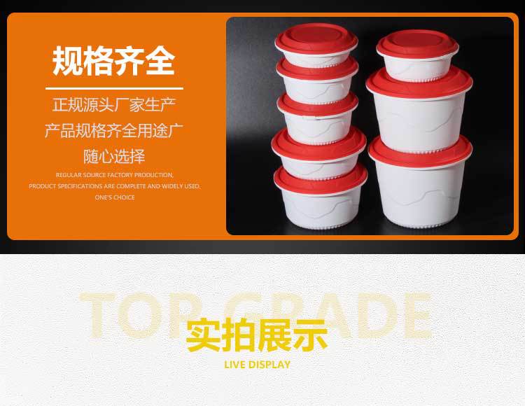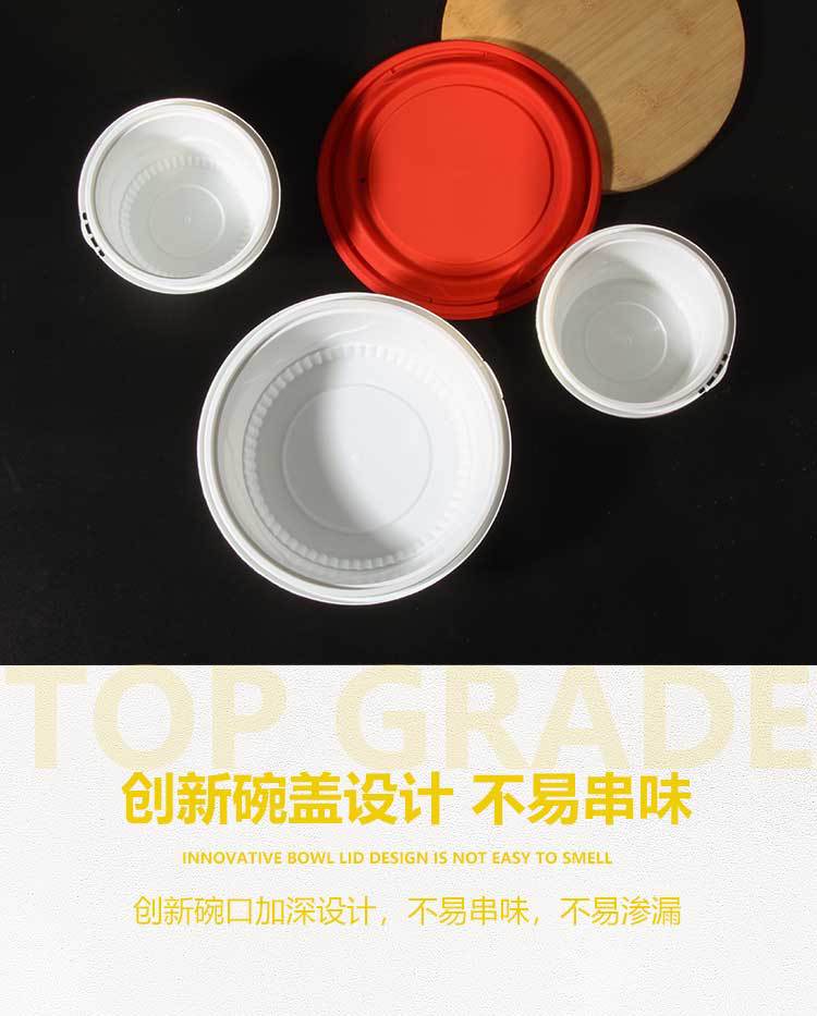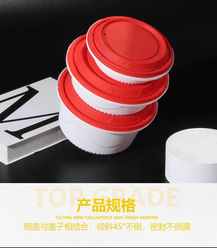 • 플래그십 1080ml 누수방지 그릇 (빨간색 뚜껑이 달린 흰색 그릇 150세트)