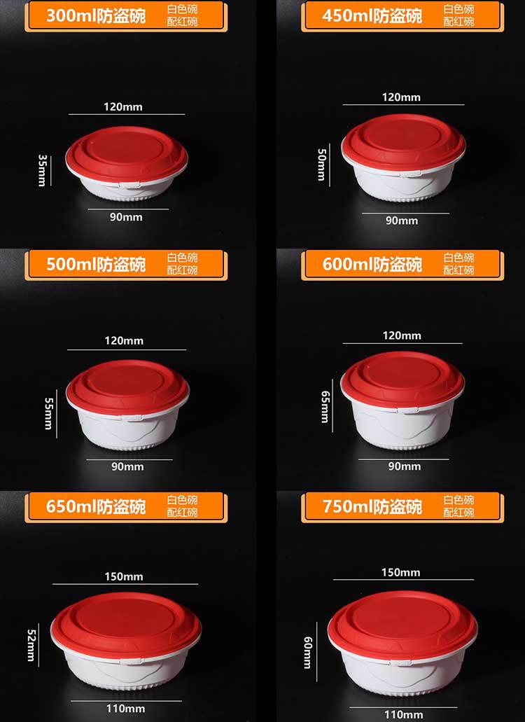 • 플래그십 750ml 누수방지 도난그릇(150세트) 빨간색 뚜껑이 있는 흰색 그릇