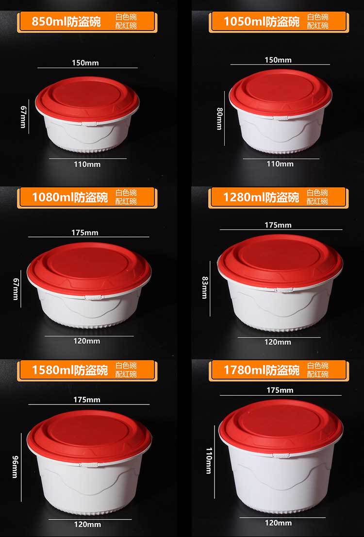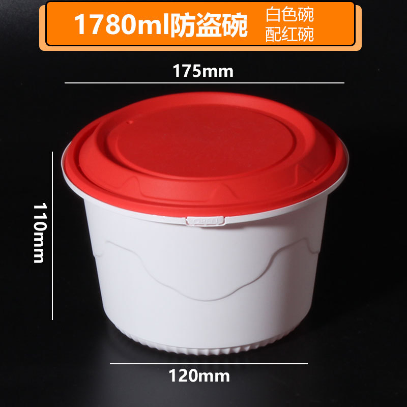 • 플래그십 1780ml 누수방지 도난그릇(150세트) 빨간색 뚜껑이 있는 흰색 그릇