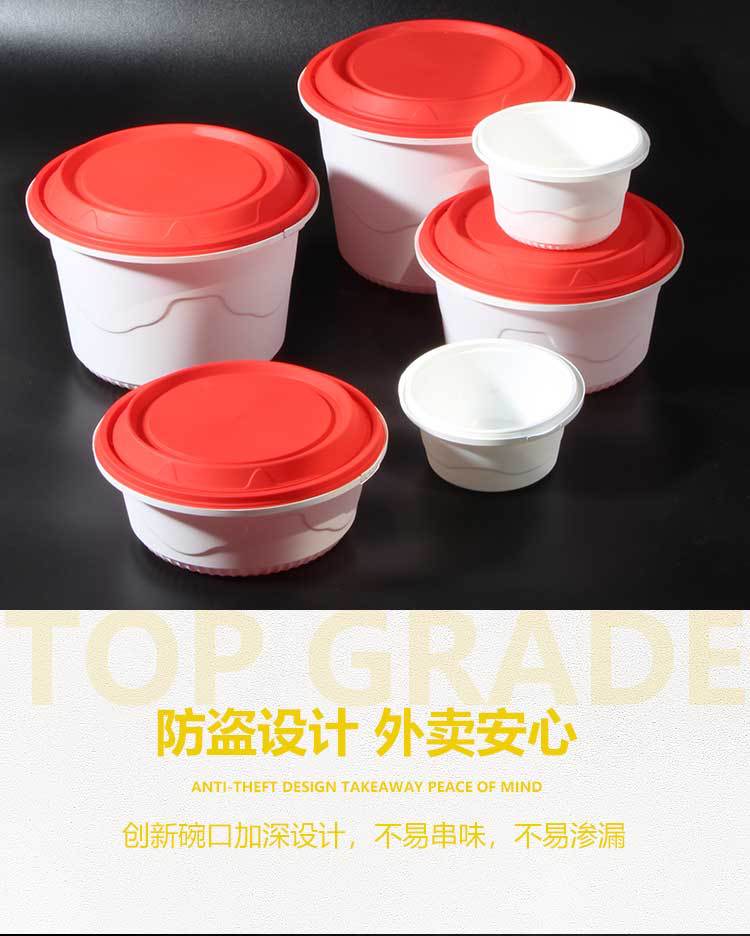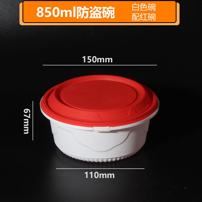 • 플래그십 850ml 누수방지 도난그릇(150세트) 빨간색 뚜껑이 있는 흰색 그릇