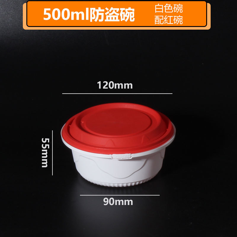 • 플래그십 500ml 누수방지 도난그릇(150세트) 빨간색 뚜껑이 있는 흰색 그릇