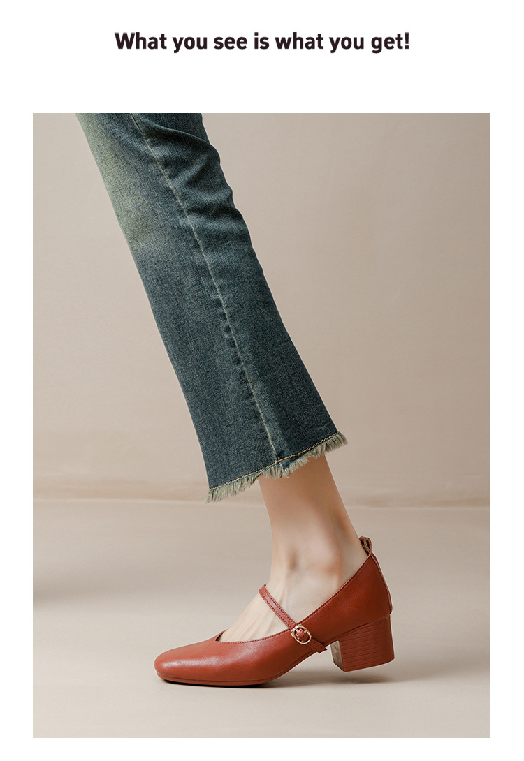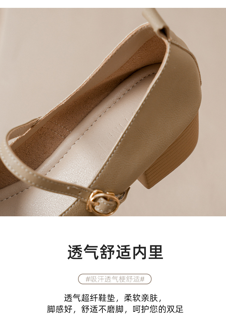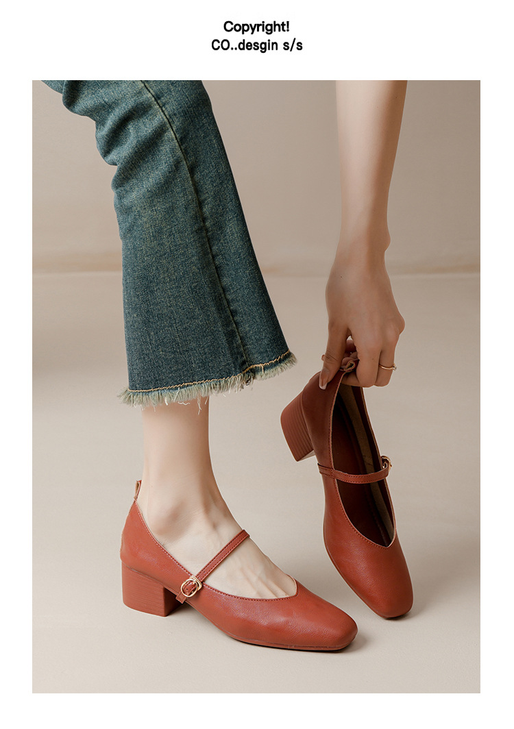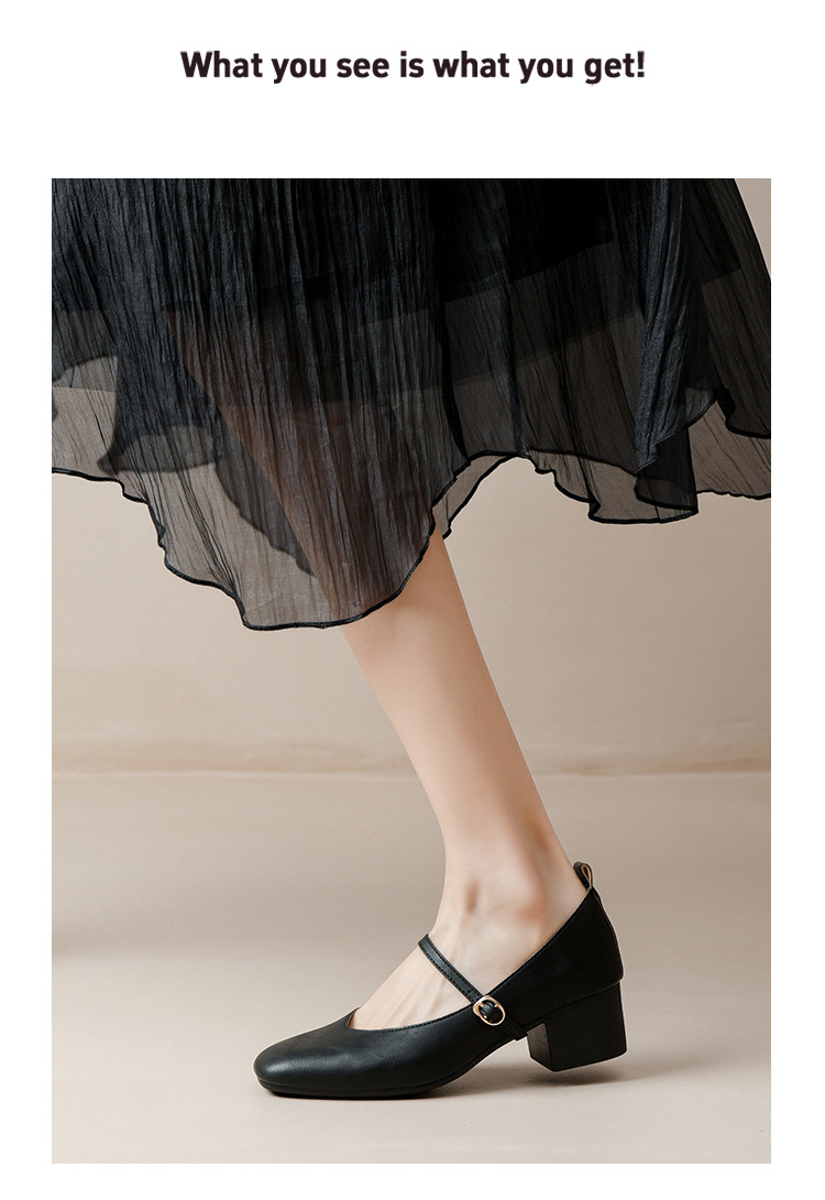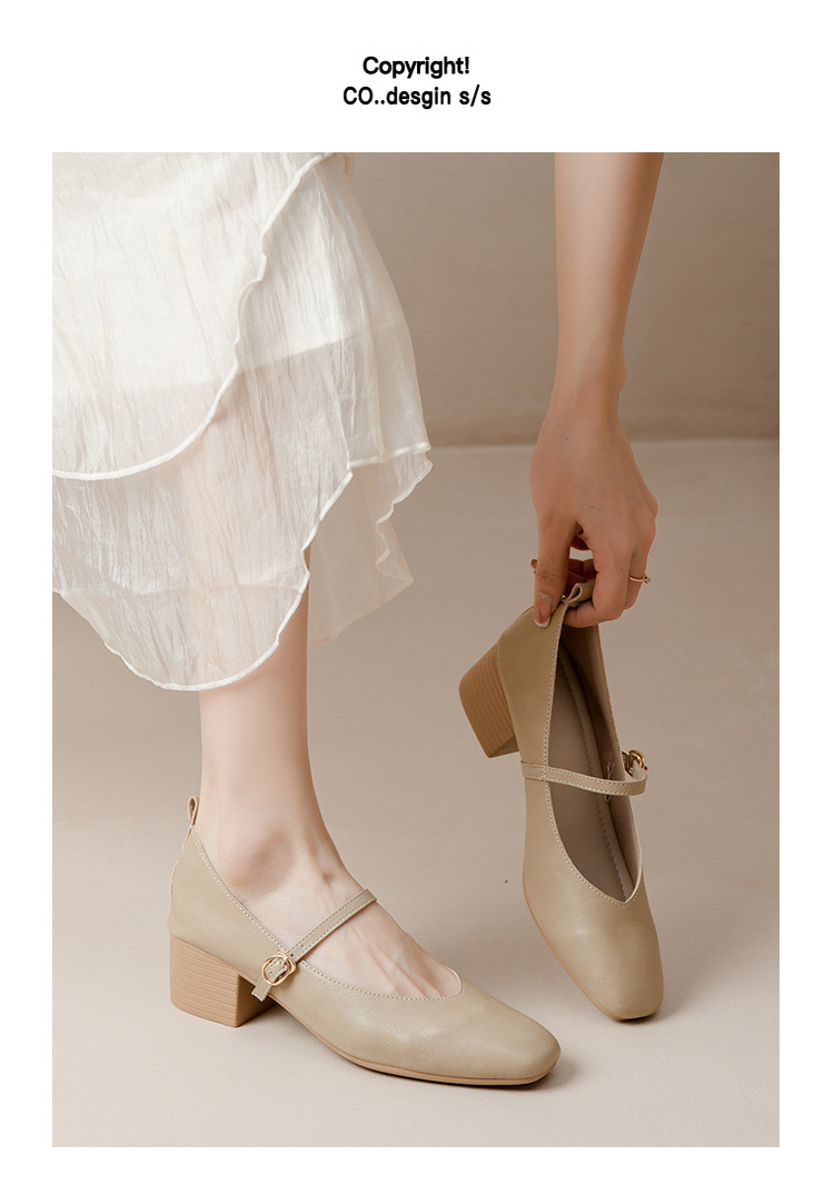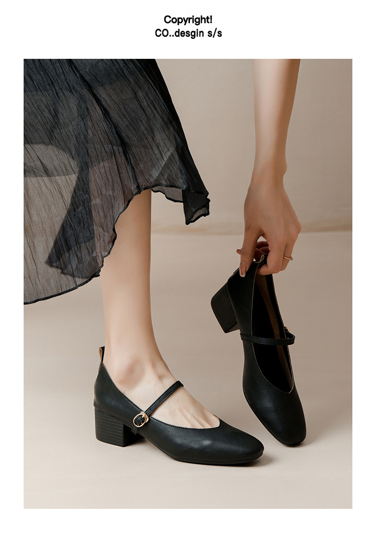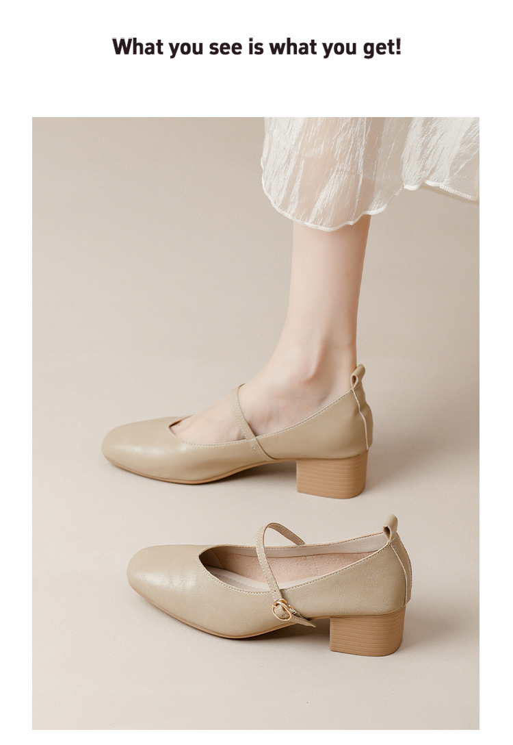 프렌치 스타일 버클 스트랩 두꺼운 굽 메리제인 여성 신발 신상 부드러운 가죽 편안한 플랫 솔 얕은 입구 하이힐스토어 가기