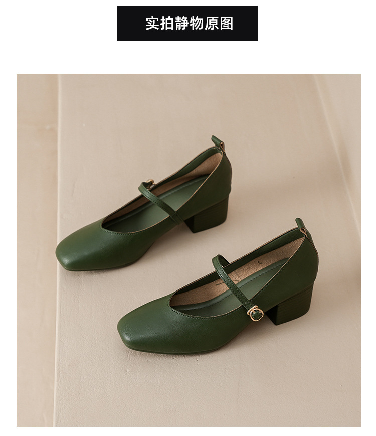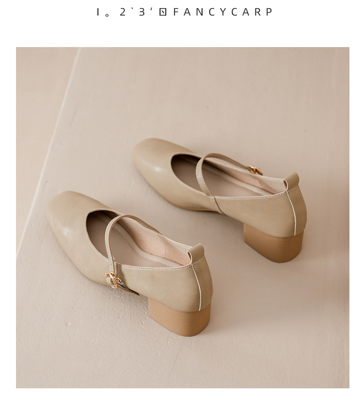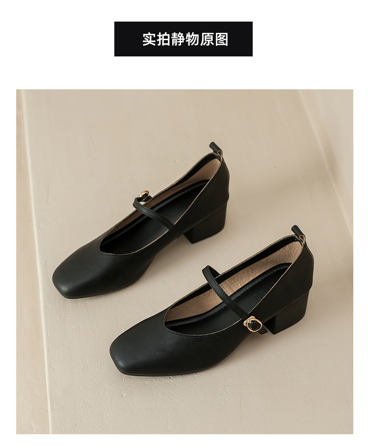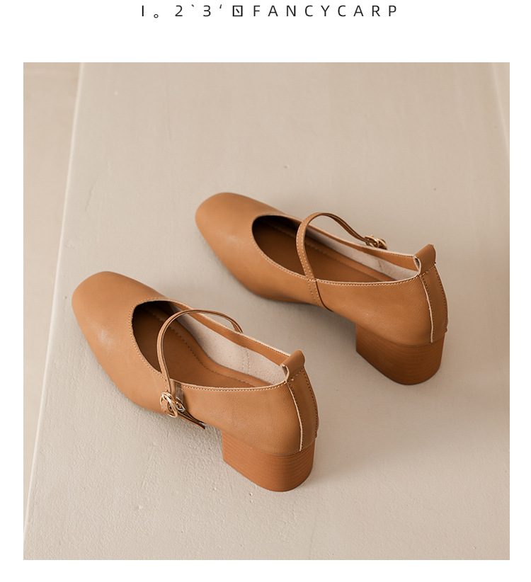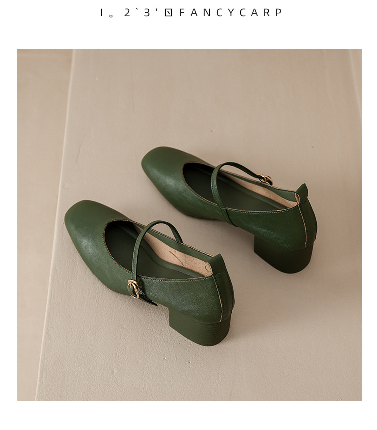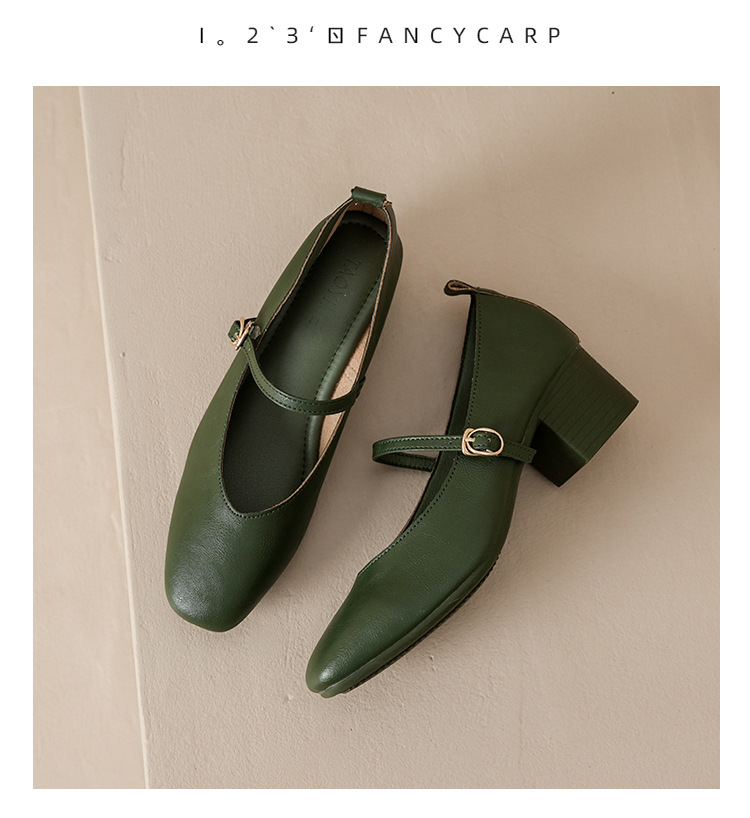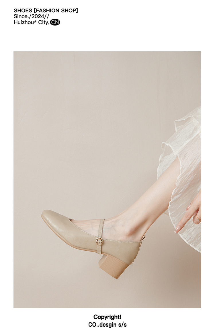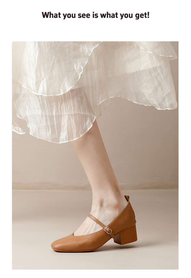 프렌치 스타일 버클 스트랩 두꺼운 굽 메리제인 여성 신발 신상 부드러운 가죽 편안한 플랫 솔 얕은 입구 하이힐스토어 가기