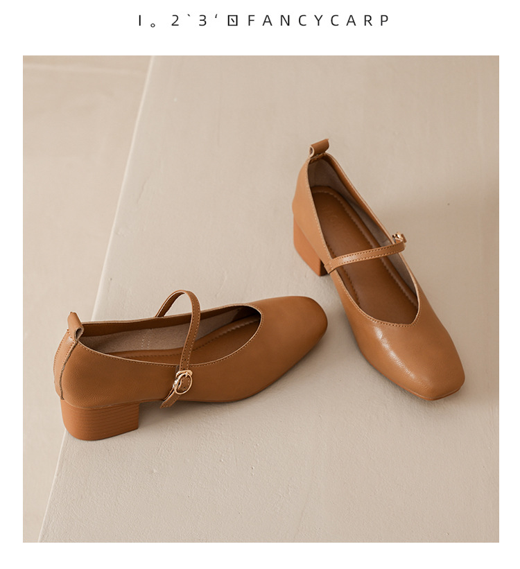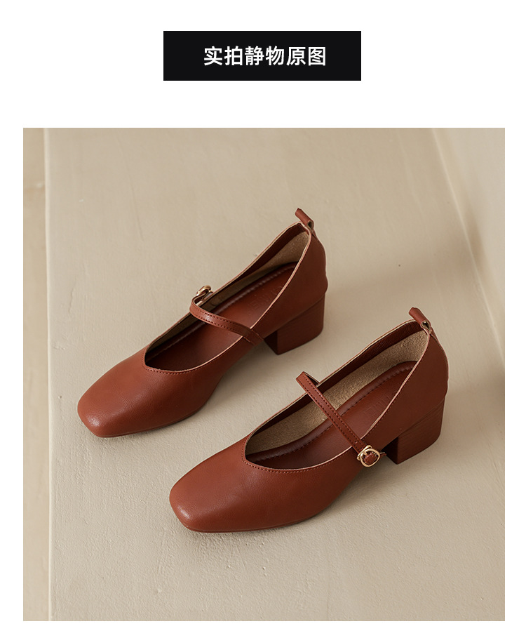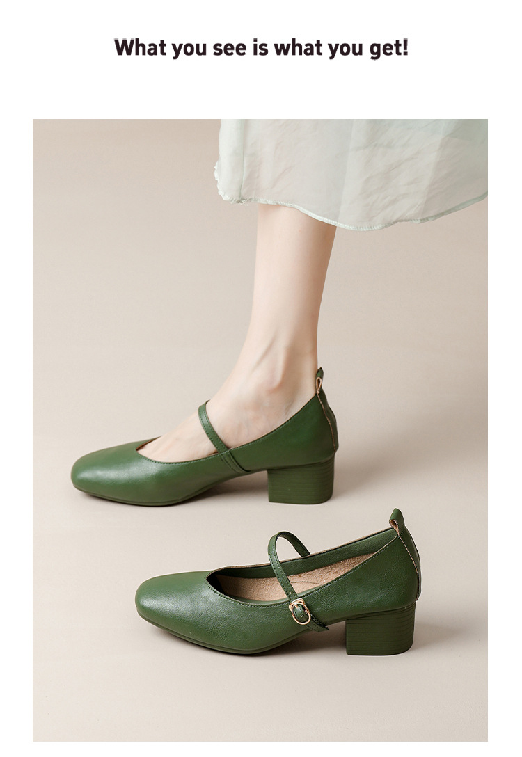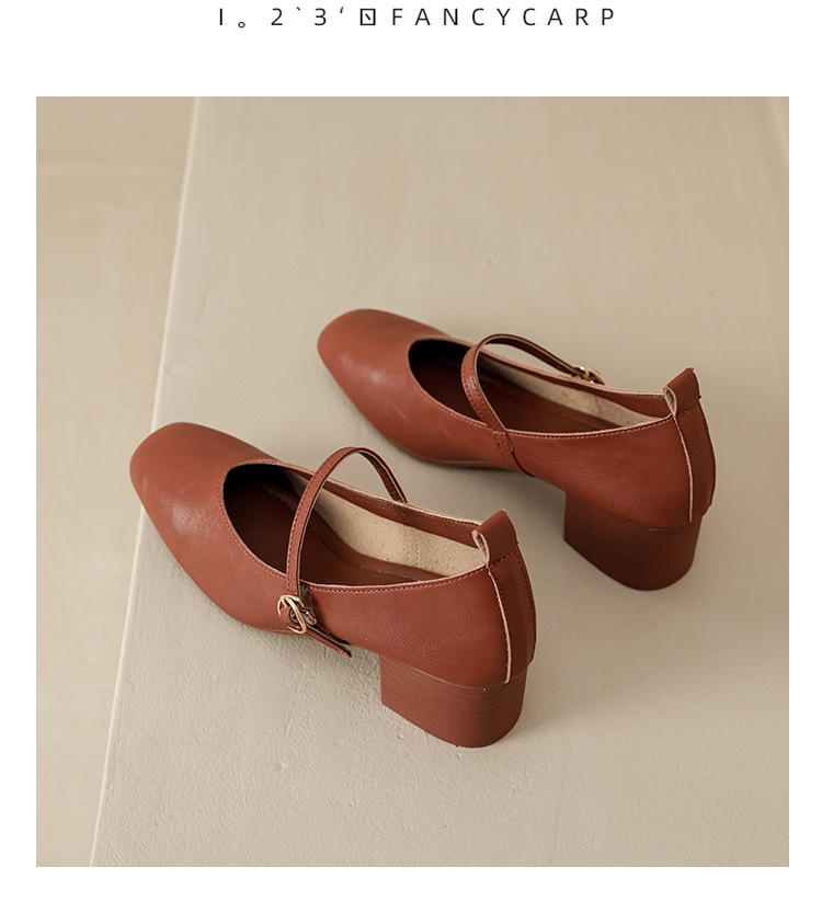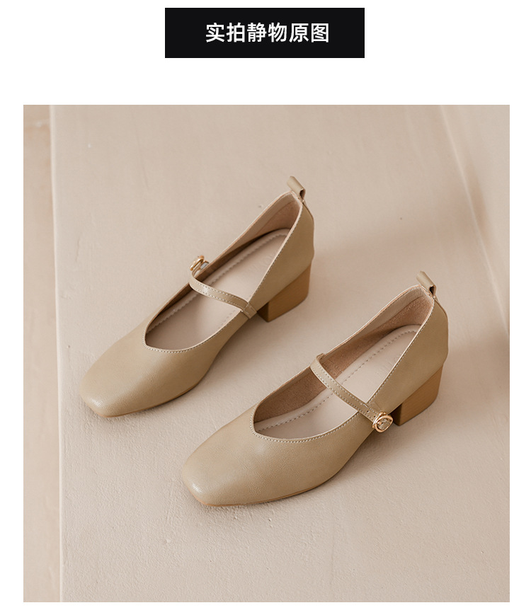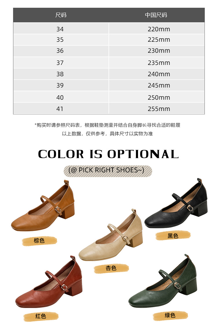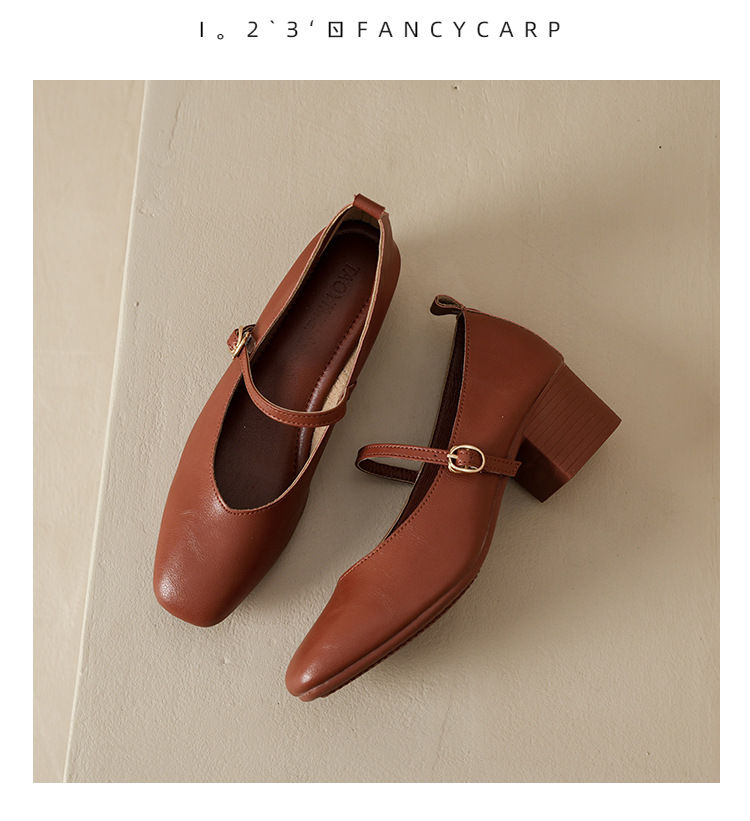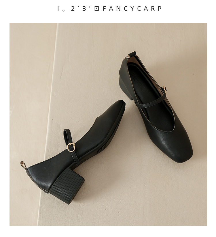 프렌치 스타일 버클 스트랩 두꺼운 굽 메리제인 여성 신발 신상 부드러운 가죽 편안한 플랫 솔 얕은 입구 하이힐스토어 가기