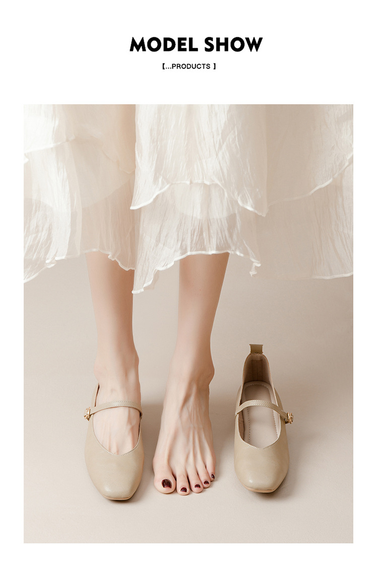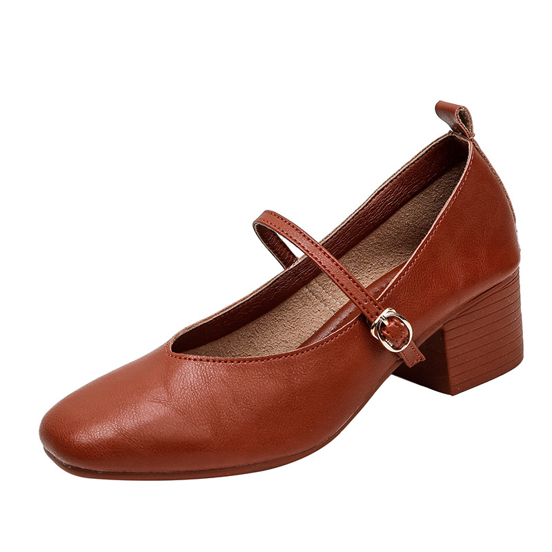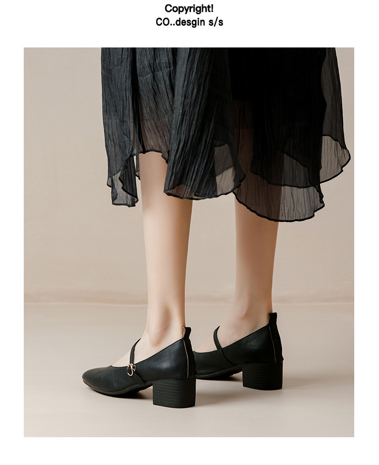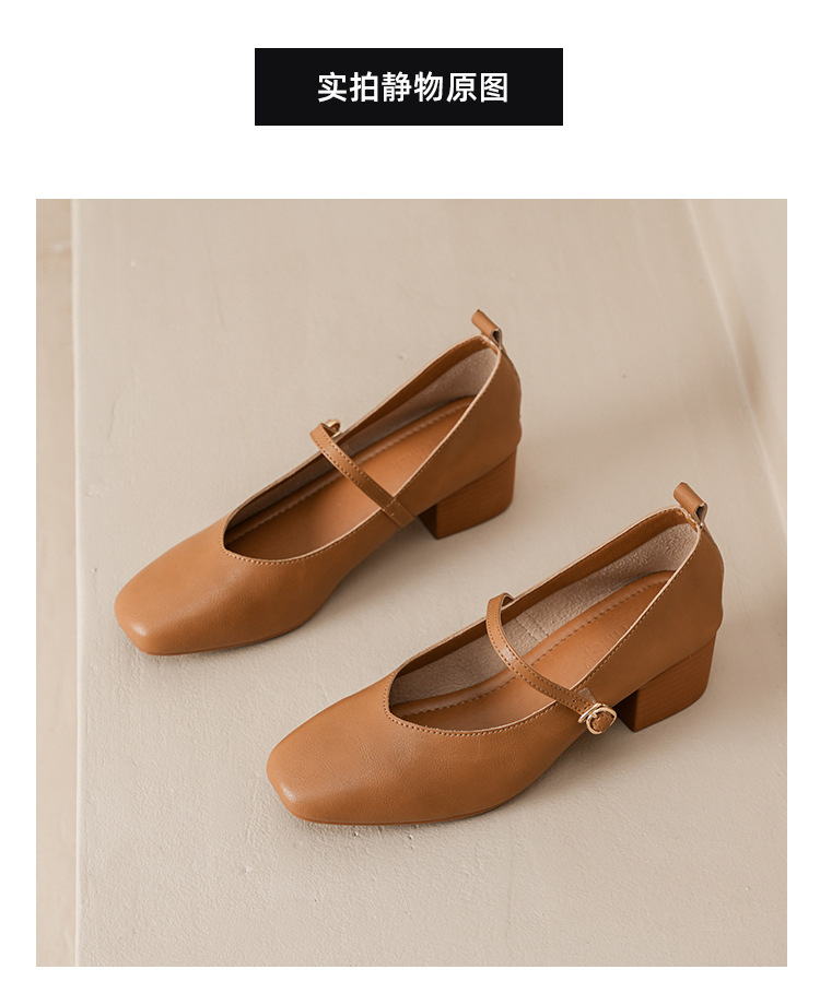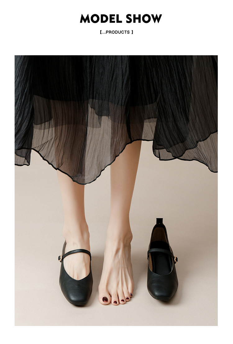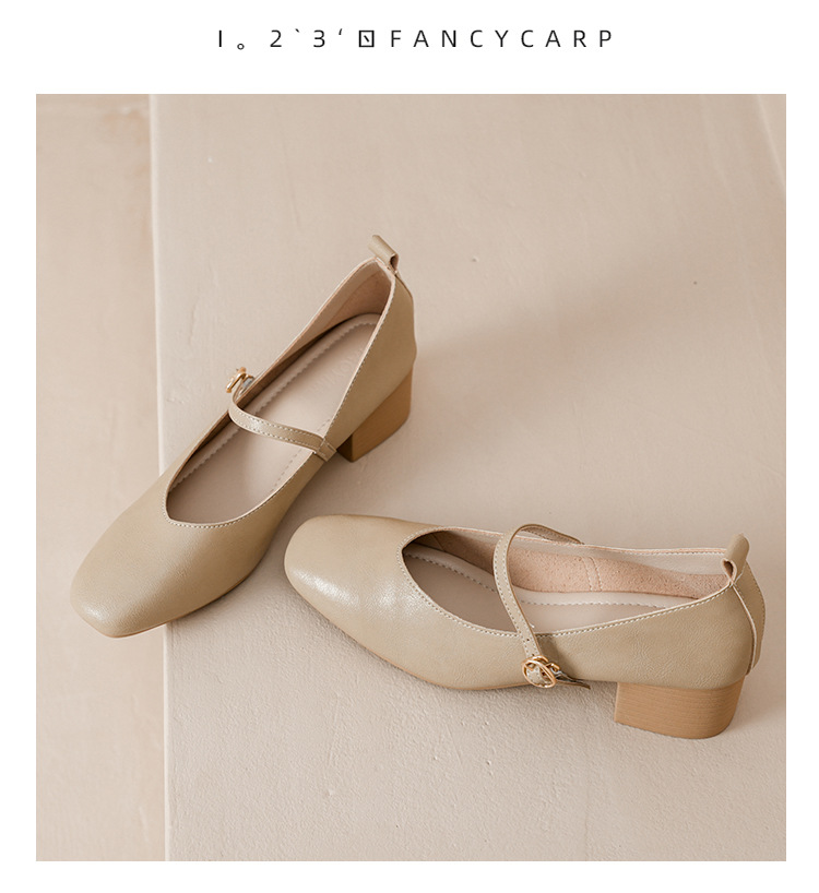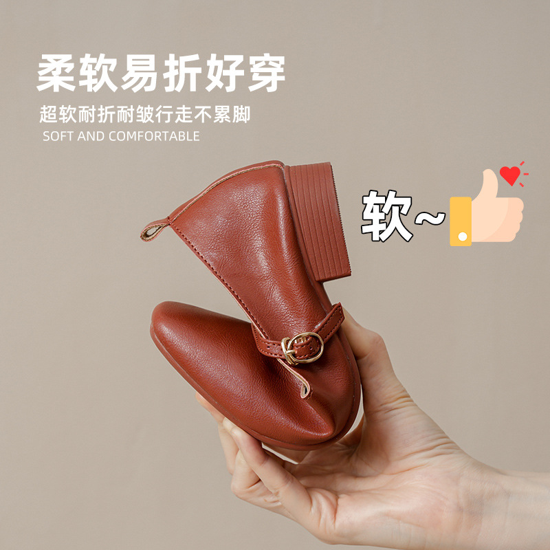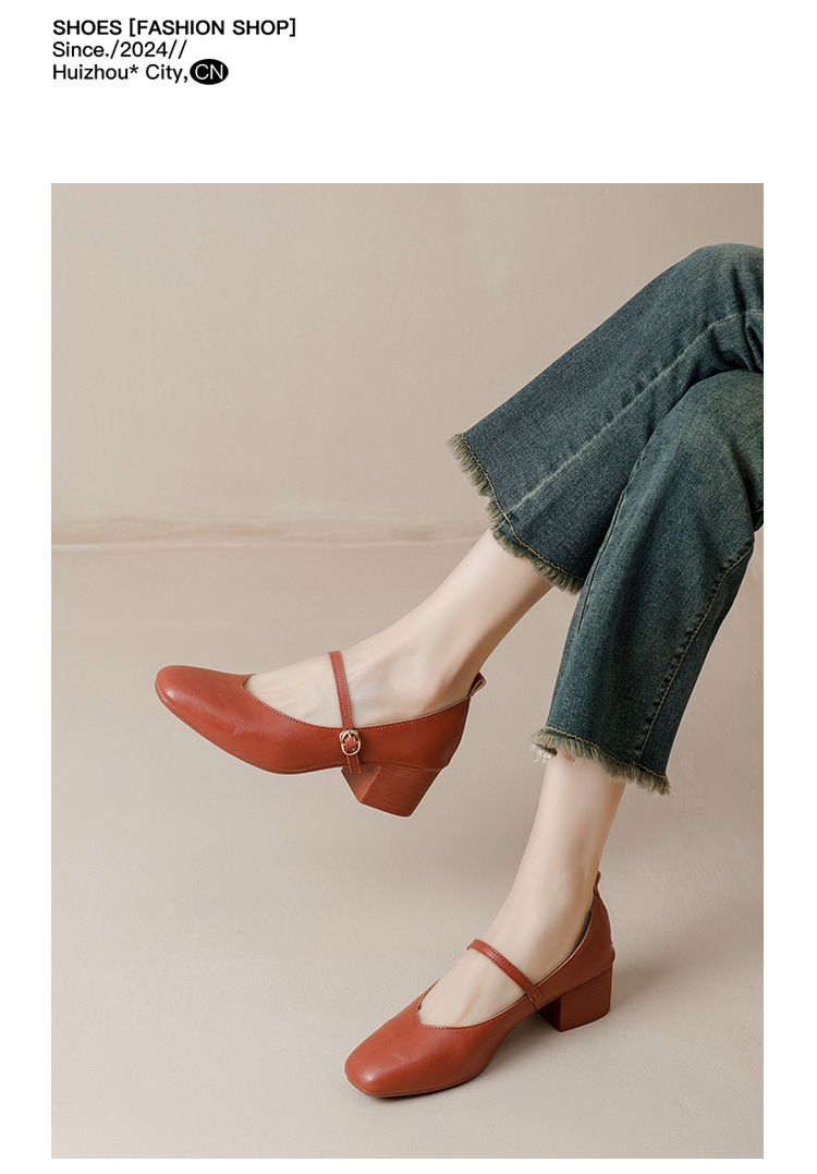 프렌치 스타일 버클 스트랩 두꺼운 굽 메리제인 여성 신발 신상 부드러운 가죽 편안한 플랫 솔 얕은 입구 하이힐스토어 가기