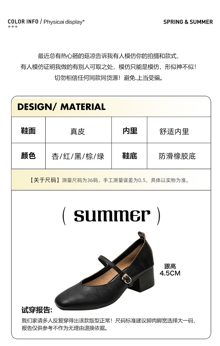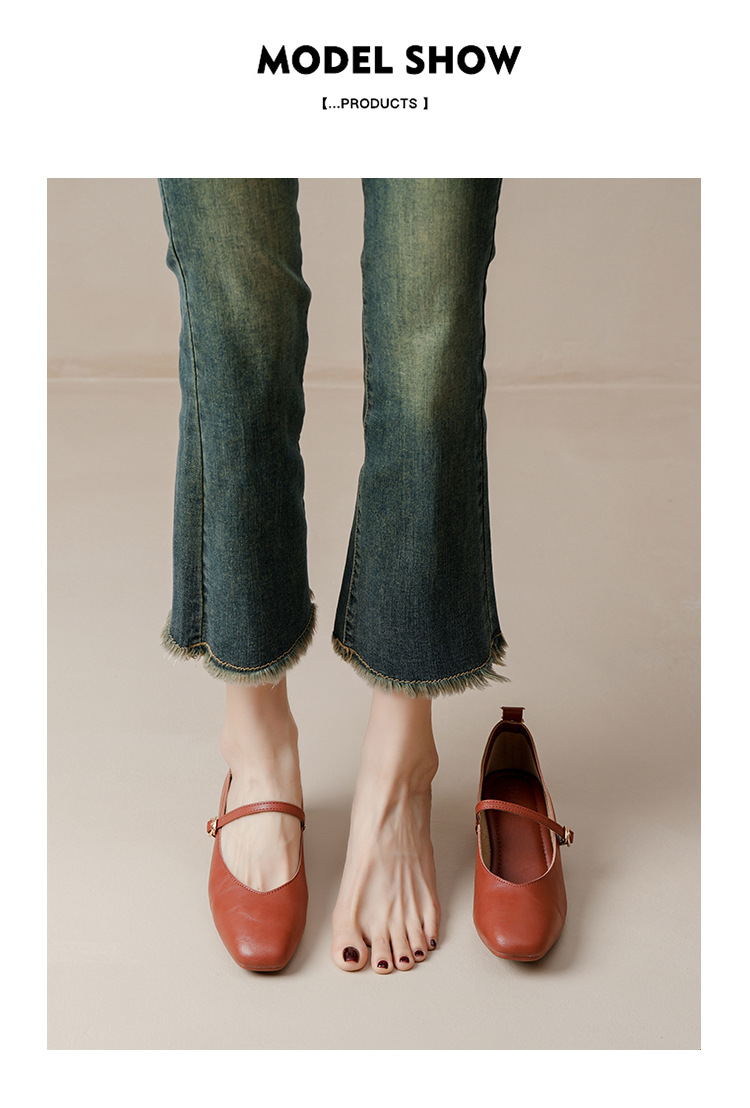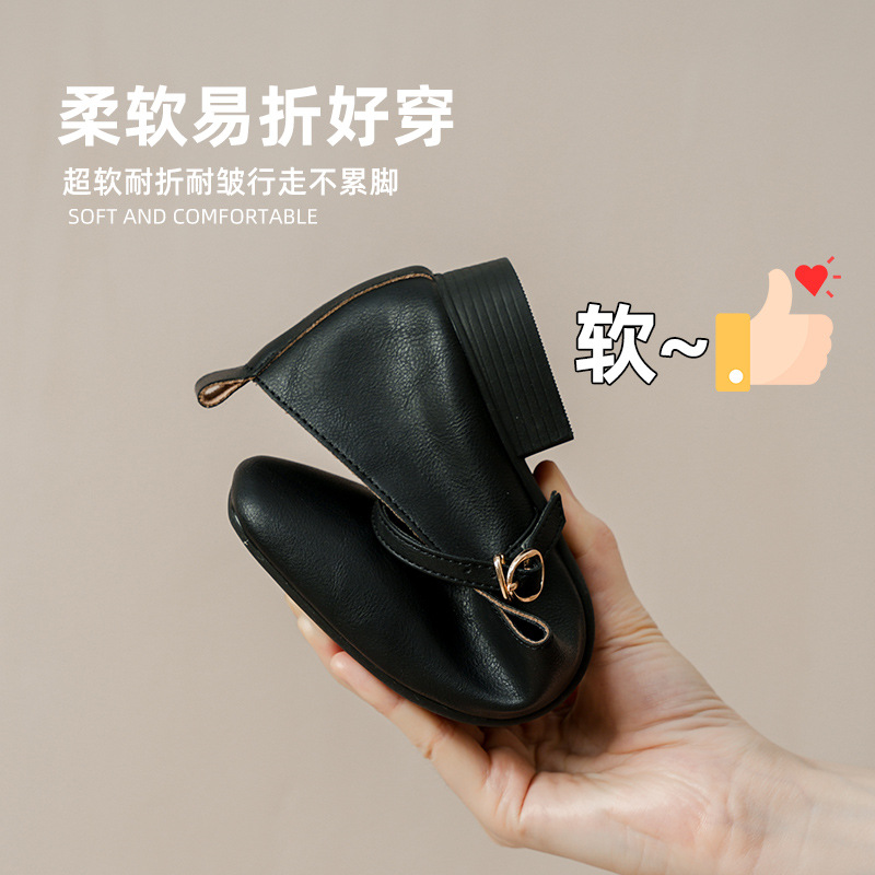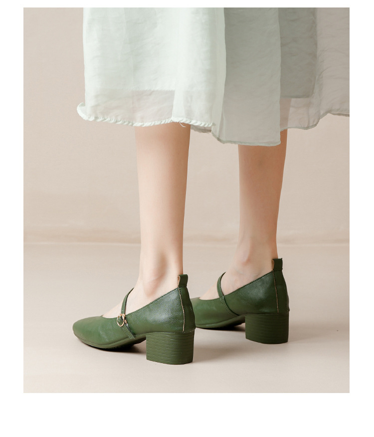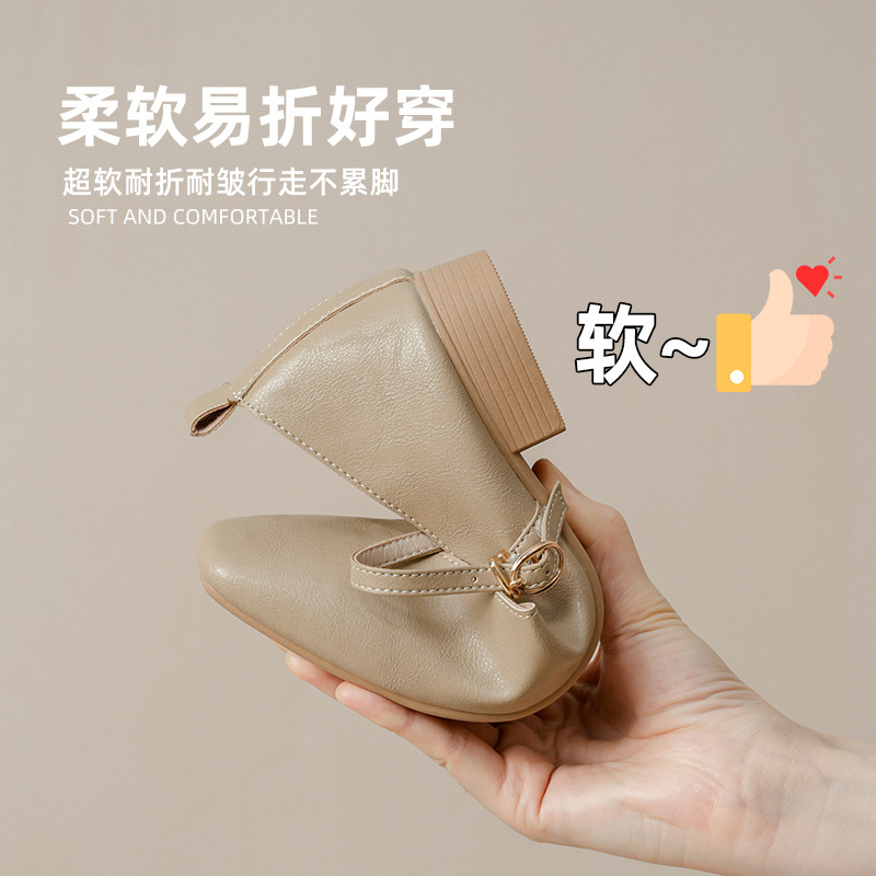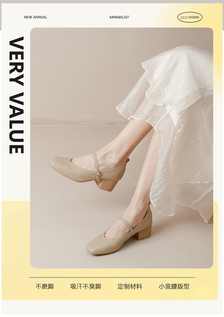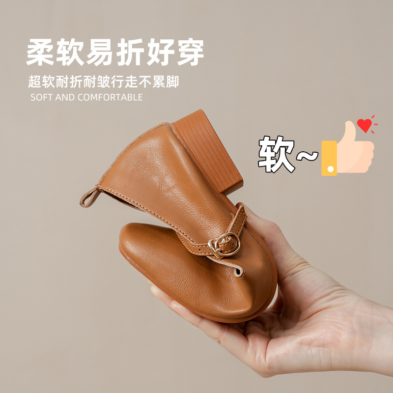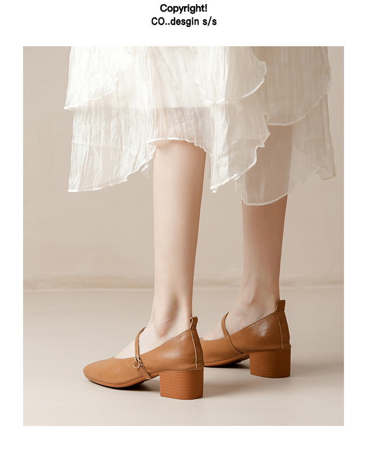 프렌치 스타일 버클 스트랩 두꺼운 굽 메리제인 여성 신발 신상 부드러운 가죽 편안한 플랫 솔 얕은 입구 하이힐스토어 가기