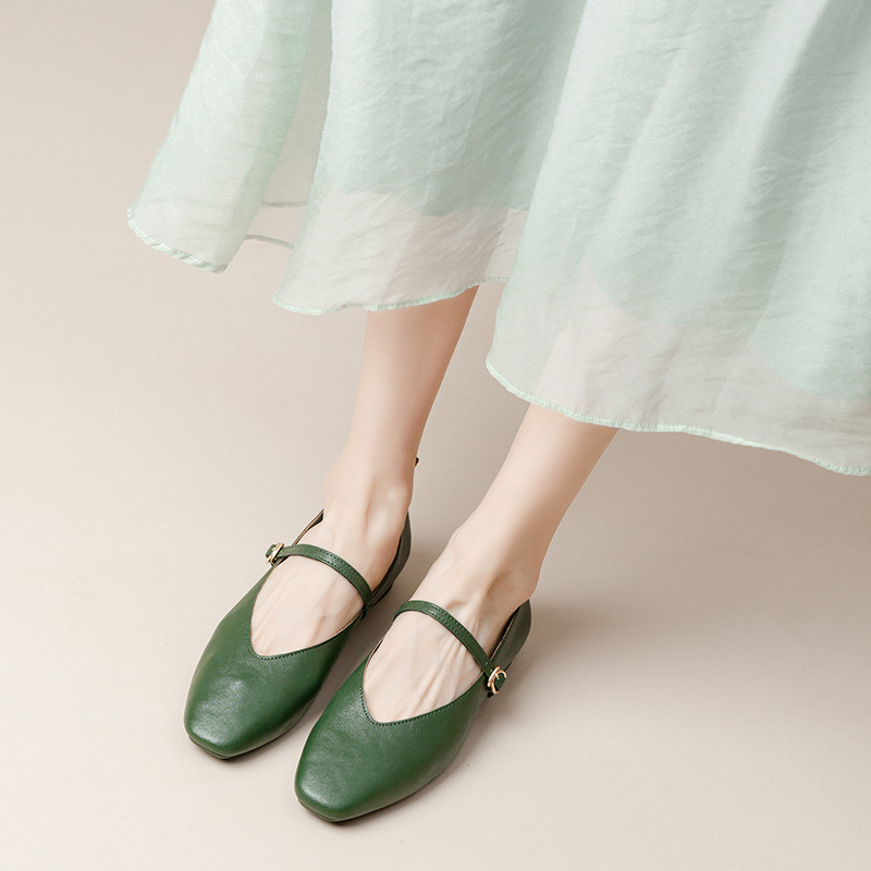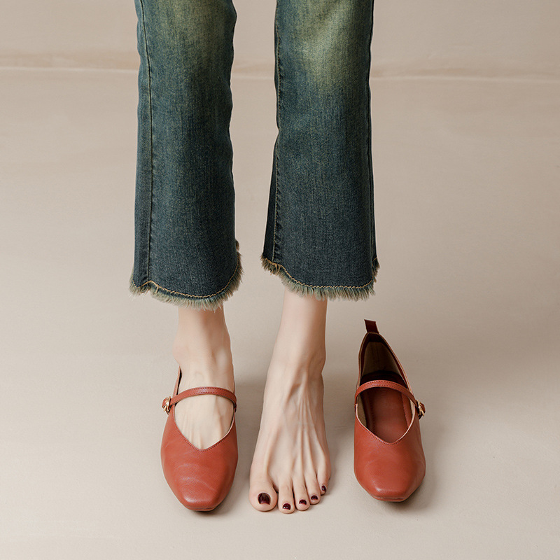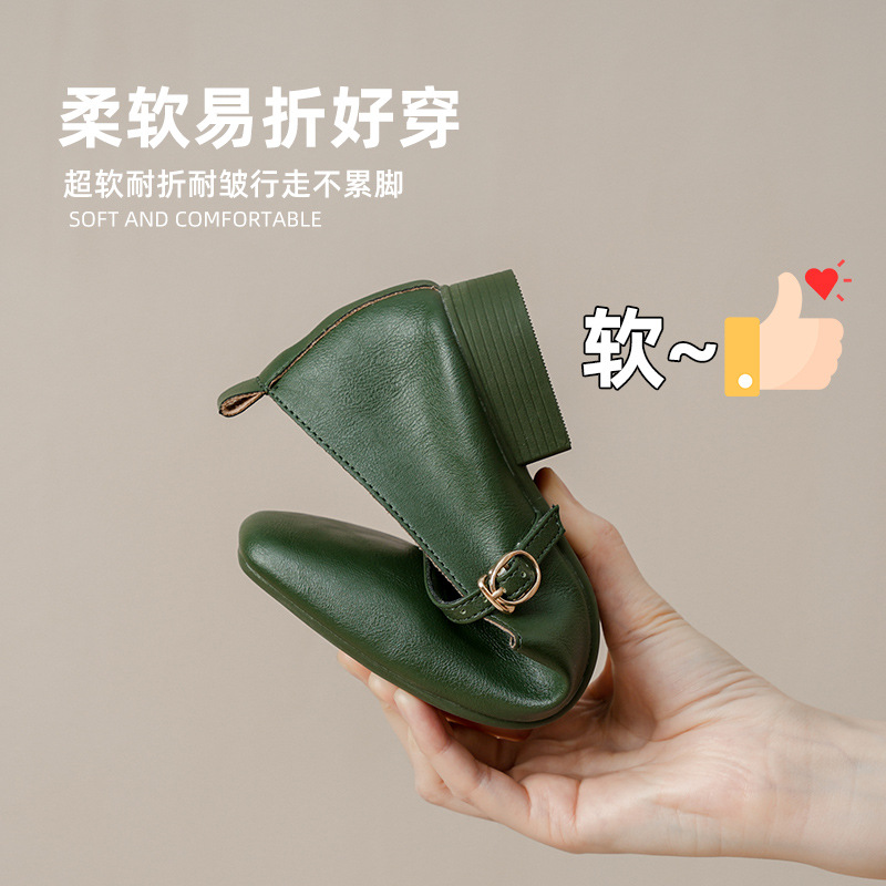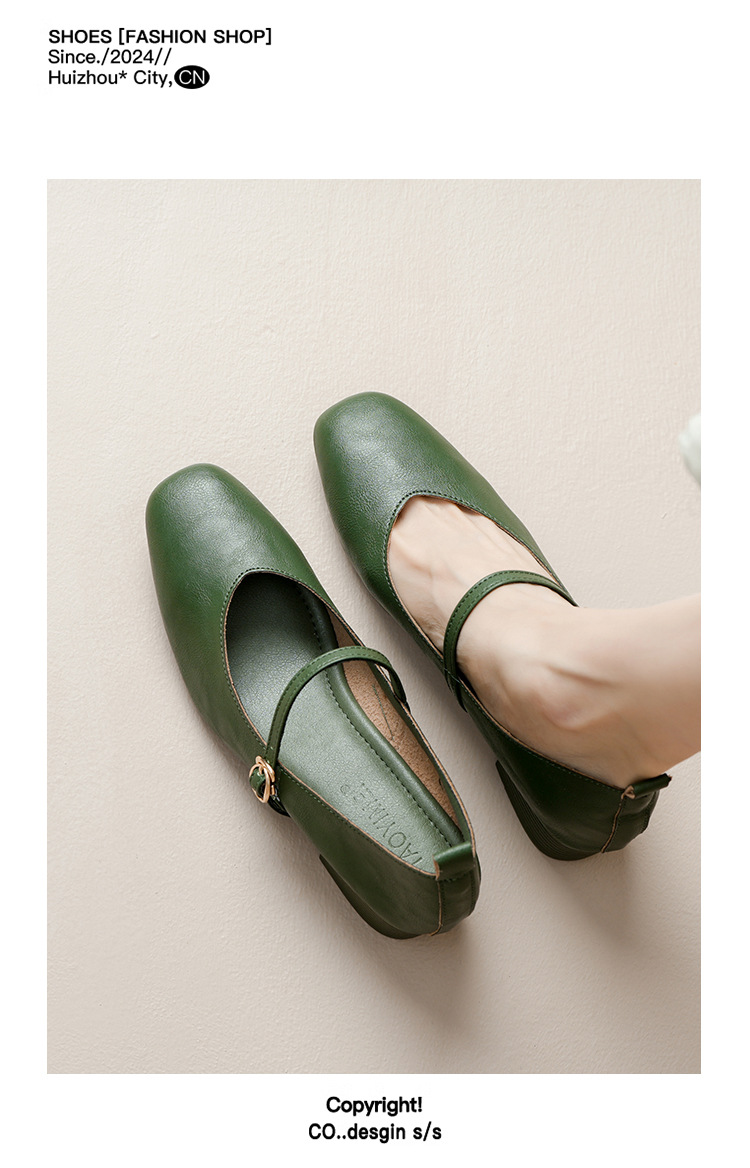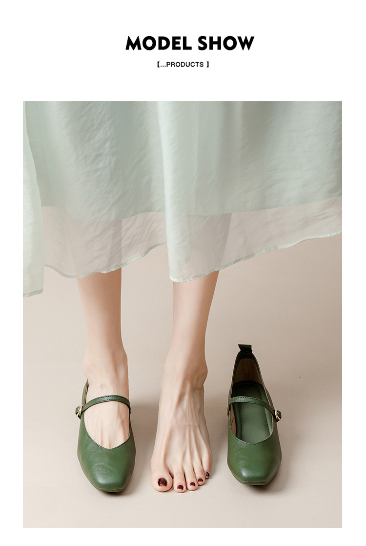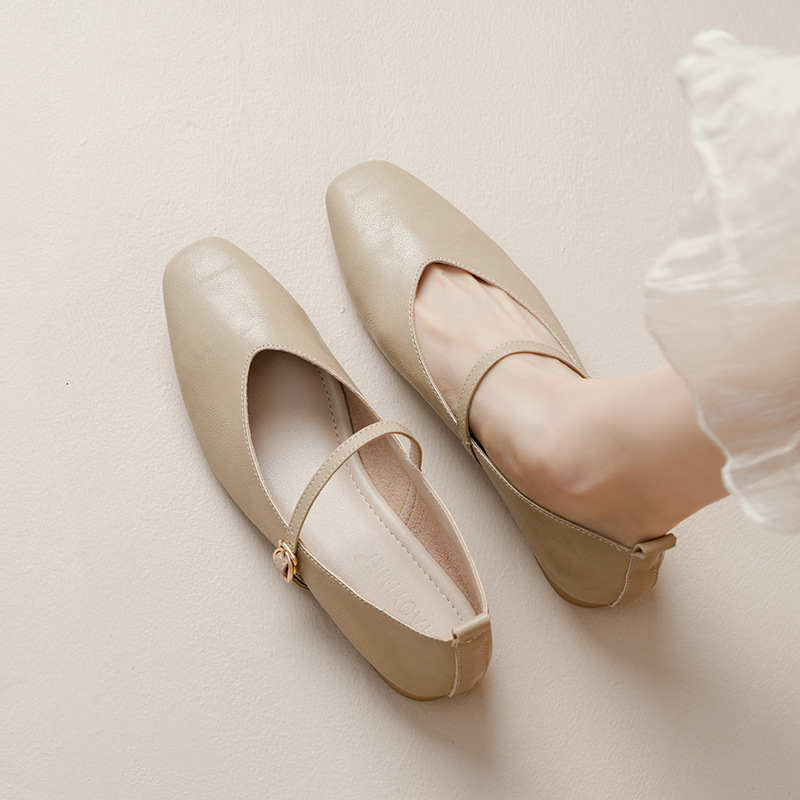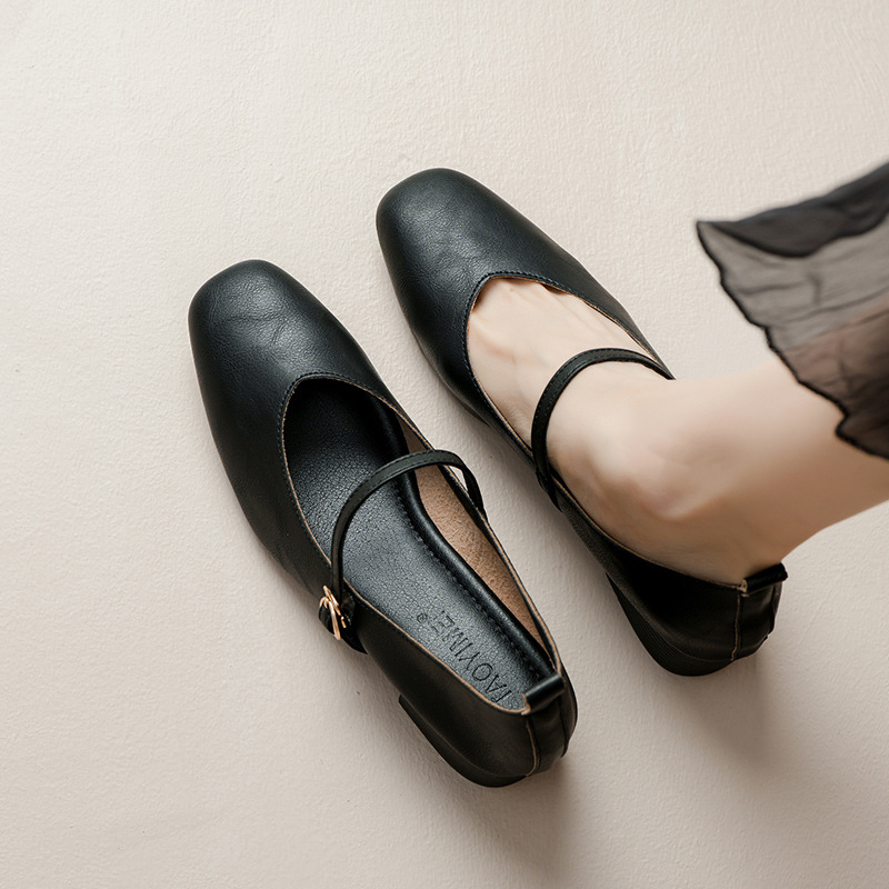 프렌치 스타일 버클 스트랩 두꺼운 굽 메리제인 여성 신발 신상 부드러운 가죽 편안한 플랫 솔 얕은 입구 하이힐