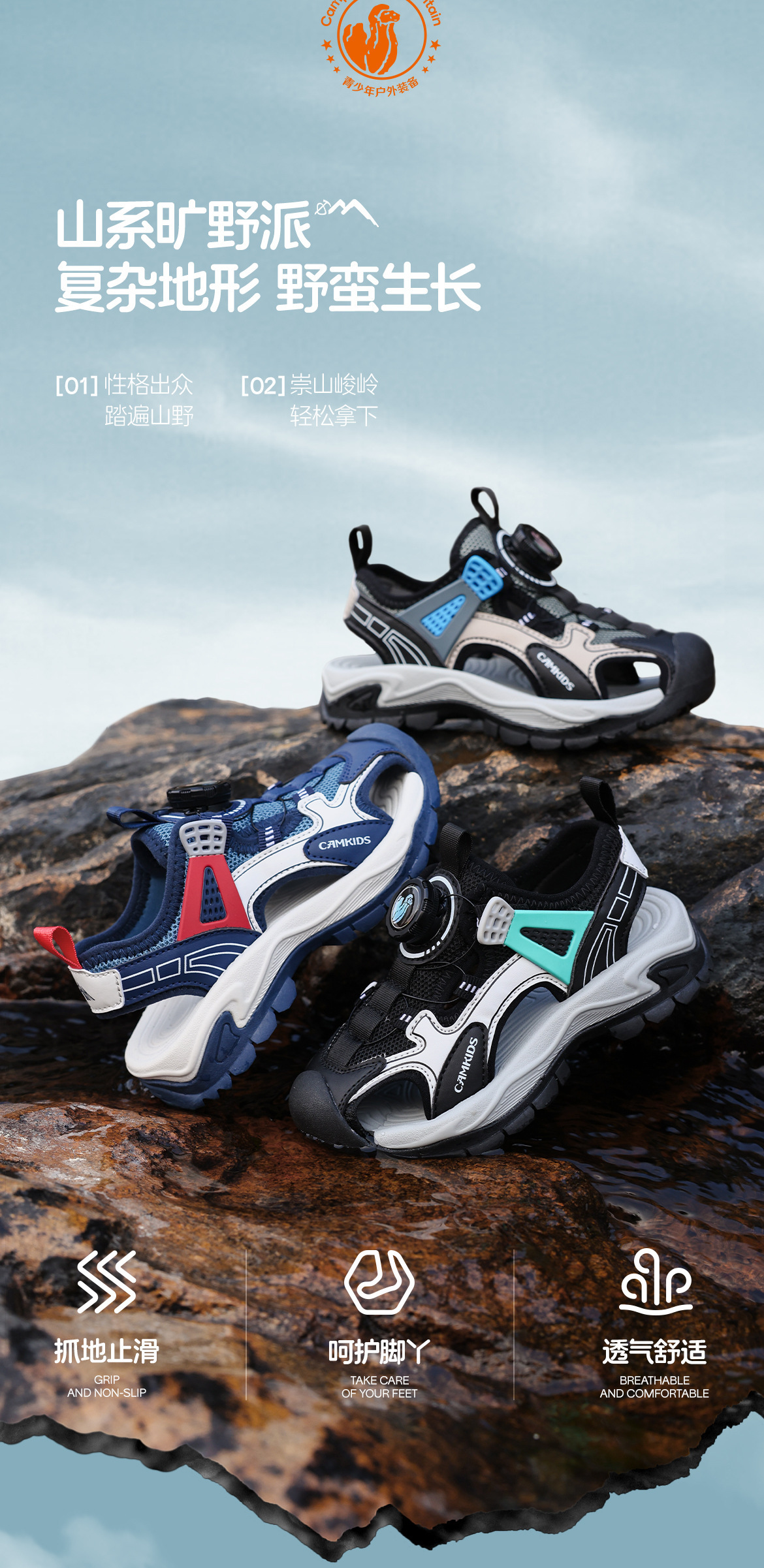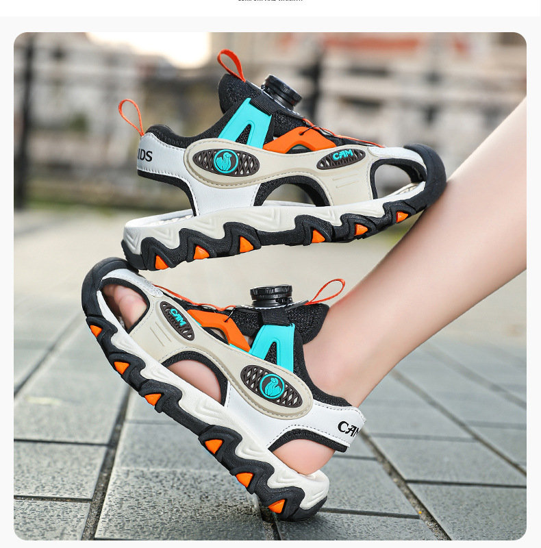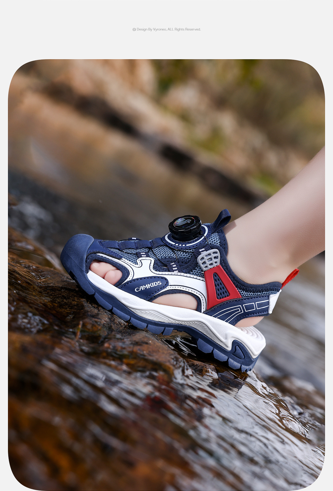 엄선된 CAMKIDS 남아 샌들, 아동화, 스포츠 비치 슈즈, 중대형 남아용, 멋진 발가락 미끄럼 방지